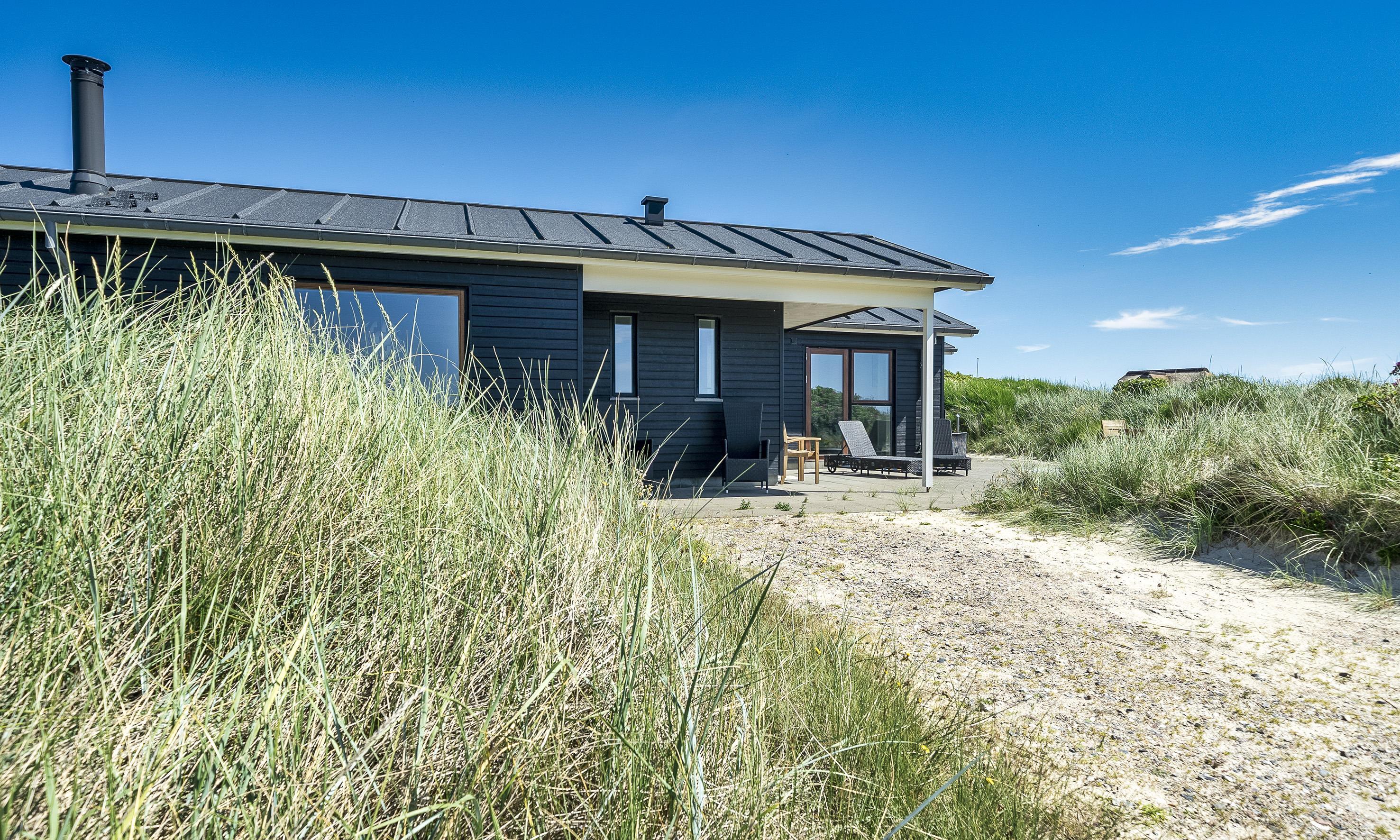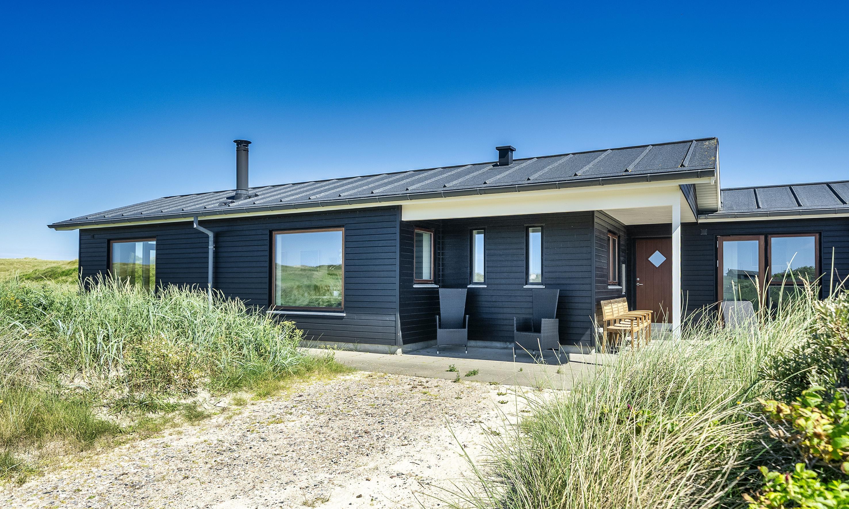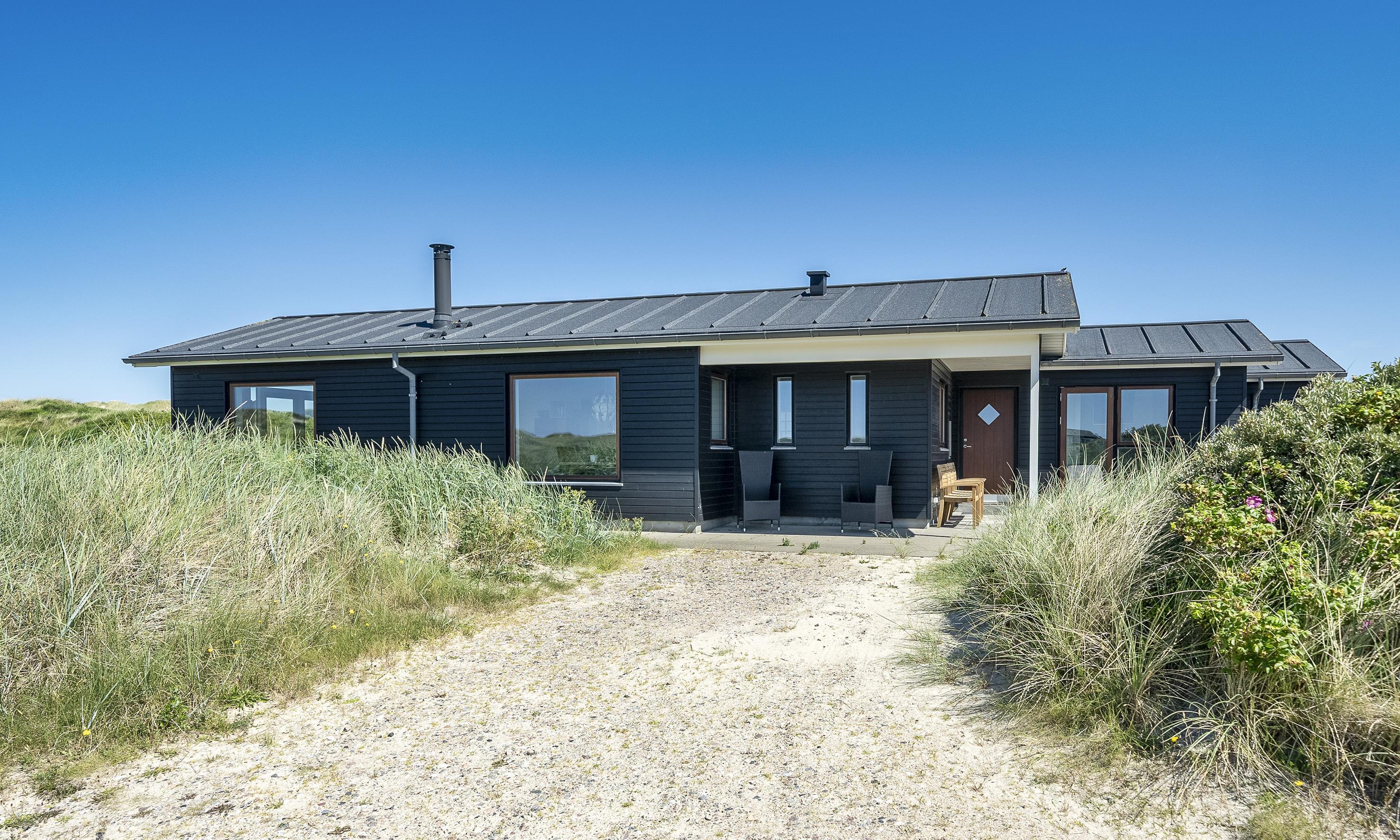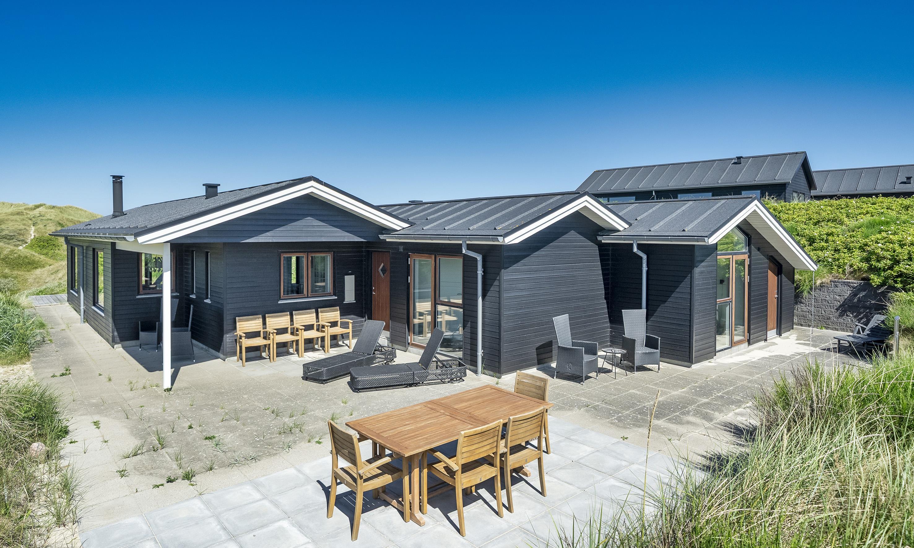 Meget flot nybygget lavenergi sommerhus til 8 fordringsfulde Vejers fans, beliggende på en naturskøn klitgrund, ca. 75 meter til stranden. Lys og venlig stue med panoramaudsigt over klitterne, brændeovn og fjernsyn med danske kanaler og 6 tyske kanaler (Stofa sommerhuspakke). Åbent køkkenalrum med opvaskemaskine, Quooker, mikroovn og køle-/frysekombination samt stor spiseplads. Trådløs Internetadgang. 4 værelser: DS + DS + 3/4 DS + 3/4 DS. Rummeligt badeværelser med bruser/wc, spa og sauna. Gæstetoilet med bruser/wc. vaskemaskine med tørretumbler. Flere terrasser, heraf 1 delvis overdækket. Gulvvarme i hele huset. Udebruser til brug om sommeren. Der er kun tilladt én hund, hunden må ikke komme i møblerne eller i sengen. Rygning ikke tilladt. Katte ikke tilladt. Ekstra udgift for vandforbrug. Byggeår 2016.