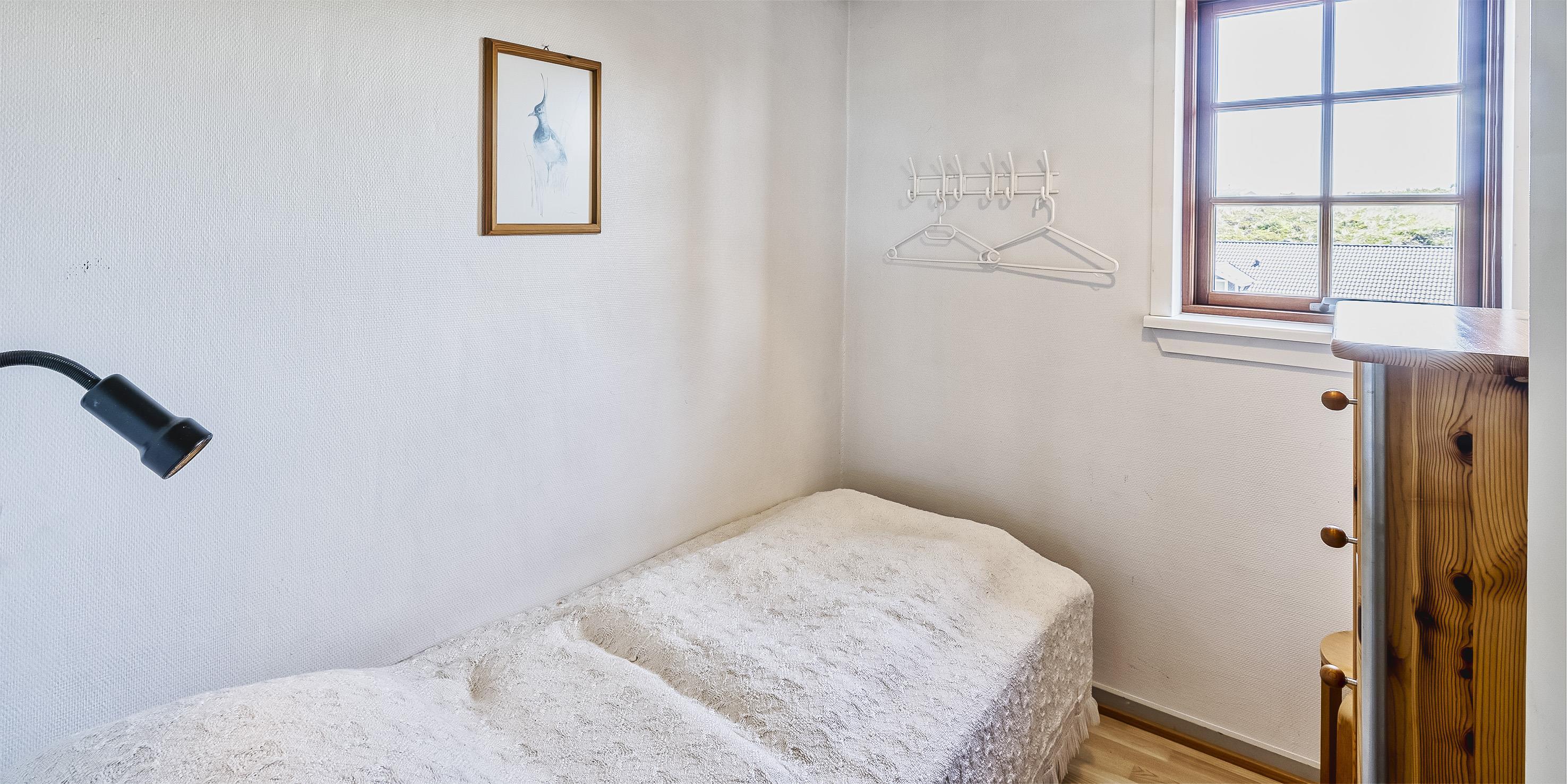 4 soveværelser. 2 med dobbeltseng 180x200 cm. 2 med 1 enkeltseng (á 90x200 cm)