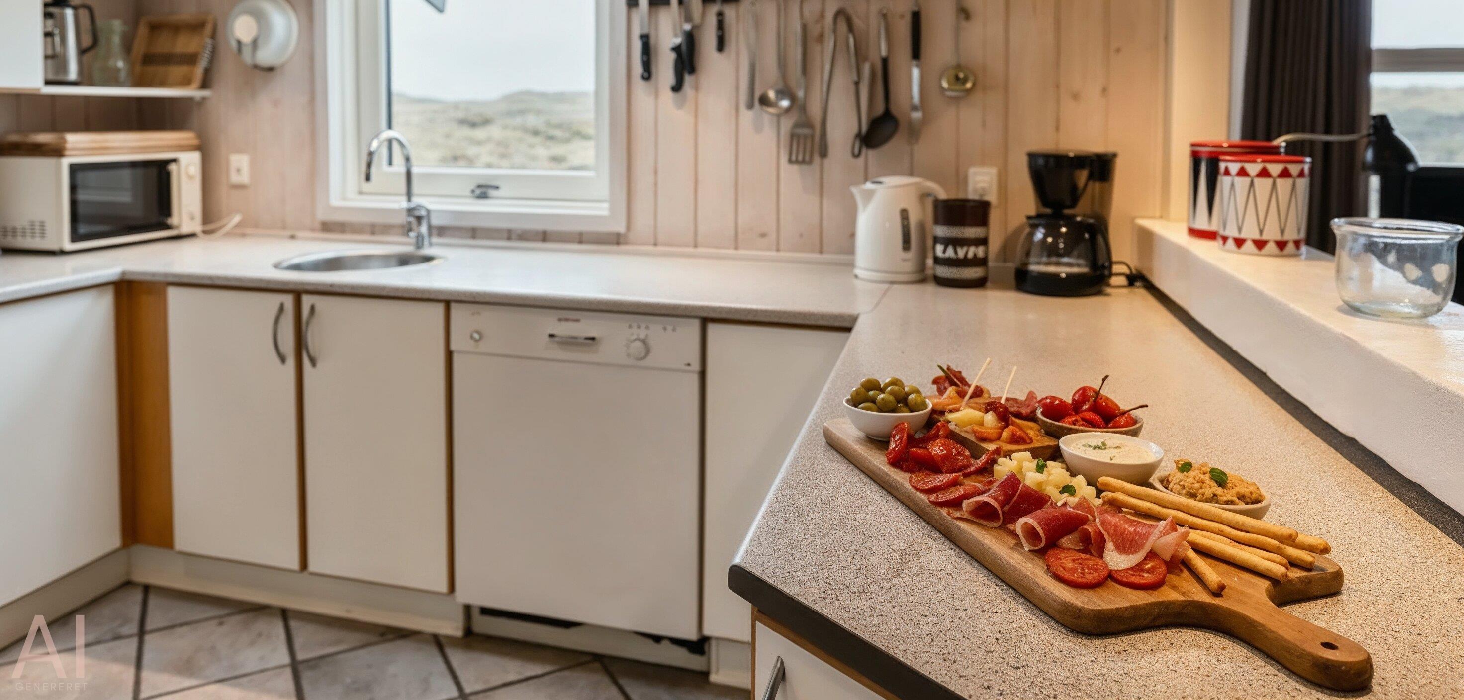 Bageri 650 meter fra ferieboligen. Supermarked "Storkøb" 550 m fra ferieboligen.