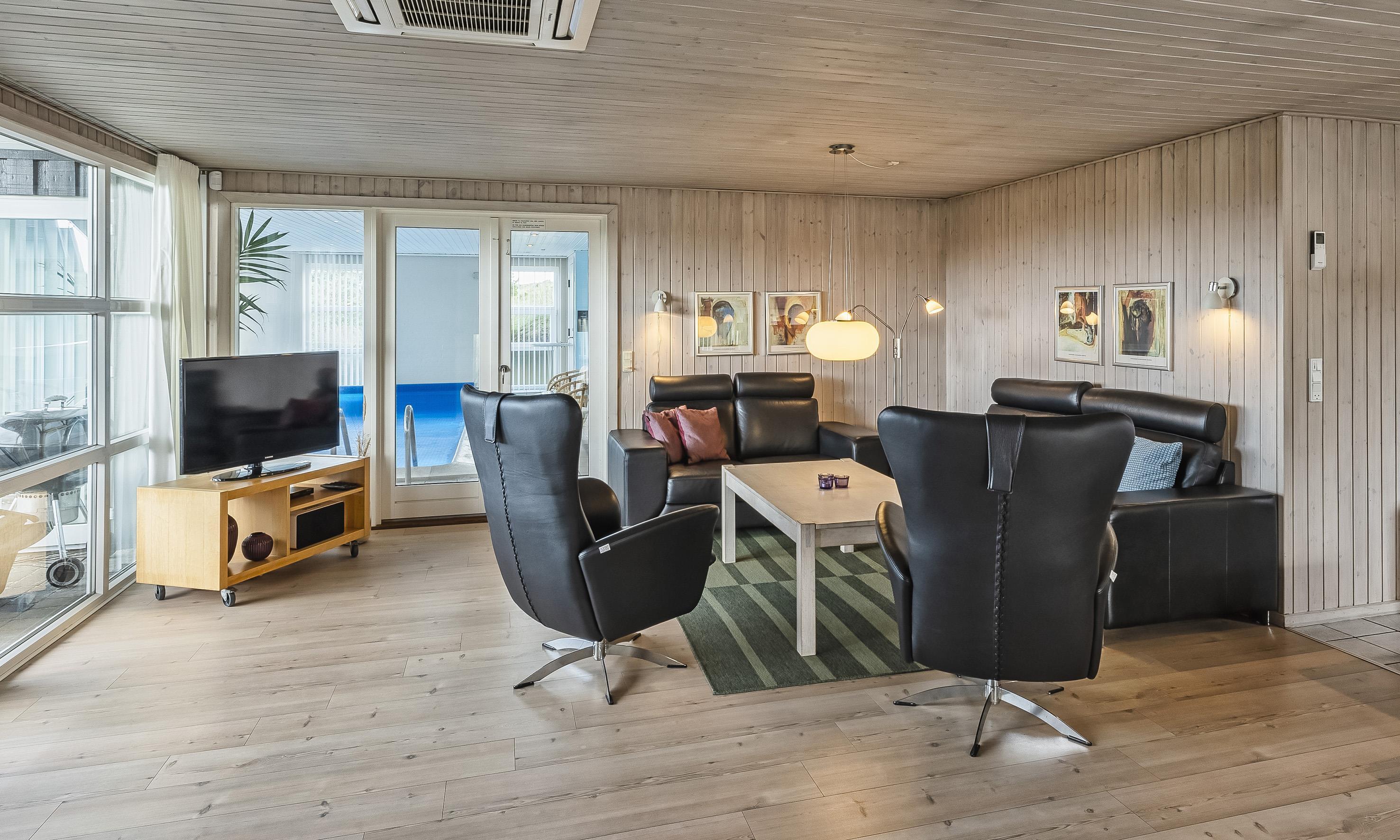 Smagfuldt poolhus til 8 personer, beliggende på klitgrund, ca. 200 meter fra stranden. Stue med brændeovn, trådløs Internetadgang, fjernsyn, parabol, Chromecast (DR programmer kan hentes via DR-app. Åbent køkken med opvaskemaskine og mikroovn. Badeværelse med bruser/wc, sauna, vaskemaskine og tørretumbler. Separat rum med stor swimmingpool ca. 6 x 3 x 1,30 ( længde x brede x dybde) og standvandsspa ( til ca. 4 personer). Gæstetoilet med bruser. 4 soveværelser: DS + DS + 2S + 2S. 2 soveværelser med hver 1 dobbeltseng og 2 soveværelser med hver 2 enkeltsenge. Huset har luft til luft og luft til vand varmepumper til opvarming af poolen og huset med "grøn el" for reduktion af strømforbruget. Lukket terrasse. Byggeår 1989. Rygning er ikke tilladt. Huset er løbende renoveret og fremstår meget vedholdt.