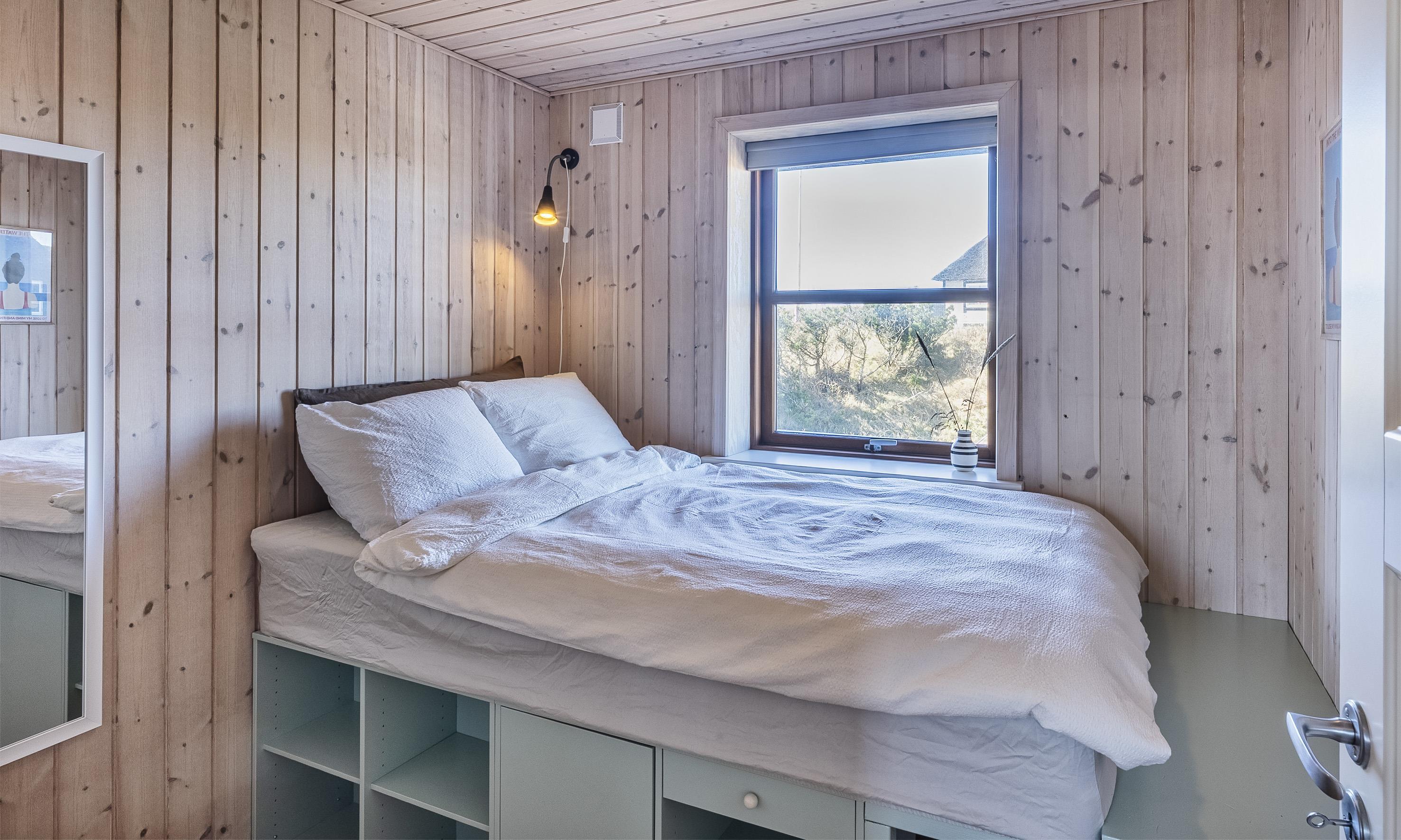 Velkommen til dette drømmeudlejningssommerhus, der byder på en uforglemmelig ferieoplevelse kun 200 meter fra den betagende sandstrand ved Vesterhavet. Dette moderne hus, bygget i 2011, tilbyder 122 m² komfortabel plads, til op til 6 personer. Her kan du nyde hyggelige stunder med familien i et stilfuldt indrettet hus, hvor den åbne stue med brændeovn og energivenlig varmepumpe skaber en hyggelig stemning med det fantastiske lysindfald. Huset har i alt 4 soveværelser - 1 med dobbeltseng og 2 med trekvartsenge. I den ene ende af huset med separat indgang, er det 4. soveværelse med dobbeltseng (DS+ES+ES+DS). To rummelige badeværelser, hvoraf det ene inkluderer et dejligt badekar, perfekt til at slappe af efter en lang dag. Det veludstyrede køkken gør madlavningen til en leg, og det tilstødende spiseområde er ideelt til at nyde lækre måltider i godt selskab.