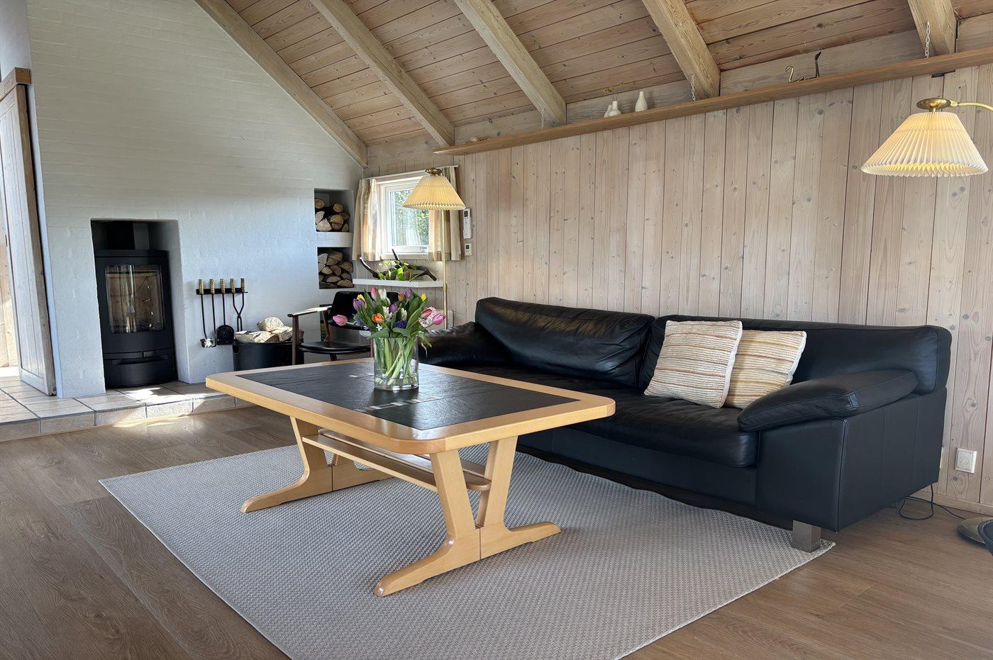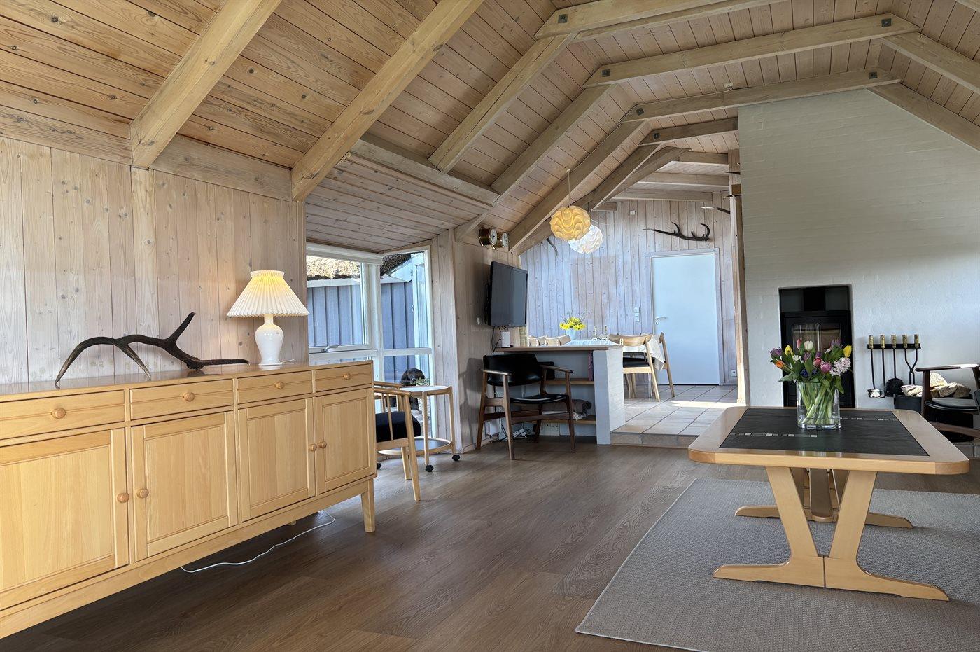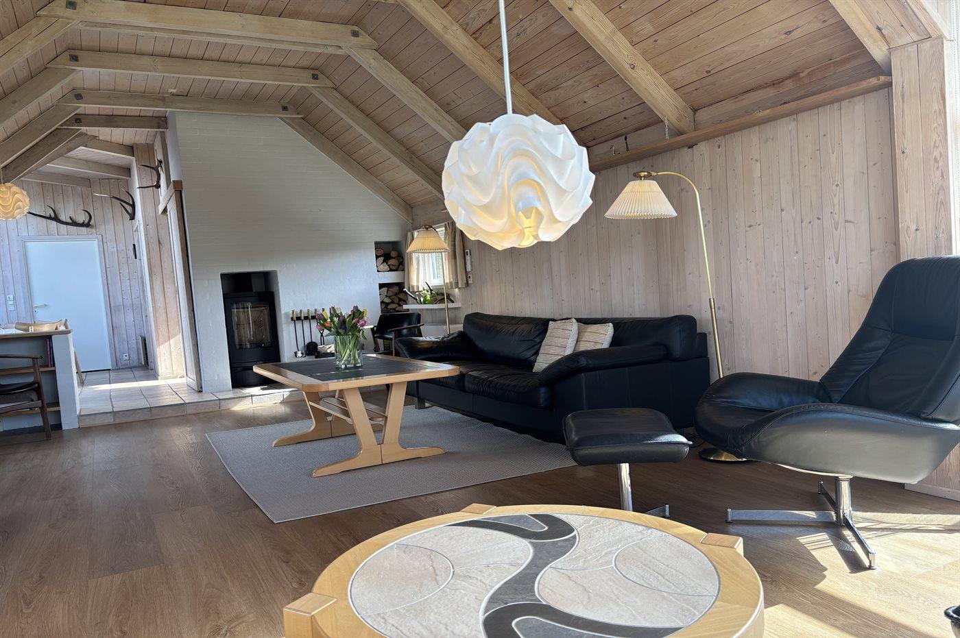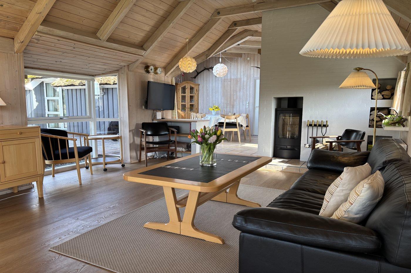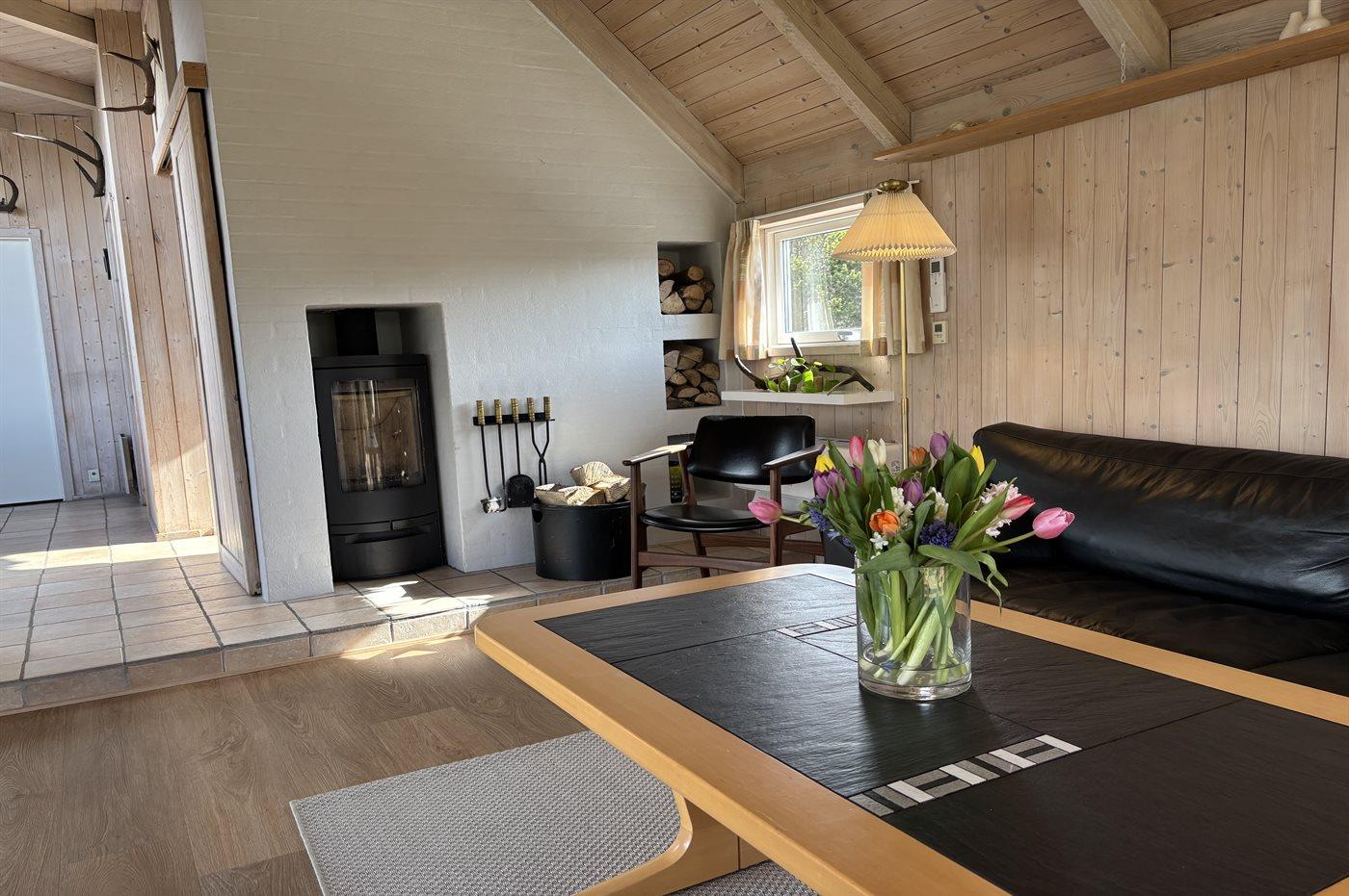 Sommerhuset er indrettet i lys, skandinavisk stil, hvor kvalitet og hygge går hånd i hånd. Her er brændeovn til de kølige aftener, tv og trådløst internet til afslappede timer – og masser af plads til at være sammen.