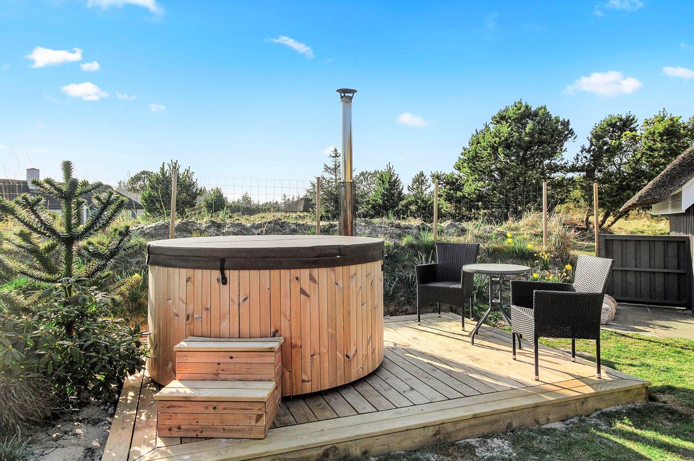 Charmerende sommerhus nær Vejers Strand med vildmarksbad og stor terrasse, perfekt til afslapning i naturen.