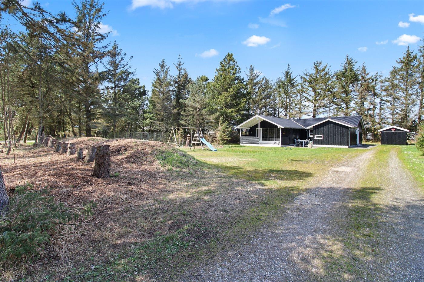 Ferieboligen er beliggende på en 2014 m² stor naturgrund. Der er 2000 m til havet. Nærmeste forretning er beliggende i en afstand af 300 m. Til ferieboligen hører 25 m² terrasseareal. Heraf i alt 20 m² lukket terrasse. Gynge. Parkering ved ferieboligen.