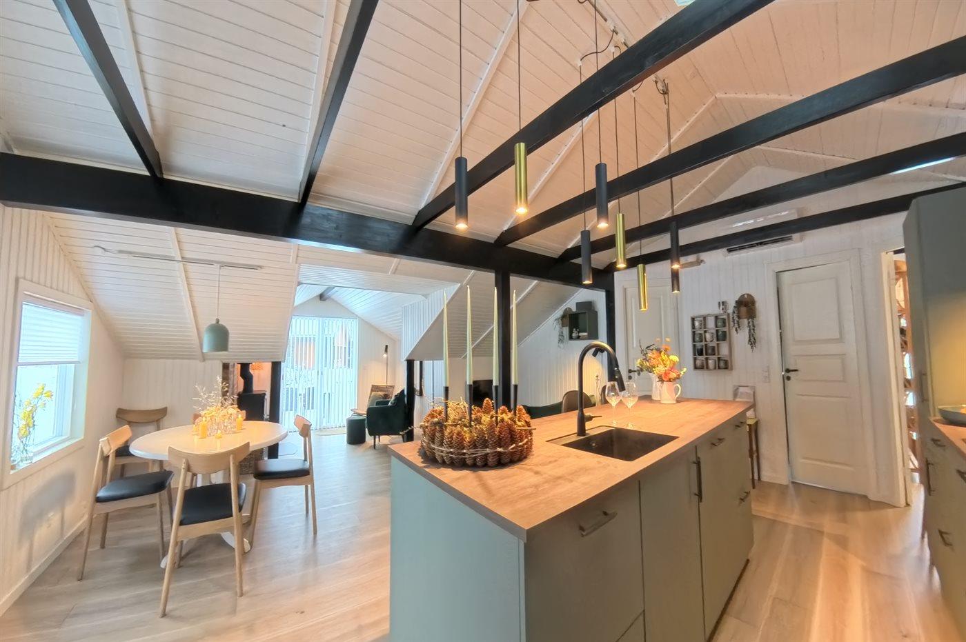 Køkkenet er udstyret med 1 køleskab. Der er 4 induktionskogeplader, varmluftovn. Endvidere elkedel, brødrister, håndmikser og stavblender samt opvaskemaskine.