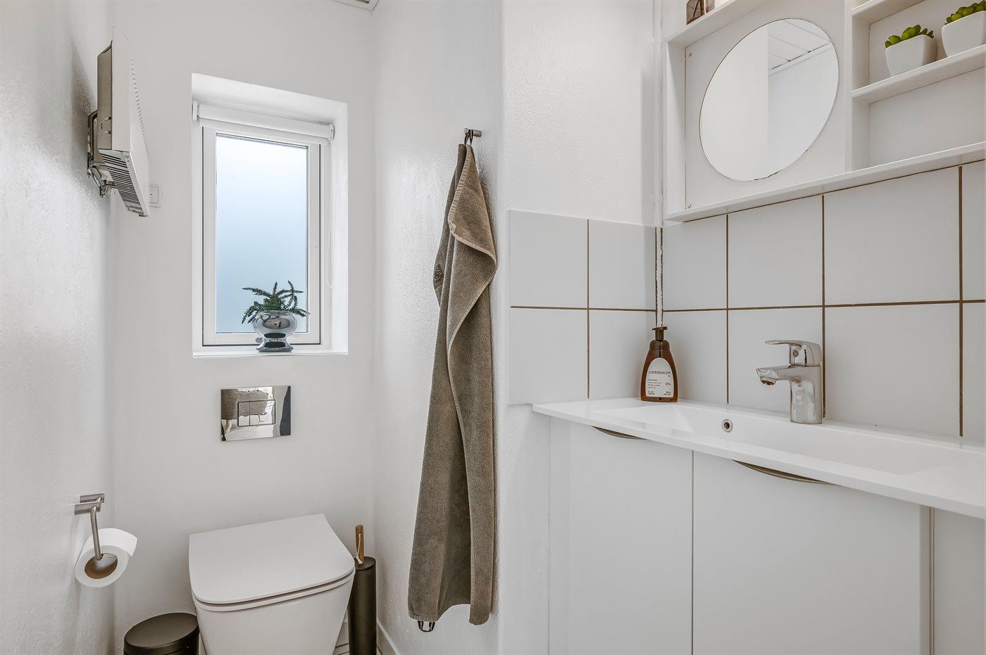 Der er 1 badeværelse med bruser og et separat rum med gulvvarme og toilet.