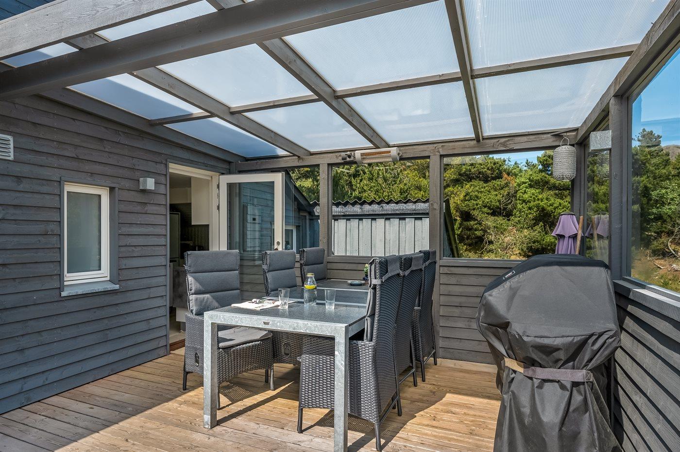 Ferieboligen er beliggende på en 2251 m² stor naturgrund. Der er 500 m til havet. Nærmeste forretning er beliggende i en afstand af 500 m. Til ferieboligen hører 65 m² terrasseareal. Desuden er der 12 m² overdækket terrasse. Gynge. Parkering ved ferieboligen.