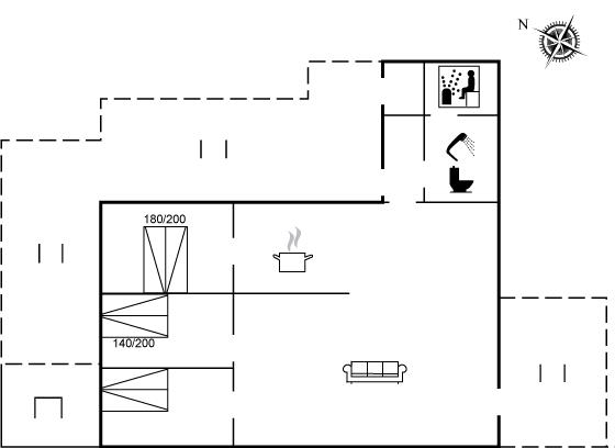 Der er 1 badeværelse med bruseniche og 1 toilet. I saunaen er der mulighed for afslapning.