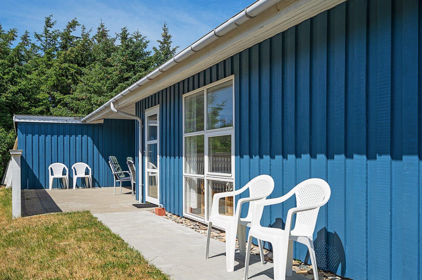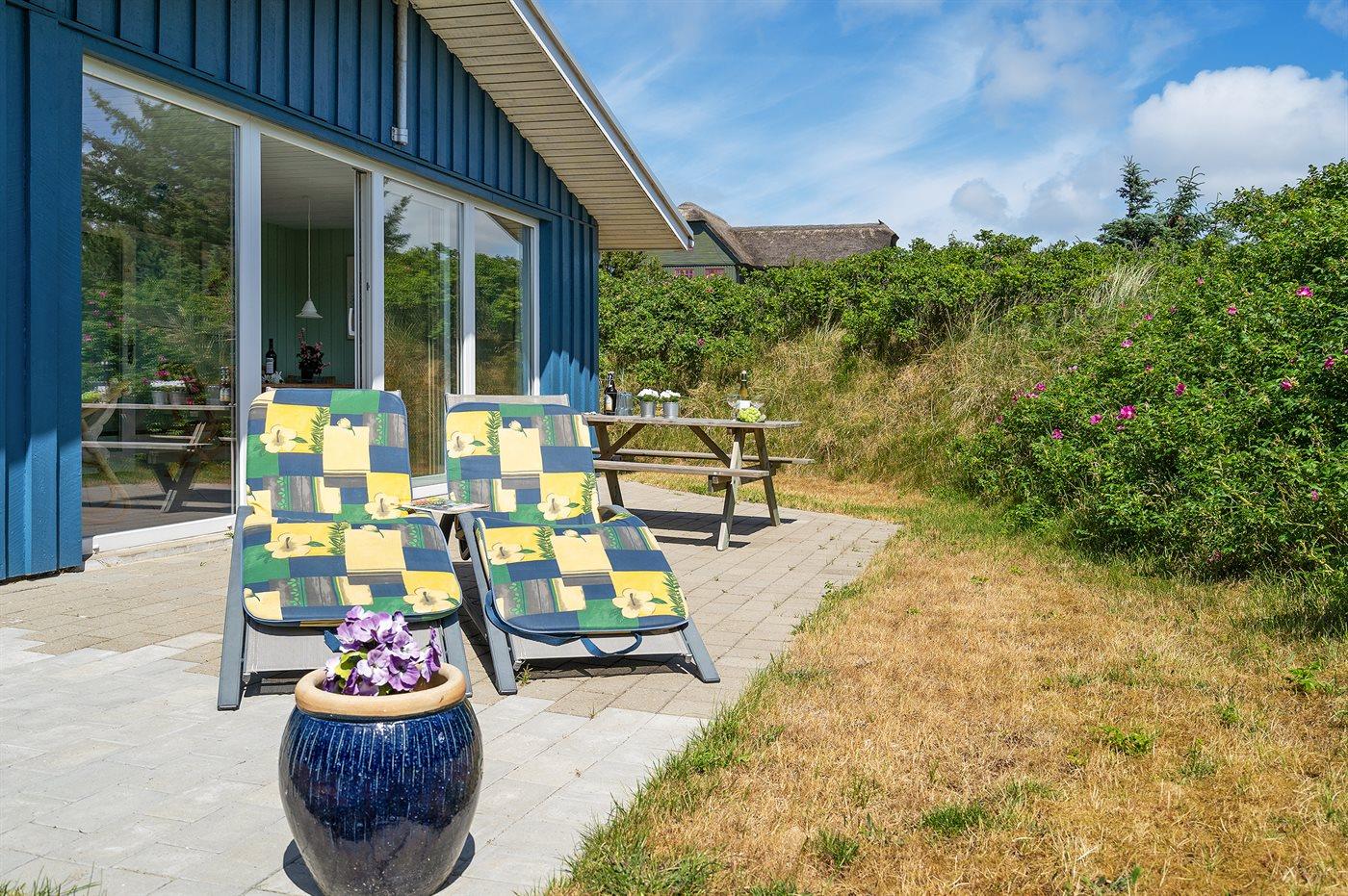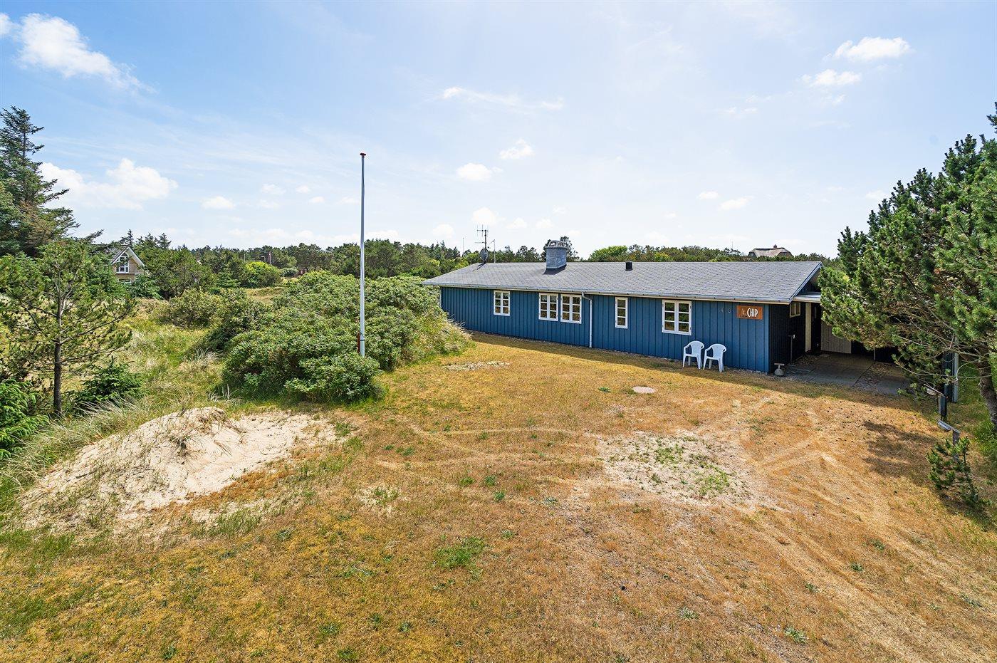 Kun 500 m fra Vesterhavet ligger dette dejlige sommerhus, som egner sig til 6 personer. Ferieboligen er på 115 m² og er bygget i 1970. I 2007 gennemgik ferieboligen en delvis renovering og er løbende vedligeholdt og renoveret. Ferieboligen har vaskemaskine, hyggelig brændeovn og sauna, og der er gode muligheder for afslapning. Ferieboligen er beliggende på en 1800 m² stor naturgrund. Der er carport til rådighed og parkering på grunden, lige ved ferieboligen. Nærmeste handelsmuligheder er beliggende i gåafstand, således er der kun mellem 100 og 300 m til handelsmuligheder med spisesteder, café, bar, dagligvarer, bager, sportstøj, kunst, smykker og meget mere. Til ferieboligen hører et 20 m² åben terrasse og 20 m² overdækket terrasse. Ligeledes er der adgang til udestue med spiseplads og hyggekrog. Sovepladserne fordeler sig på 3 værelser; 2 med dobbeltseng og 1 med 2 enkeltsenge. Køkkenet er udstyret med køleskab, fryser med en kapacitet på 60 liter, el-komfur med 4 kogeplader samt bageovn, mikrobølgeovn, opvaskemaskine, samt diverse husholdningsmaskiner og udstyr. Badeværelse med bruseniche og toilet. Ferieboligen indeholder ligeledes TV med danske og tyske kanaler, radio samt trådløs internetforbindelse.