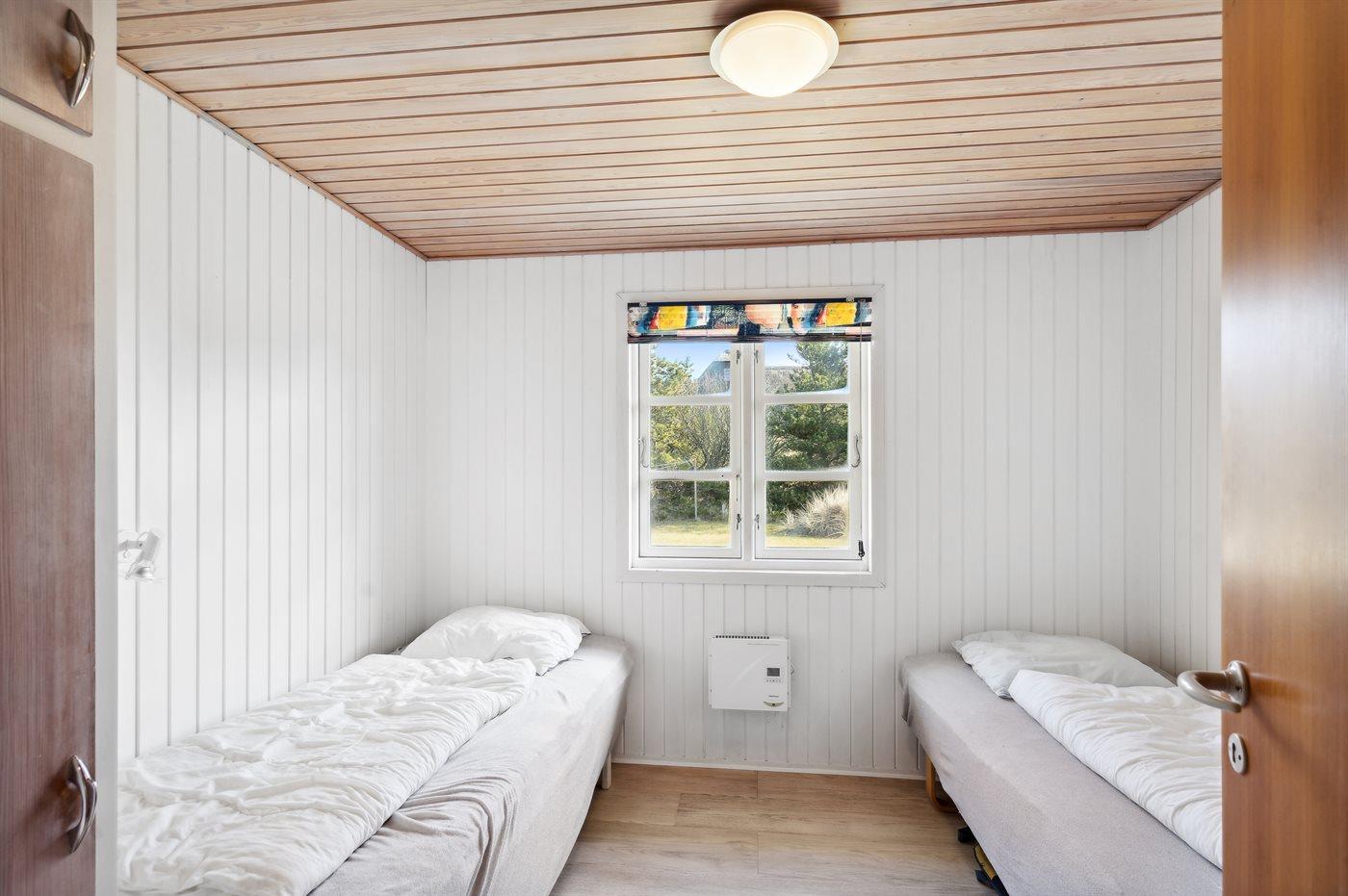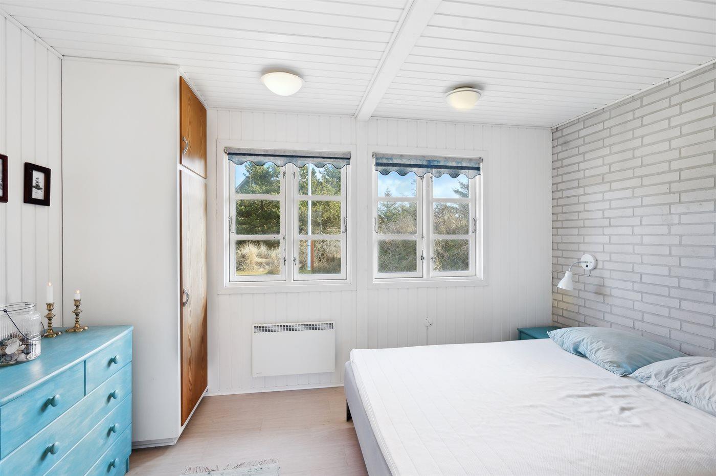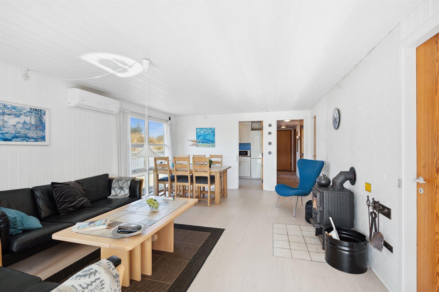 Kun 500 m fra Vesterhavet ligger dette dejlige sommerhus, som egner sig til 6 personer. Ferieboligen er på 115 m² og er bygget i 1970. I 2007 gennemgik ferieboligen en delvis renovering og er løbende vedligeholdt og renoveret. Ferieboligen har vaskemaskine, hyggelig brændeovn og sauna, og der er gode muligheder for afslapning. Ferieboligen er beliggende på en 1800 m² stor naturgrund. Der er carport til rådighed og parkering på grunden, lige ved ferieboligen. Nærmeste handelsmuligheder er beliggende i gåafstand, således er der kun mellem 100 og 300 m til handelsmuligheder med spisesteder, café, bar, dagligvarer, bager, sportstøj, kunst, smykker og meget mere. Til ferieboligen hører et 20 m² åben terrasse og 20 m² overdækket terrasse. Ligeledes er der adgang til udestue med spiseplads og hyggekrog. Sovepladserne fordeler sig på 3 værelser; 2 med dobbeltseng og 1 med 2 enkeltsenge. Køkkenet er udstyret med køleskab, fryser med en kapacitet på 60 liter, el-komfur med 4 kogeplader samt bageovn, mikrobølgeovn, opvaskemaskine, samt diverse husholdningsmaskiner og udstyr. Badeværelse med bruseniche og toilet. Ferieboligen indeholder ligeledes TV med danske og tyske kanaler, radio samt trådløs internetforbindelse.
