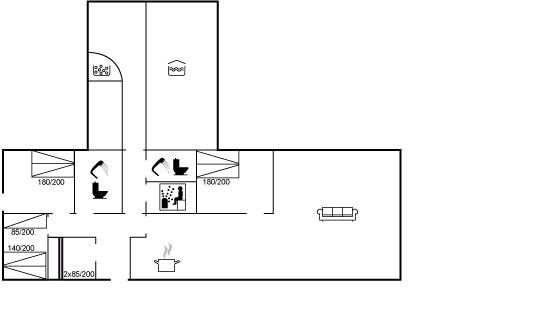 Der er i alt 4 soveværelser. Sovepladserne fordeler sig på: 6 sovepladser i dobbeltsenge. 1 soveplads i enkeltseng. 2 sovepladser i køjeseng. Derudover er der 1 stk. barneseng.