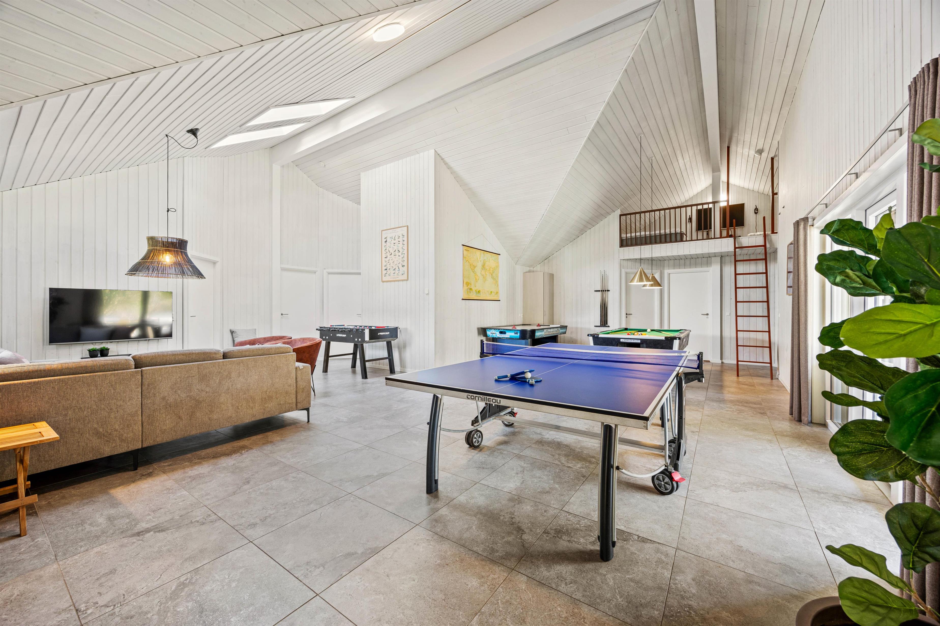 Feriehuset i Vejers er et sandt aktivitetshus, der tilbyder dig og dine medrejsende adskillige muligheder for fritidsaktiviteter. Nyd den fantastiske swimmingpool, eller træk dig tilbage til saunaen og det stående spabad for at forkæle krop og sjæl. For fysisk aktivitet står billard, bordtennis og bordfodbold til din rådighed. Du kan også være aktiv udendørs på den store grund på 2957 m², hvad enten det er til beachvolleyball eller en afslappet grillaften på den overdækkede terrasse.