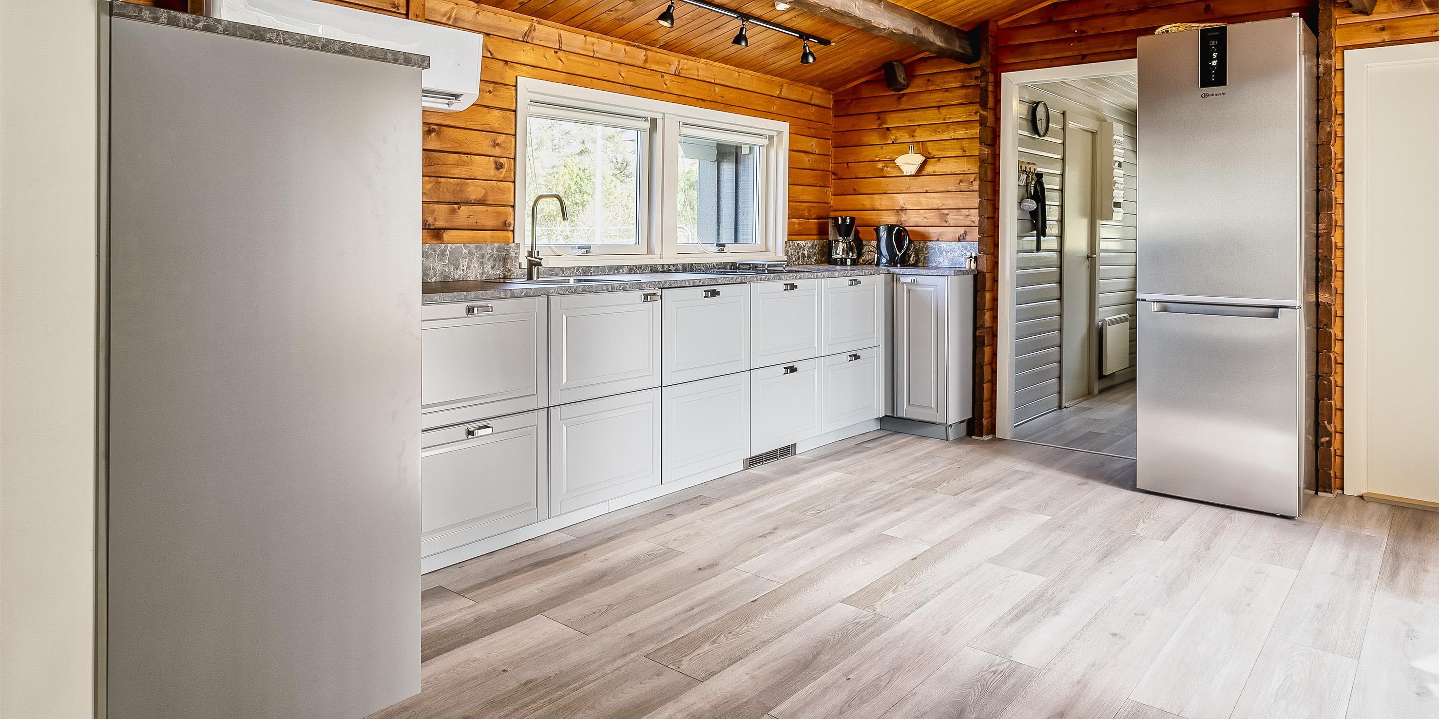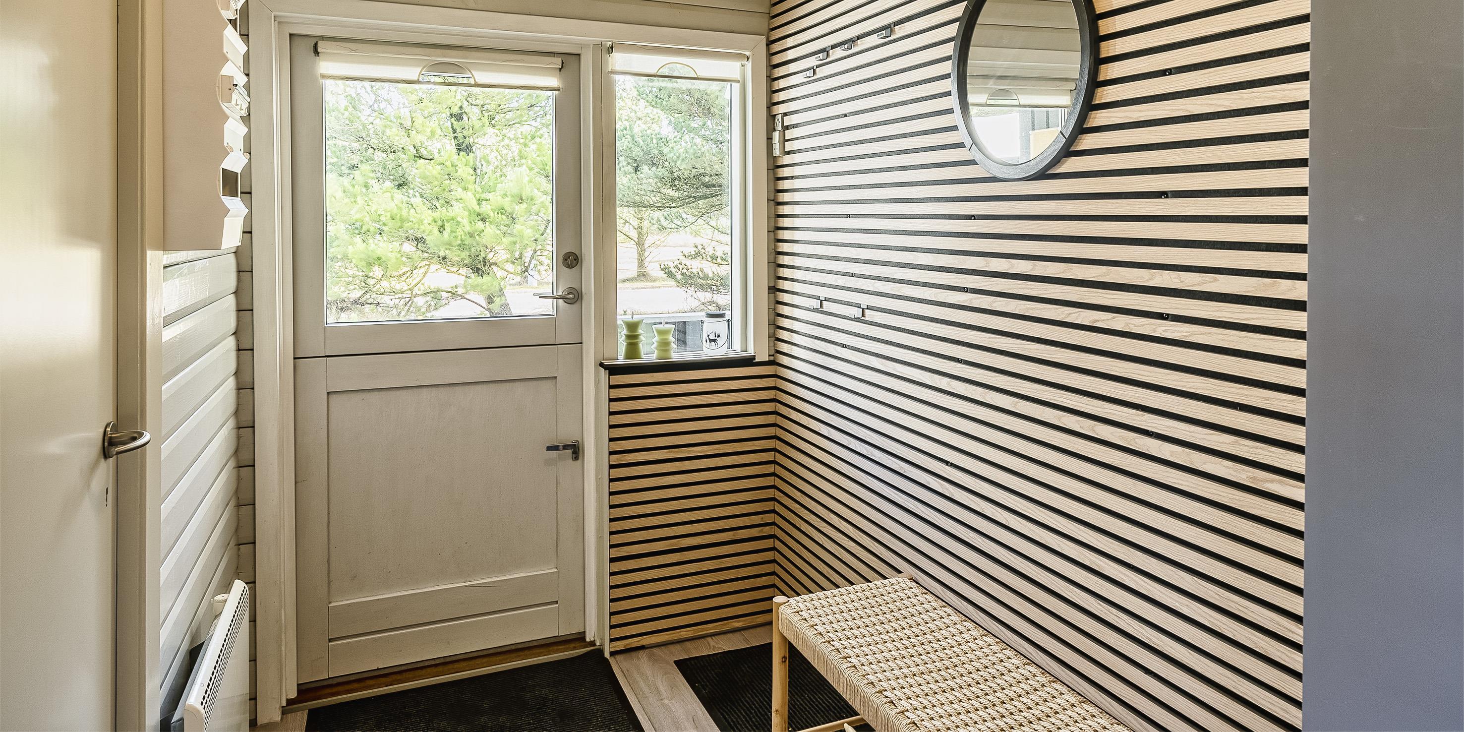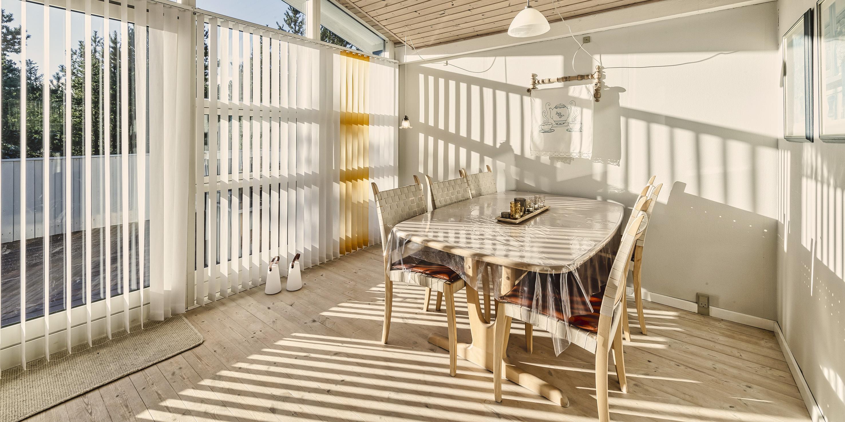 3 soveværelser. 1 med dobbeltseng 180x200 cm. 1 med 2 enkeltsenge (á 80x200 cm). 1 med 1 køjeseng og 1 enkeltseng.