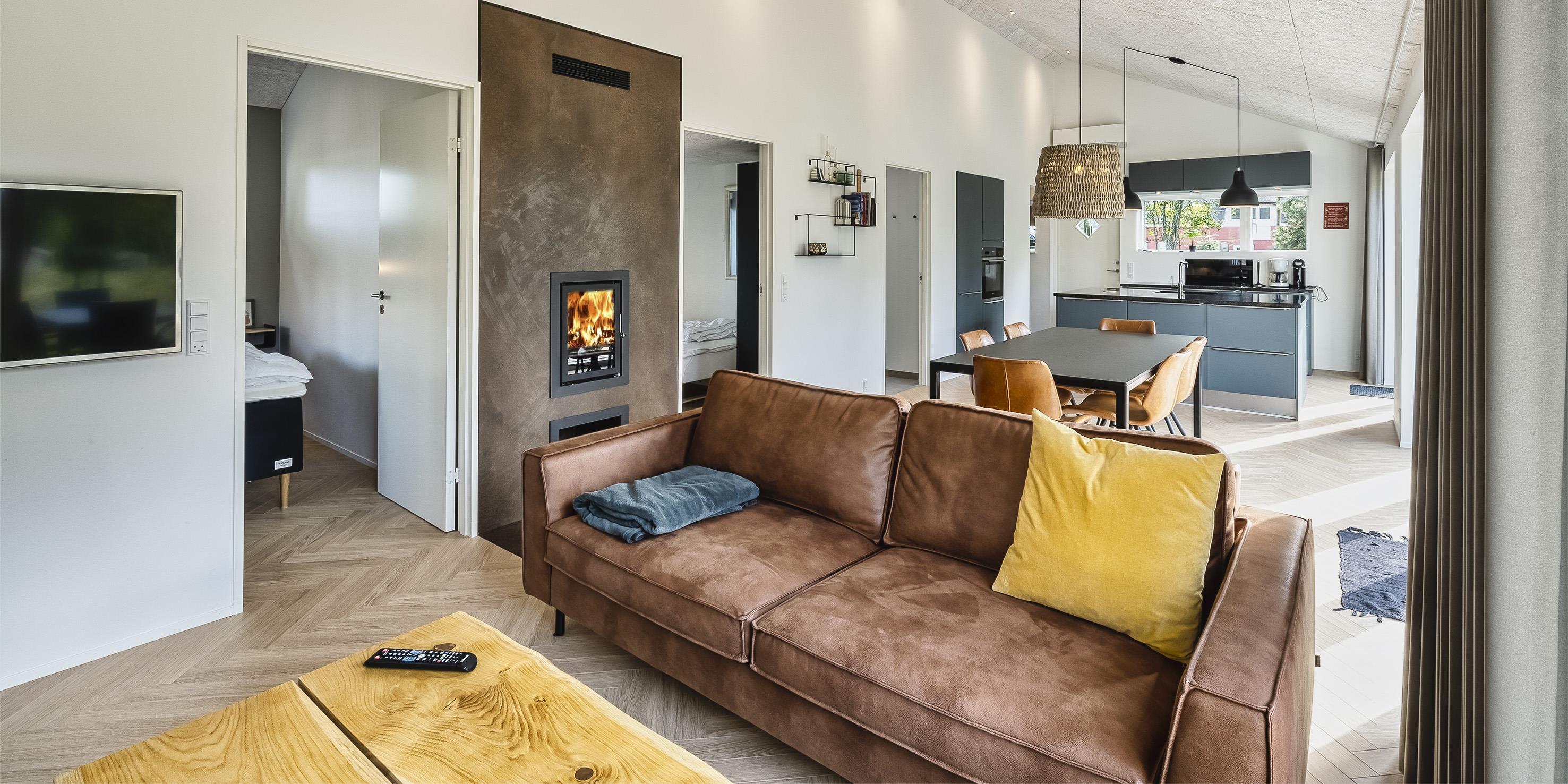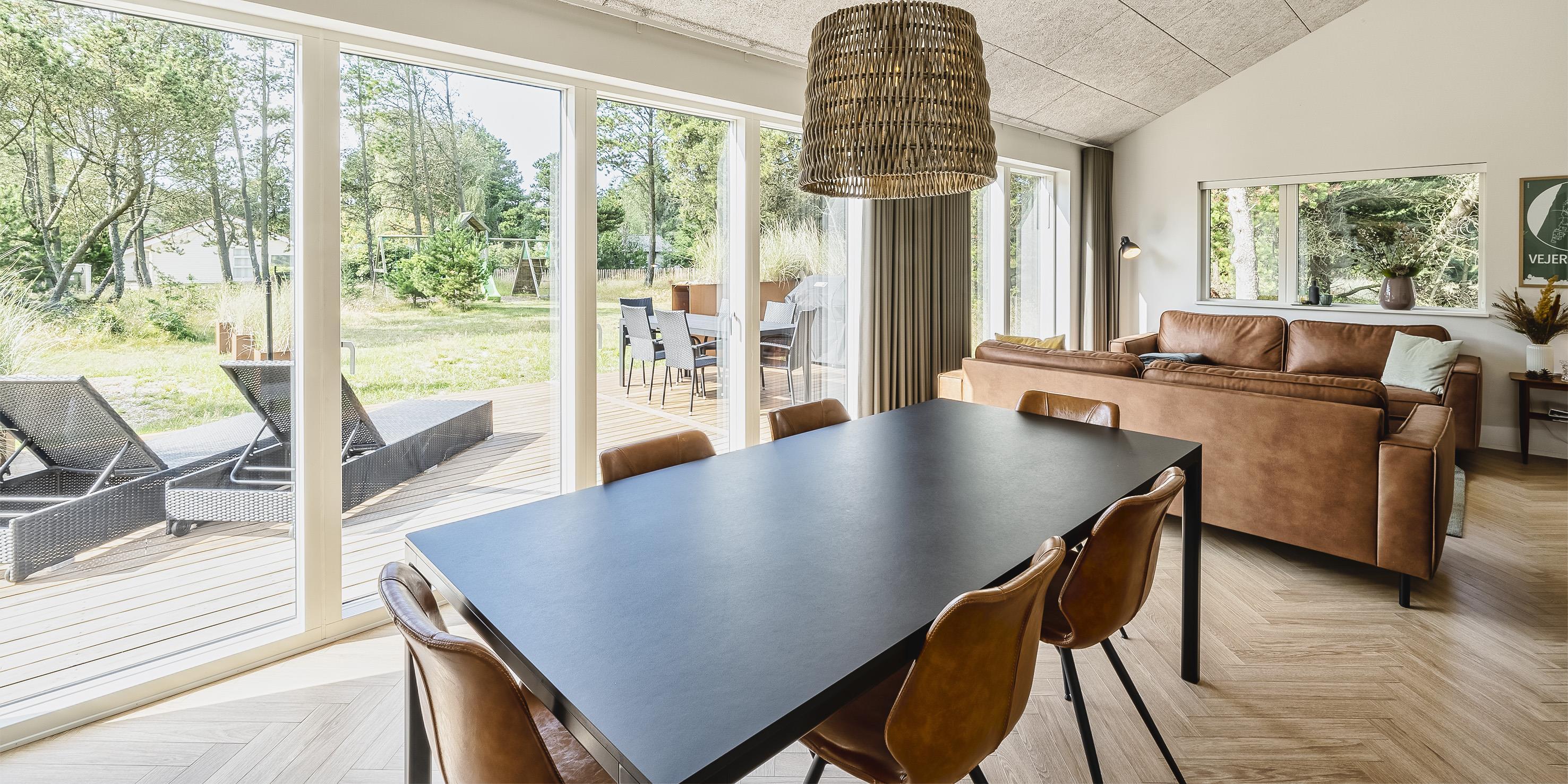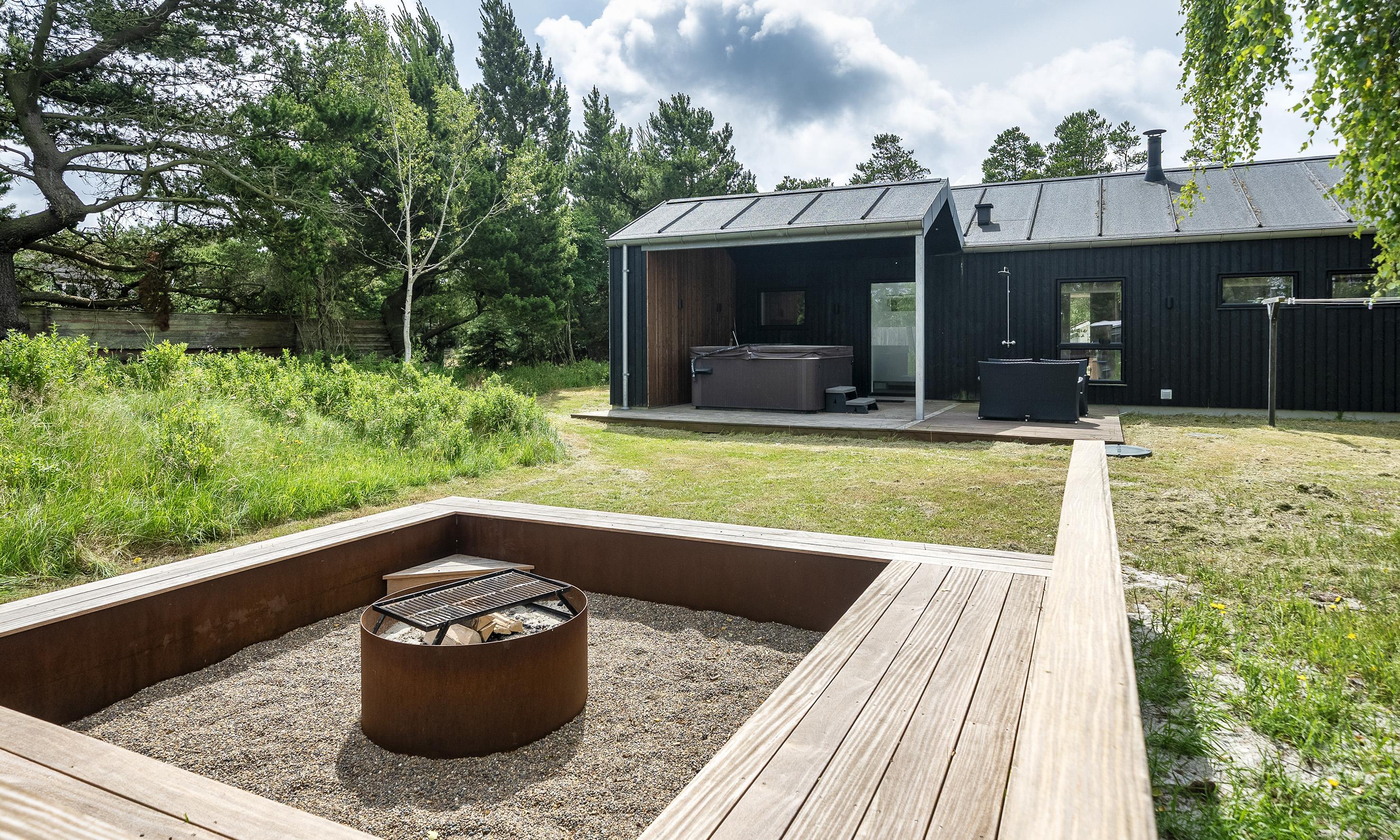Utrolig dejligt nybygget sommerhus til 5 Vejers fans, beliggende på en stor naturgrund, ca. 1800 meter fra stranden. Huset fremstår lyst og dejligt med åbent planløsning med opholdsrum og køkken-alrum ud i et, store glaspartier med skydedøre hvorfra hele naturgrunden kan nydes fra huset. Entre igennem huset opholdsrum, hvorfra der er en garderobe hjørne. Lyst og dejligt køkken der fremstår med alt komfort såsom opvaskemaskine, mikroovn, indbygningsovn, keramisk kogeplade og køle/frysekombination. Køkkenet er i åben forbindelse med spiseplads med kig til indbygningsbrændeovn, og opholdsstuen med fjernsyn, og trådløs internetadgang, Smart TV, Google Chrome Cast und Sonas højtaler. Huset råder over 2 rummelige soveværelser DS + 2S/DS og hems. Masterbadeværelse med en bruser, toilet, vaskearrangement samt vaske- tørremaskine. Fra badeværelset er der adgang til huset sauna med kig ud, samt udgang til overdækket terrasse med en stor udendørsspa og udvendig bruser. Shelter. Hele huset fremstår med gulvvarme. Varmepumpe. Træterrasse i plan med huset. Gyngestativ. Bålsted. Dejlig naturgrund med trampolin, en stor græsplæne der indbyder til bold og leg. Rygning er ikke tilladt! Huset er tilladt med én hund! Hunden må ikke komme i møblerne eller i sengen. Gas til gasgrillen skal lejer selv sørger for. Der findes en stor gasflaske, men vi kan ikke garantere at den er fyldt op. Gratis adgang til Badeland i Varde 2025. Byggeår 2020.