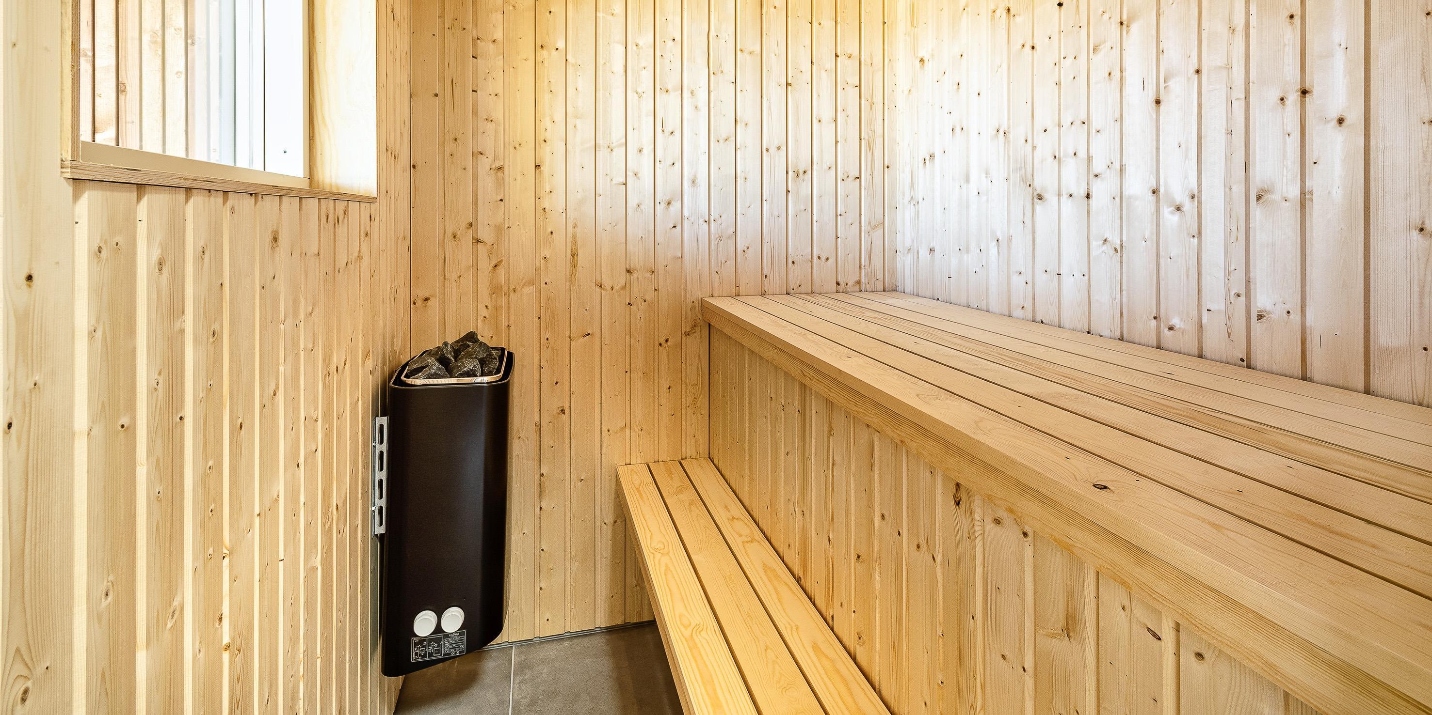 2 soveværelser. 1 med dobbeltseng 180x200 cm. 1 med 2 enkeltsenge (á 90x200 cm) og 1 smal dobbeltseng.