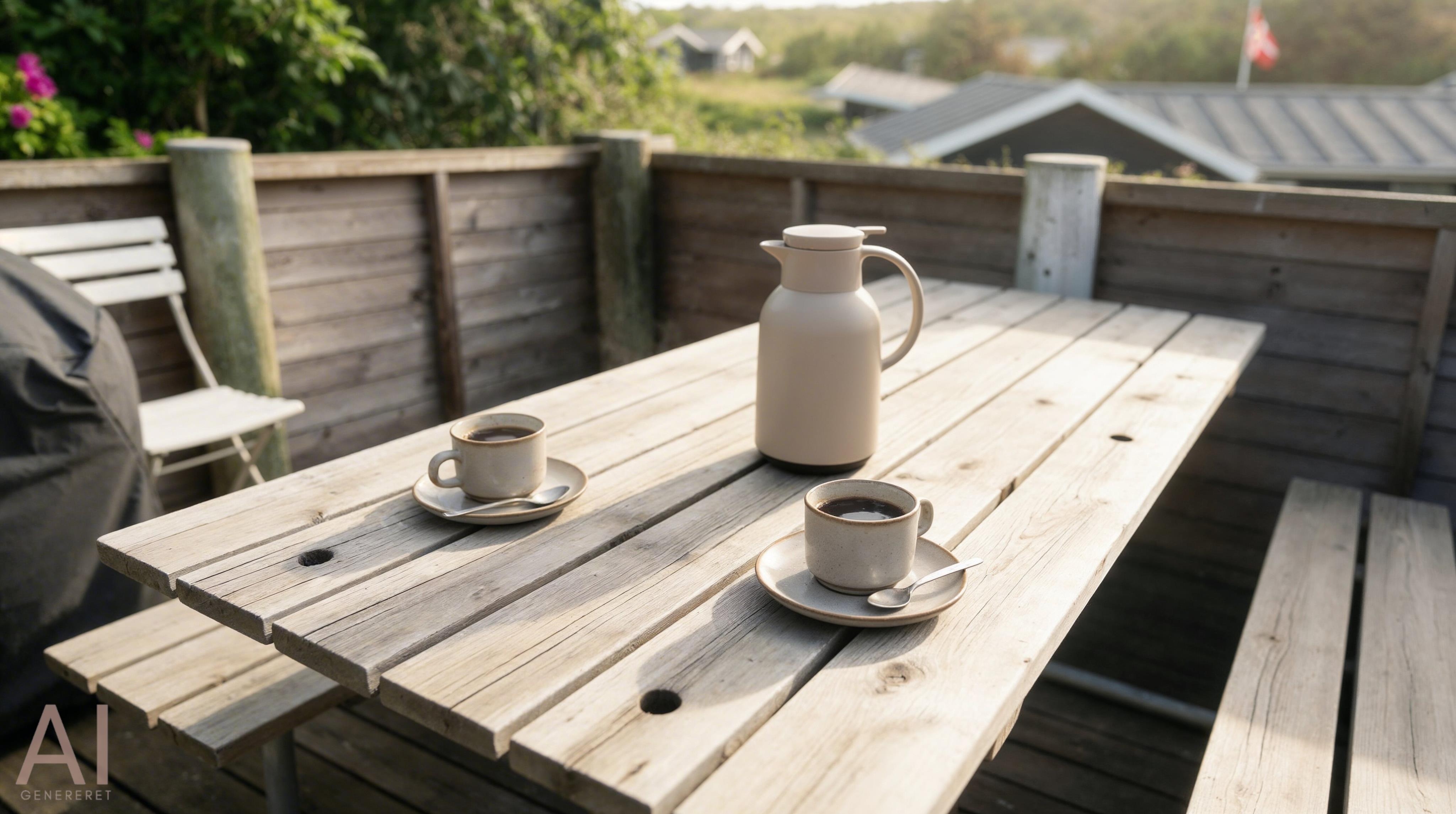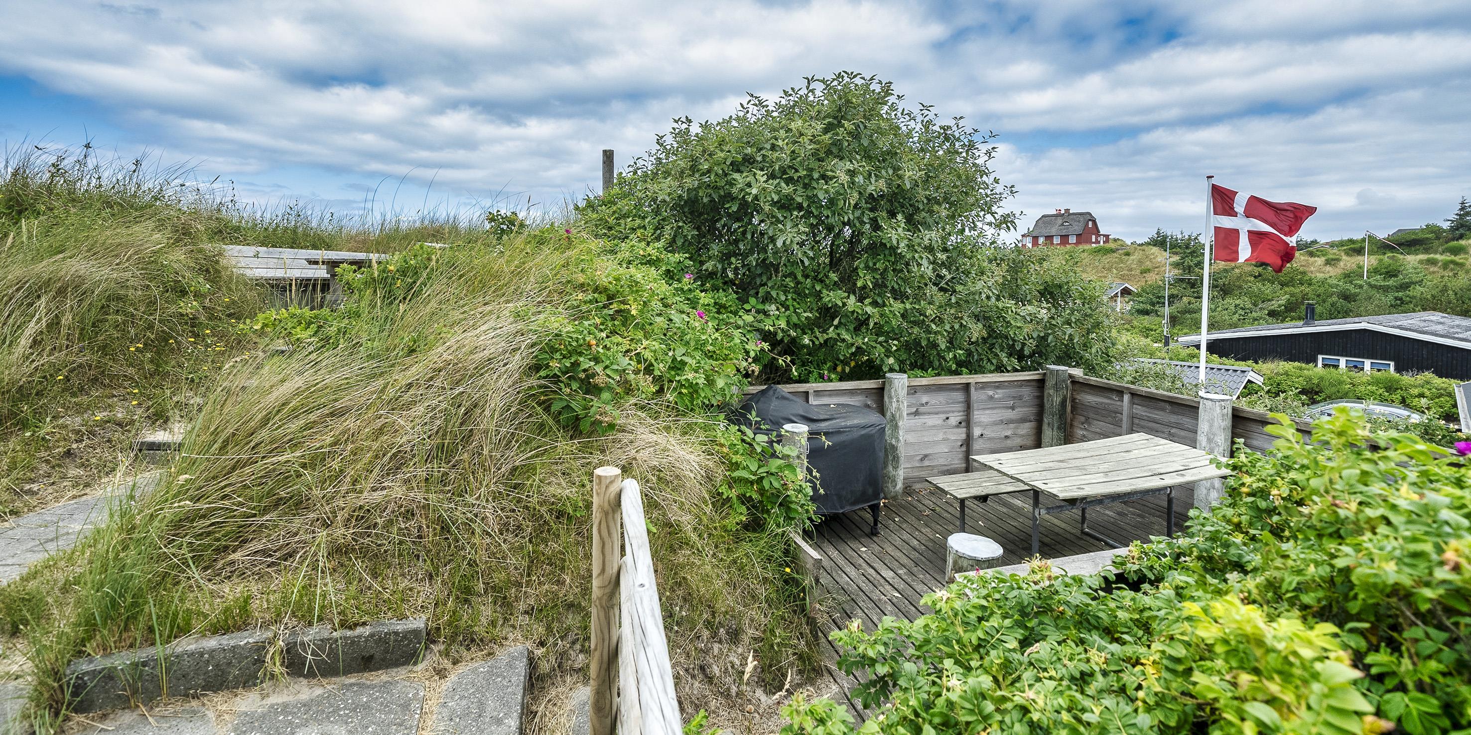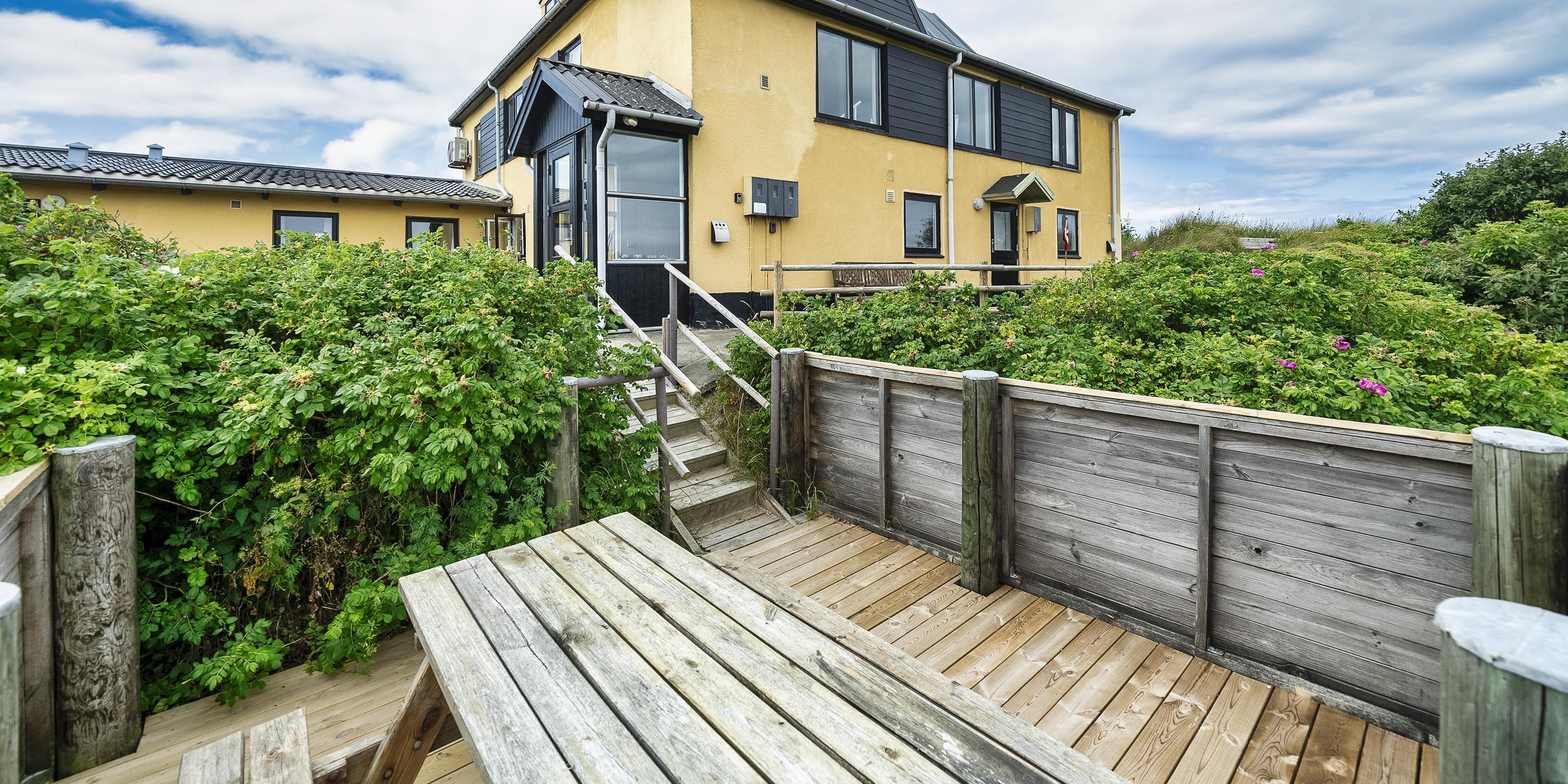 Hyggelig og renoveret ferielejlighed nær Vesterhavet med plads til fire personer og flere terrasseområder.