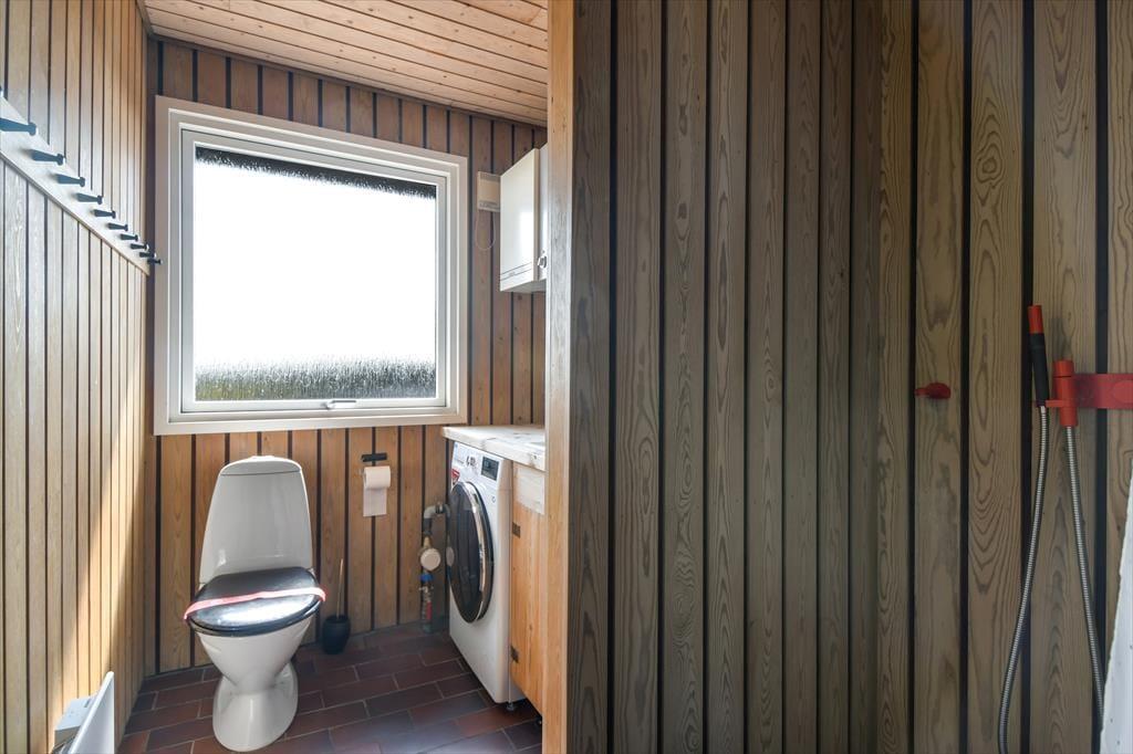 Indenfor mødes du af et indbydende køkkenalrum, hvor stue og køkken smelter sammen. Den hyggelige spiseplads og sofagruppen ved pejsen skaber rammerne for afslappende stunder med familie eller venner. Gennem vinduerne kan du nyde synet af de majestætiske klitter, mens pejsens knitren spreder varme. Huset rummer tre komfortable soveværelser og et badeværelse med bruseniche, der sikrer en behagelig base efter en dag fuld af oplevelser.