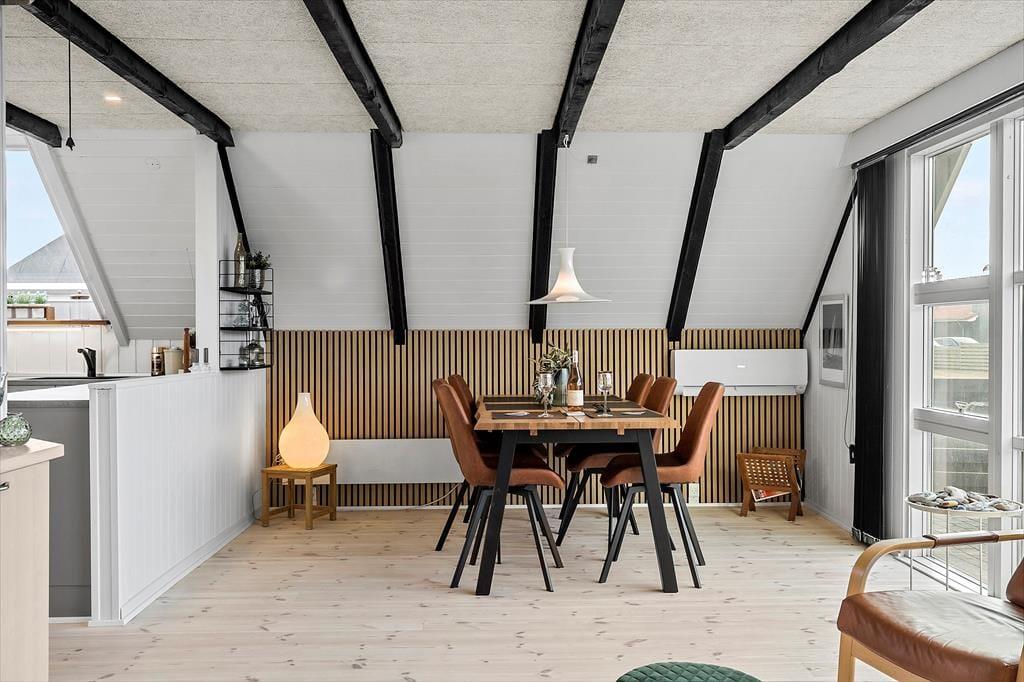 Fra det øjeblik du åbner døren, mødes du af en frisk atmosfære præget af moderne elegance – sommerhusets stueplan er nemlig gennemrenoveret i 2024. Her træder nye, stilfulde møbler og en smagfuld indretning i rolige farvetoner frem, som skaber en stemning, du vil elske at vende tilbage til efter en lang dag i klitterne. Køkkenet er lyst, moderne og indbyder til fælles madlavning med friske lokale råvarer, mens det lækre nye badeværelse giver dig følelsen af velvære på alle tider af døgnet.