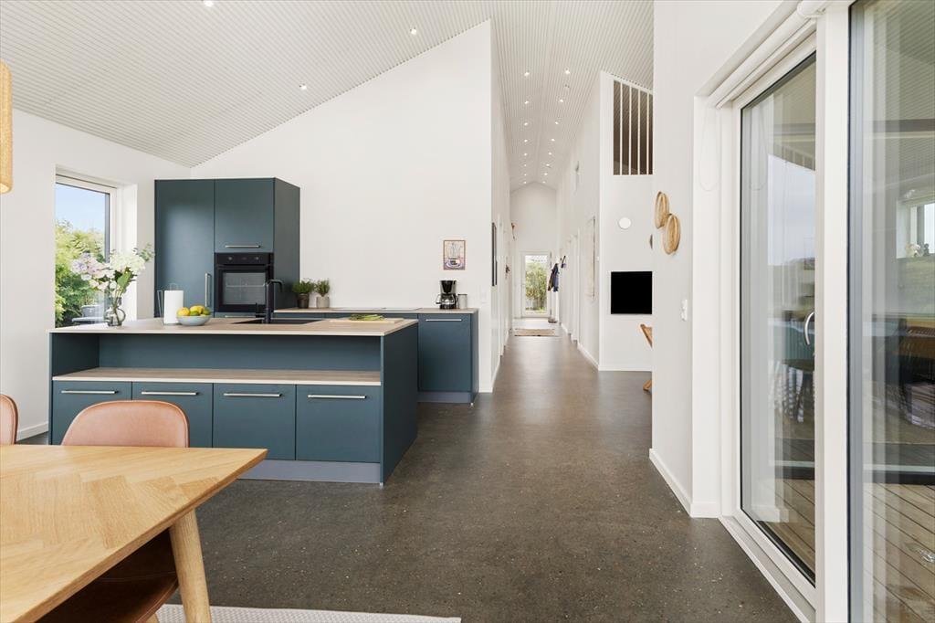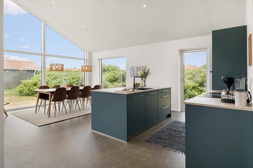 Det første, der møder dig, når du træder indenfor, er den elegante og moderne indretning, der præger hele huset. Farvevalget er lyst og indbydende, og med rummelige opholdsarealer kan alle føle sig hjemme. Køkken og stue er samlet i en åben planløsning, hvor store vinduer lader lyset strømme ind og giver udsigt til de smukke omgivelser. Når det er tid til at forkæle dig selv, kan du glæde dig til wellness på badeværelset både badekar. Her er også fire komfortable soveværelser, hvor du kan finde ro efter en lang dag fuld af oplevelser. Det praktiske ekstra badeværelse gør huset perfekt til større selskaber, mens hemsen giver børnene en hyggelig plads til leg eller afslapning.