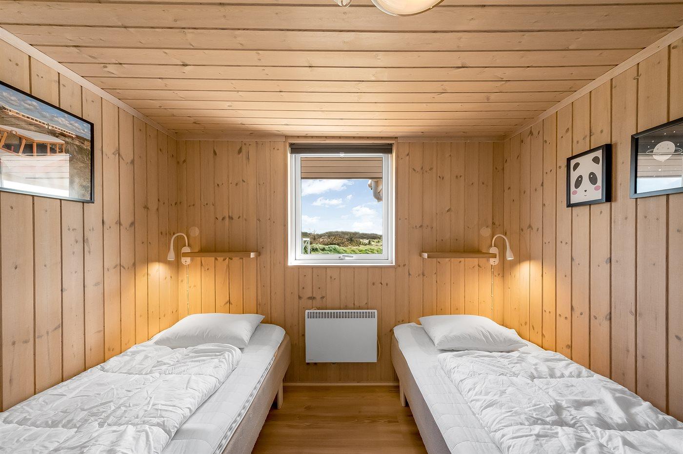 Der er i alt 3 soveværelser. Sovepladserne fordeler sig på: 4 sovepladser i dobbeltsenge. 2 sovepladser i enkeltsenge. Derudover er der 2 stk. barnesenge.