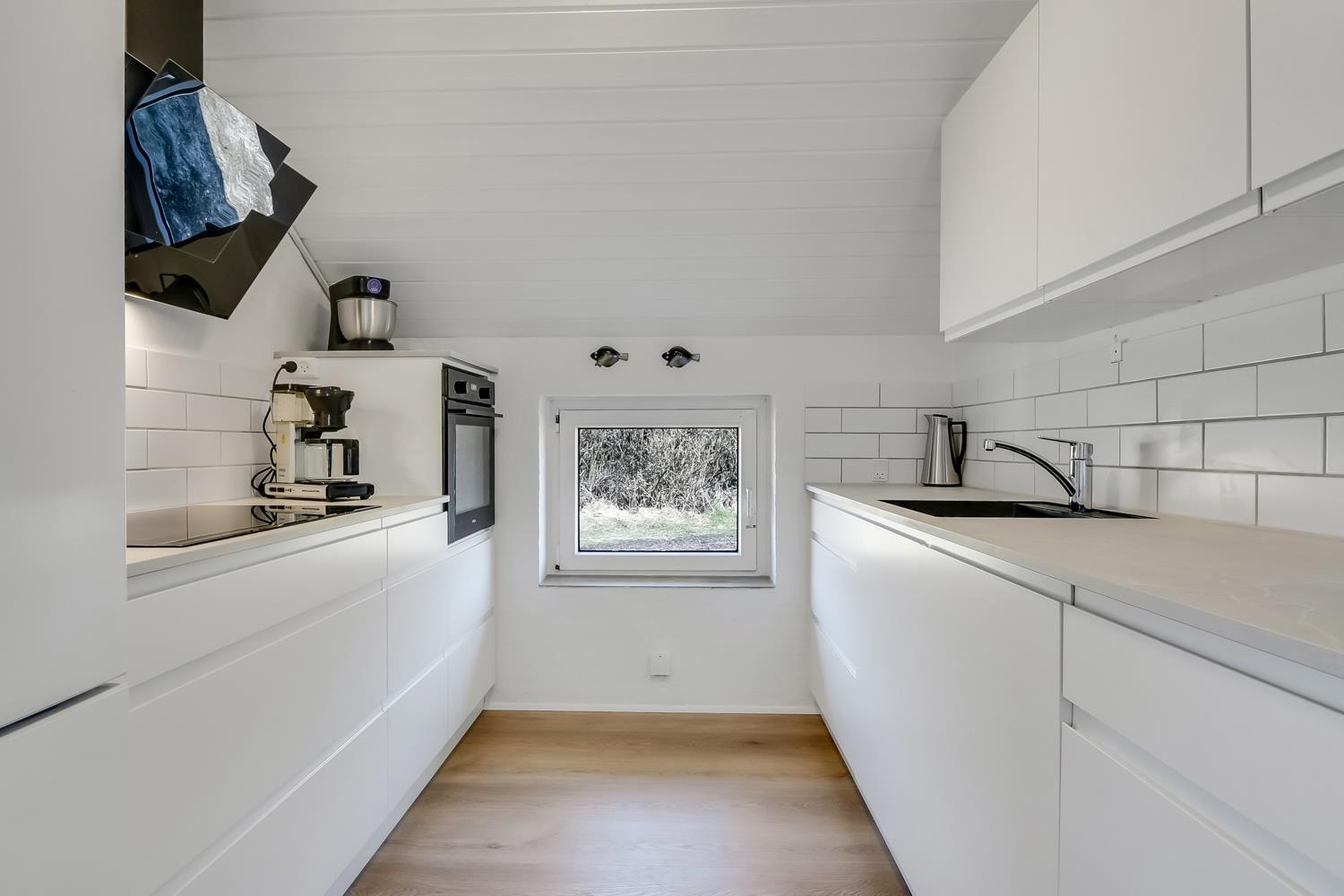 Køkkenet har alt, hvad du har brug for: keramisk kogeplade, indbygningsovn, mikroovn, køle-/fryseskab og opvaskemaskine.