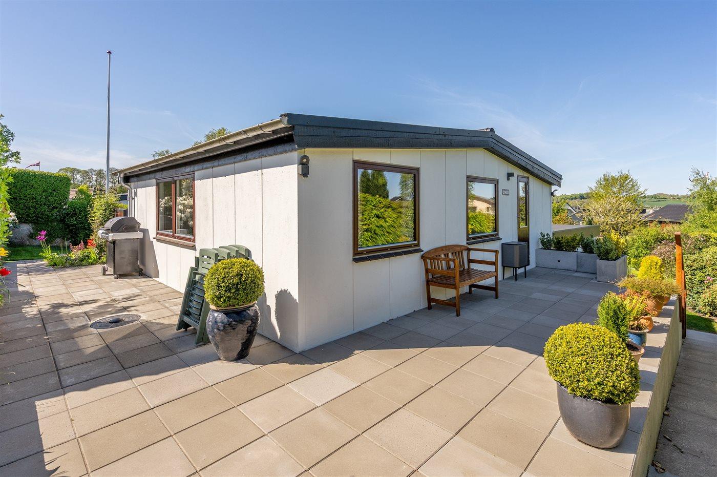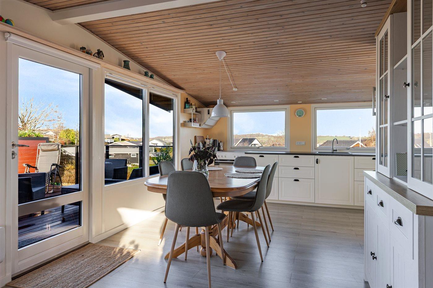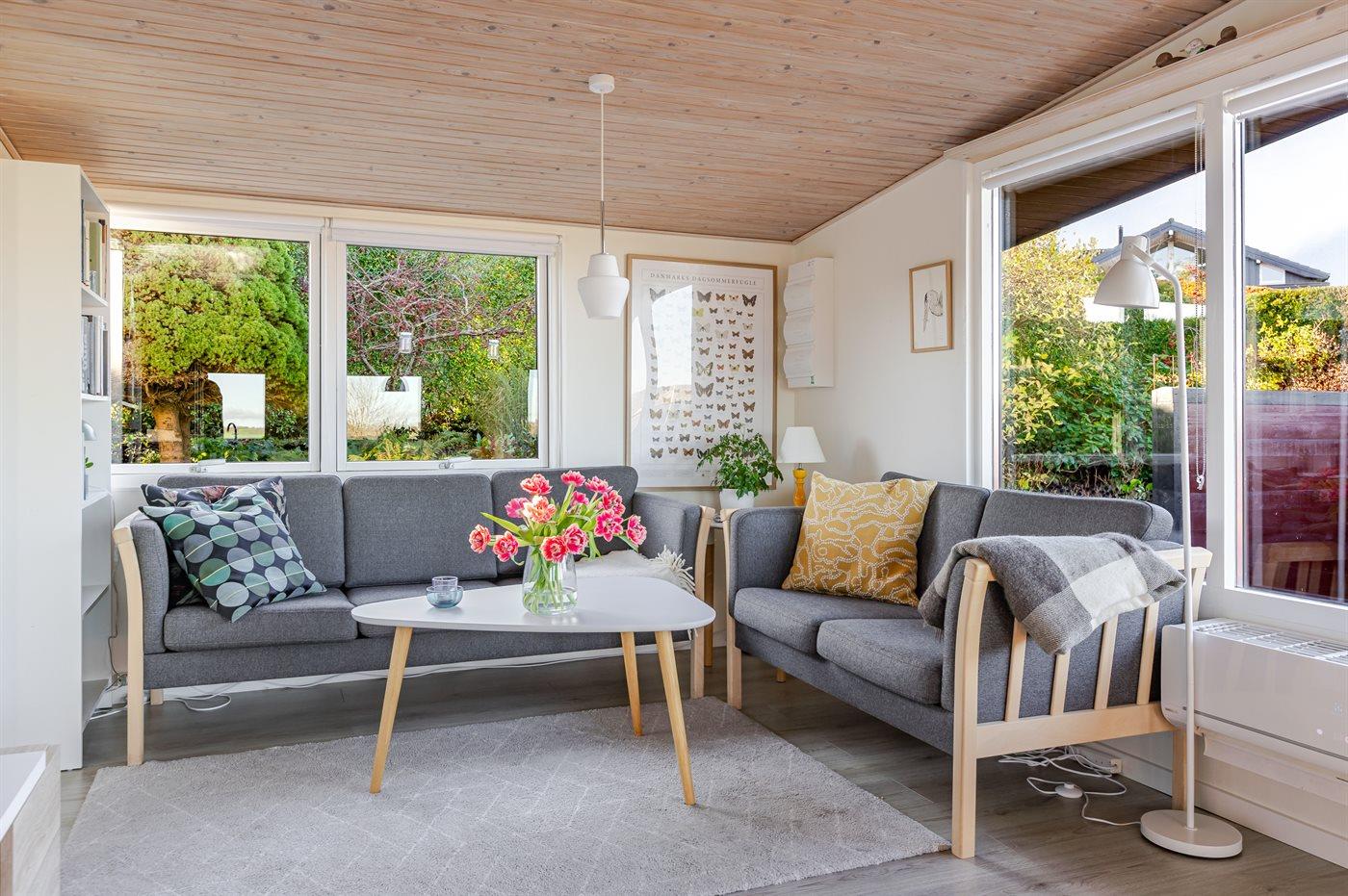 Dette smukt beliggende sommerhus ligger højt i det populære område og byder på en dejlig udsigt – både indefra huset og fra den store terrasse, hvor I kan nyde solens stråler og den beroligende udsigt over vandet.