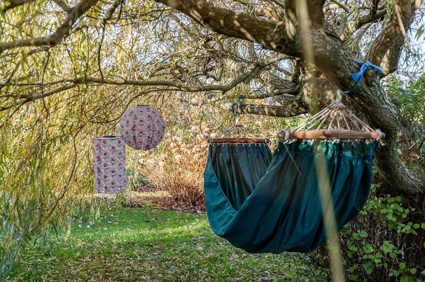 Den skønne have er et kapitel for sig. Her kan børnene lege under hængepilen, som danner en naturlig hule, mens de voksne slapper af i hængekøjen.