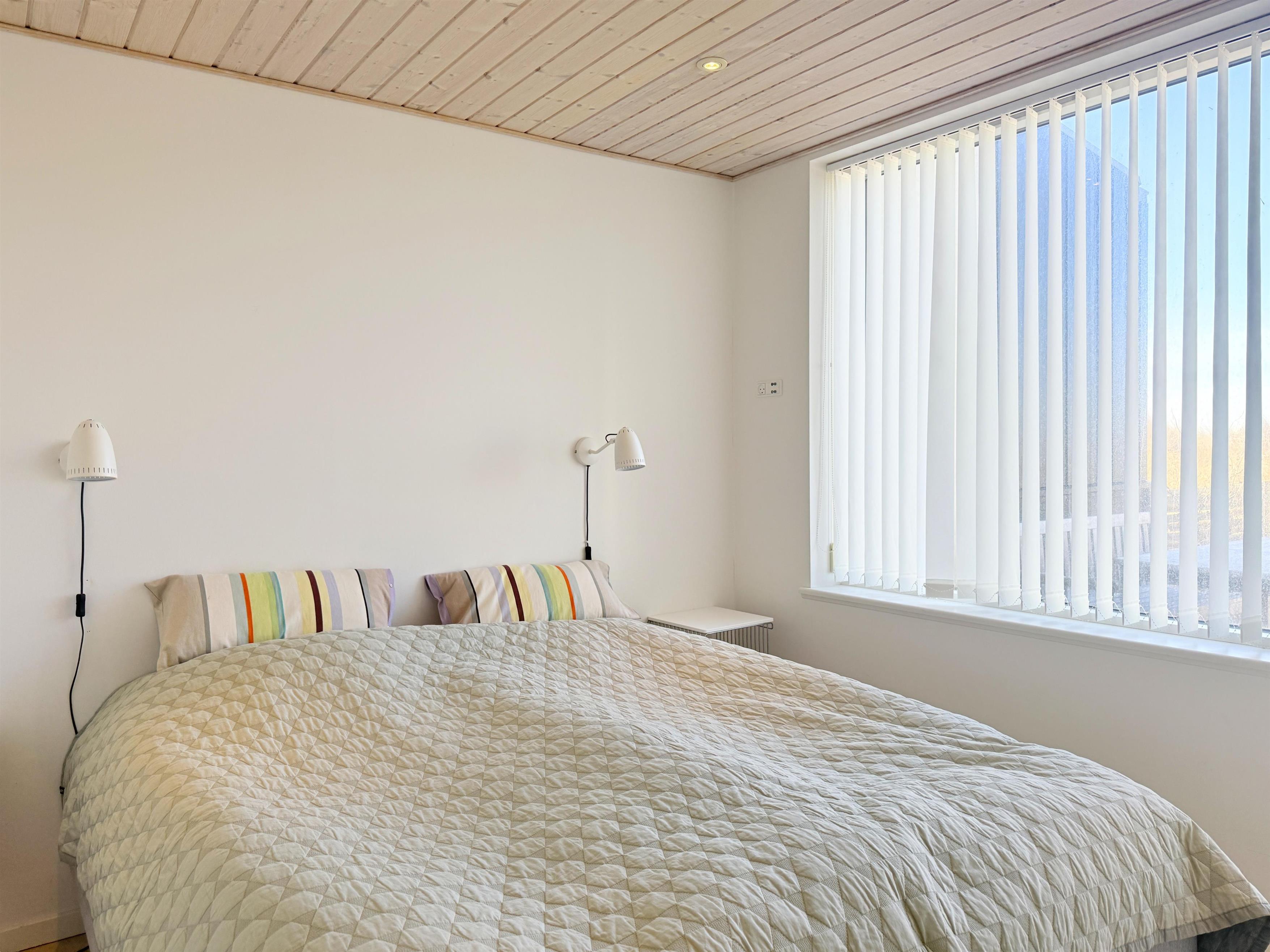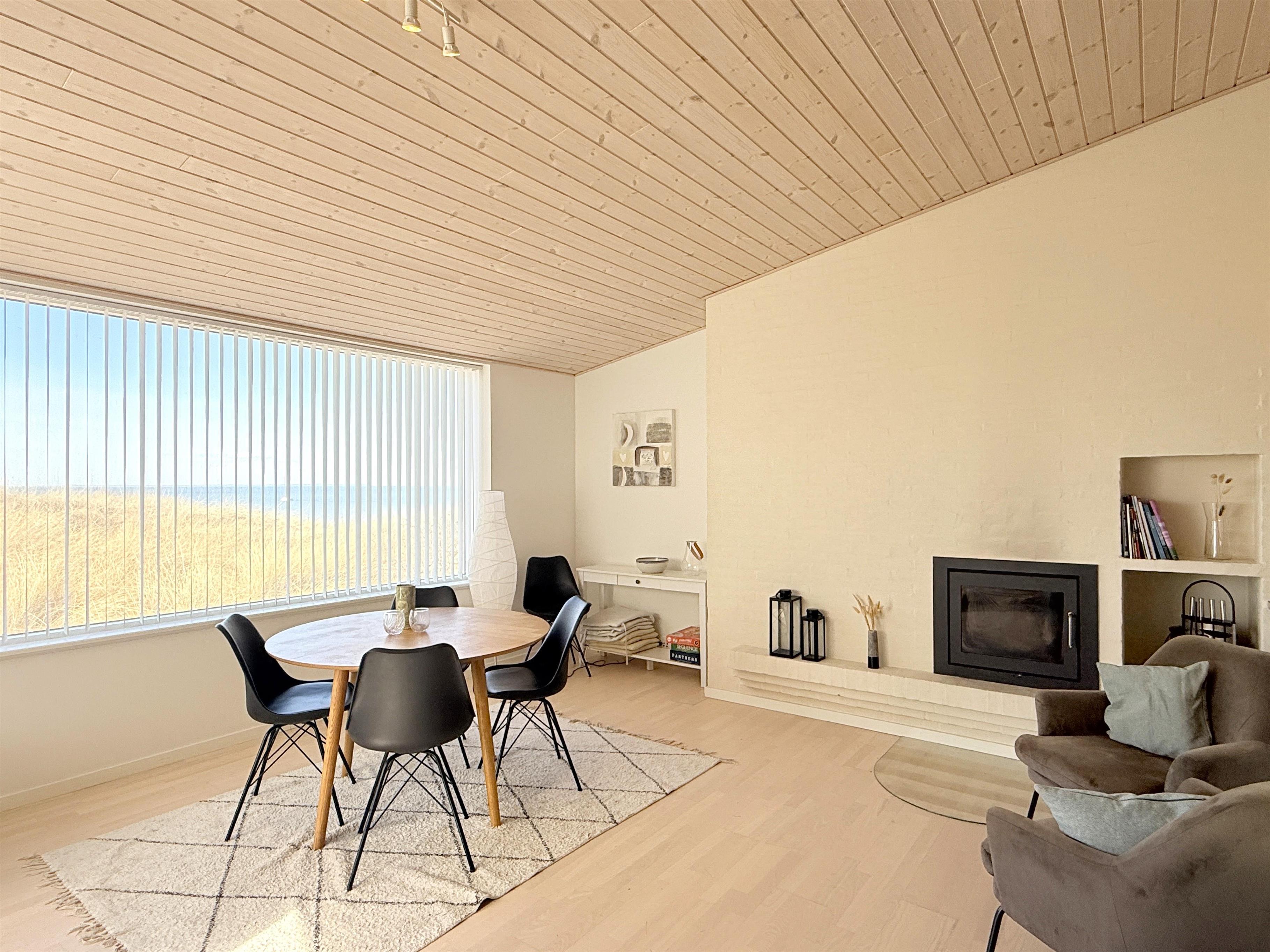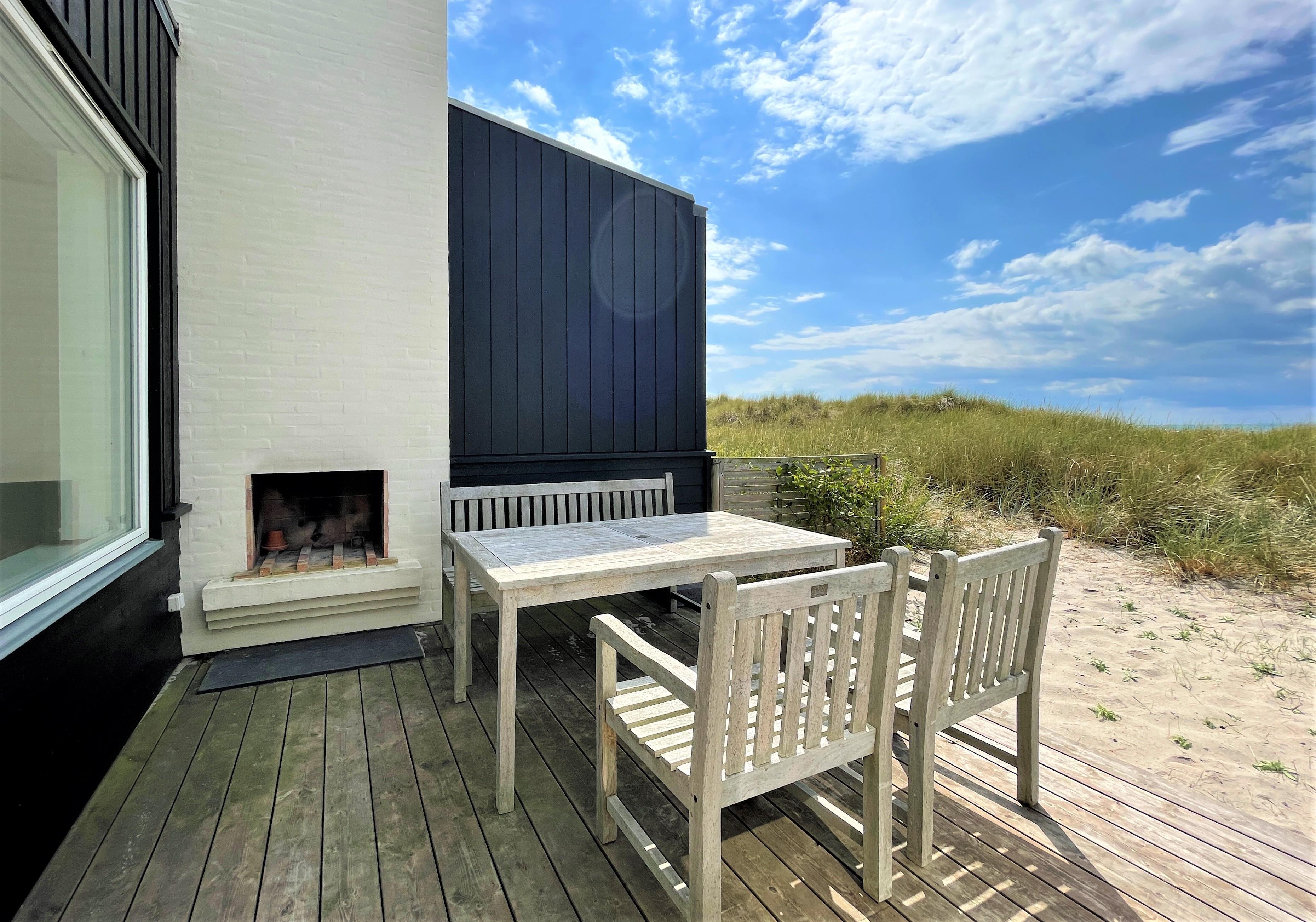 Midt i klitterne og med fuld havudsigt ligger dette fantastiske strandhus. Der er tale om en af Læsøs absolut bedste beliggenheder ved badestranden, hvor man virkelig kan nyde strand og natur, og samtidigt være tæt på det hyggelige havnemiljø i Vesterø. Selve strandhuset indeholder éntre, stort, lyst og moderne køkken/alrum med barstol, spiseplads samt hyggelig sofaafdeling med pejs indbygget i væggen. Huset har to soveværelser med en dobbelt- samt to enkeltsenge. Fra soveværelset med dobbeltseng og fra stuen er der udgang til terrasse med panorama havudsigt. Via udgangen står man direkte i marehalm og omkranset af klitroser. Denne terrasse er udstyret med udendørs pejs og behagelige havemøbler. Desuden stort, lyst og lækkert badeværelse med brus samt østvendt terrasse på den anden side af huset.