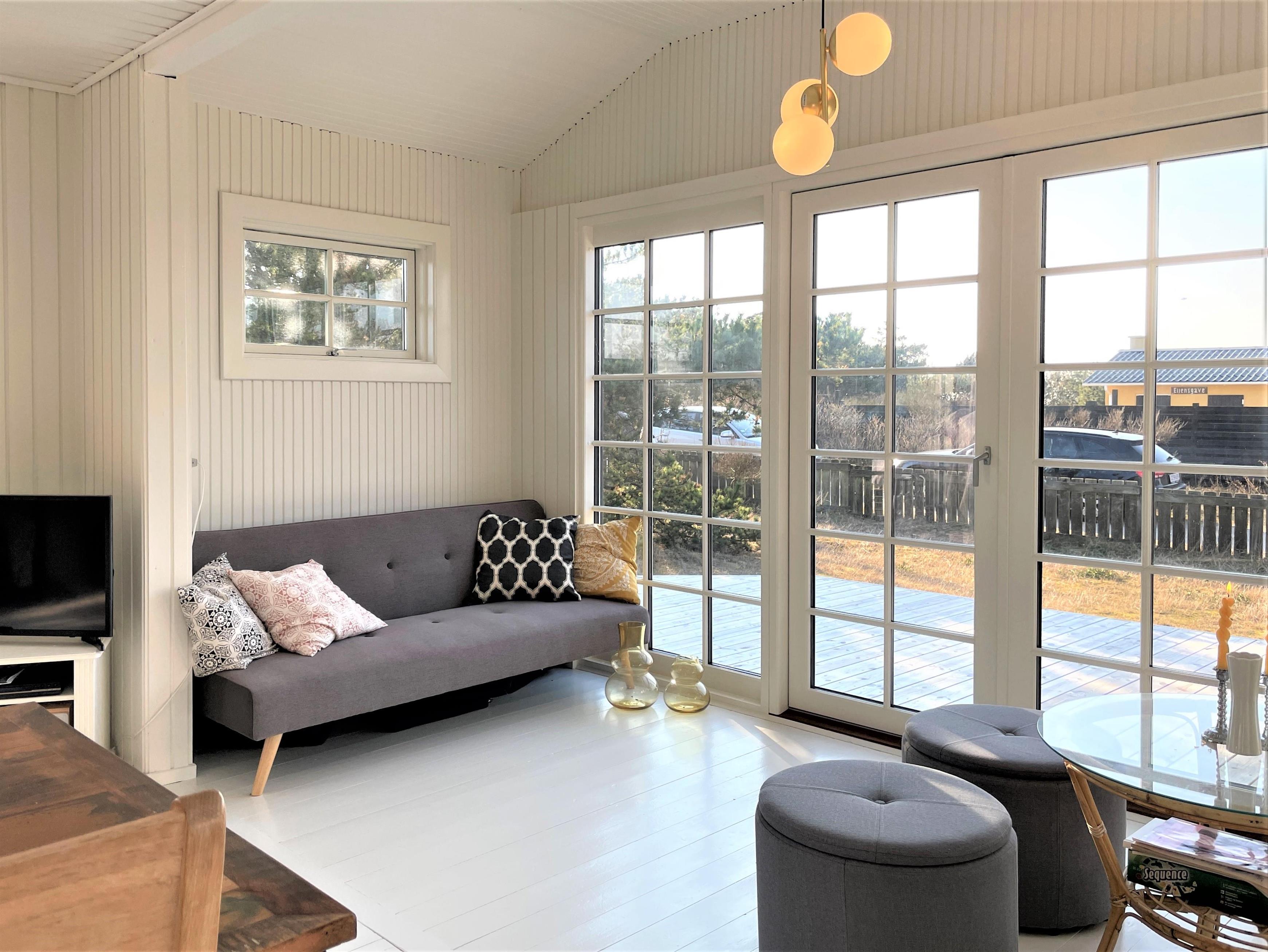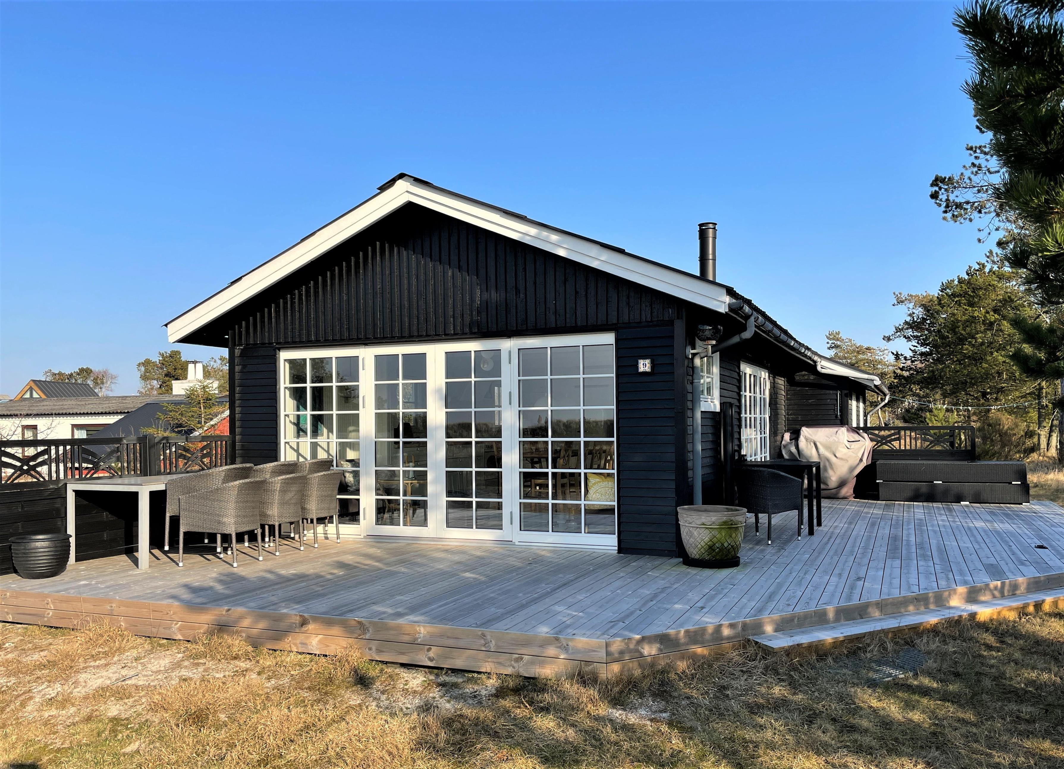 Her kan du både tage på en dejlig sommerferie tæt på Kattegats bølger, eller nyde en vinterferie i læ bag klitterne med sofahygge og varme fra brændeovnen.