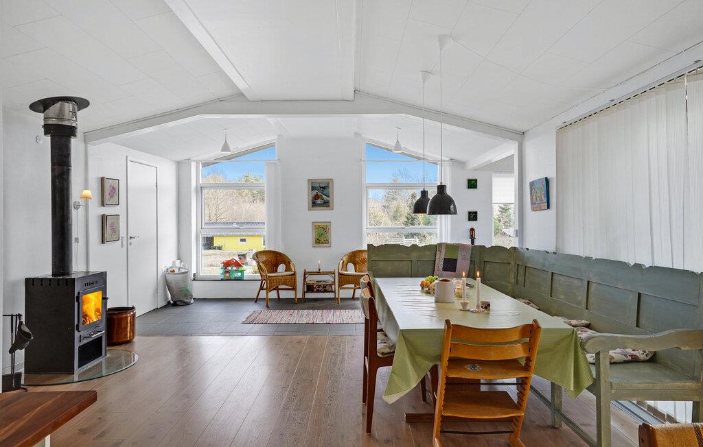 Feriehuset er flot og indbydende, indrettet med en stilsikker hånd, der fremhæver husets karakter. I kan se frem til en rolig, nordisk farveskala med mange træelementer, så I får følelsen af, at de naturskønne rammer fortsætter indendørs. På kølige dage kan I tænde op i brændeovnen.