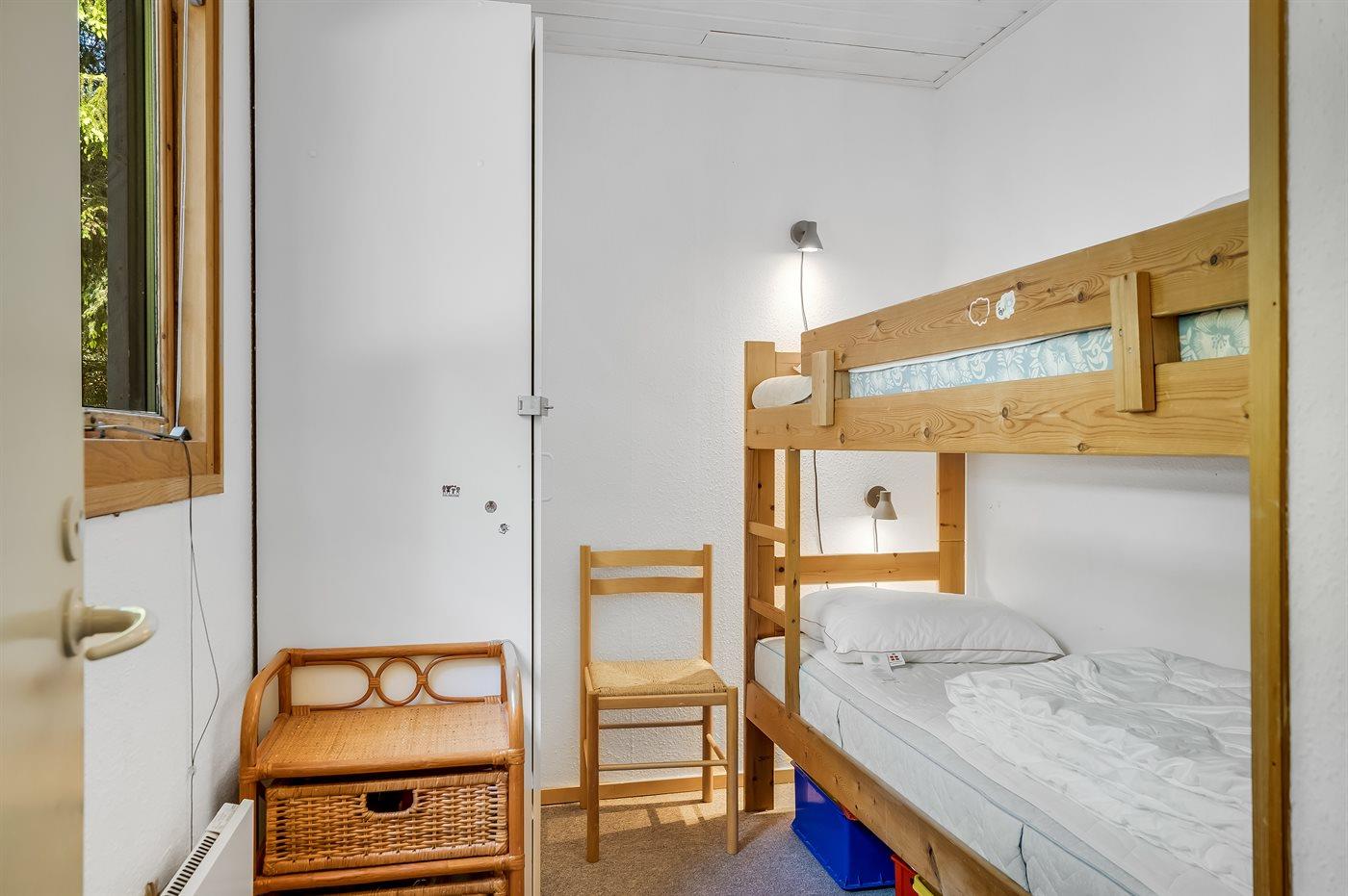 Kun 200 m fra vandet finder I dette hyggelige og børnevenlige sommerhus i træ med bl.a. spa og sauna, bygget i 1994 og moderniseret i 2010. Huset ligger på en skov-/plantagegrund med græs og høje træer samt sandkasse, gynger og legetårn med rutsjebane til børnene. Der findes en dejlig, afskærmet terrasse med havemøbler. Det pæne og lyse køkken er bl.a. udstyret med opvaskemaskine, mikrobølgeovn, fryser, varmluftovn og komfur med keramiske kogeplader. I den hyggeligt indrettede opholdsstue, med direkte adgang til terrassen, finder I brændeovn, TV med parabol (digital), DVD-afspiller og stereoanlæg med CD-afspiller. Husets sovepladser fordeler sig på 5 værelser; 2 med dobbeltseng, 1 med 2 enkeltsenge, 1 med køjeseng og 1 med køjeseng samt 1 enkeltseng. Der findes 2 badeværelser med gulvvarme og bruser. I det ene finder I desuden 2-spa og der er adgang til husets sauna. Aktivitetsrum med bordfodbold, bobspil, dart, mini-keglebillard og diverse legeredskaber til børn. Af yderligere udstyr kan gratis, trådløs WI-FI internetforbindelse, vaskemaskine, tørretumbler, ekstra køleskab og fryser, barneseng og høj barnestol nævnes. Trægulv i stuen, gulvtæpper på soveværelserne og klinker i badeværelser og køkken. Et godt sommerhus - velegnet til såvel 1 som 2 familier. Gode fiskemuligheder i nærheden. Virksund har lille havn, marina og kro.