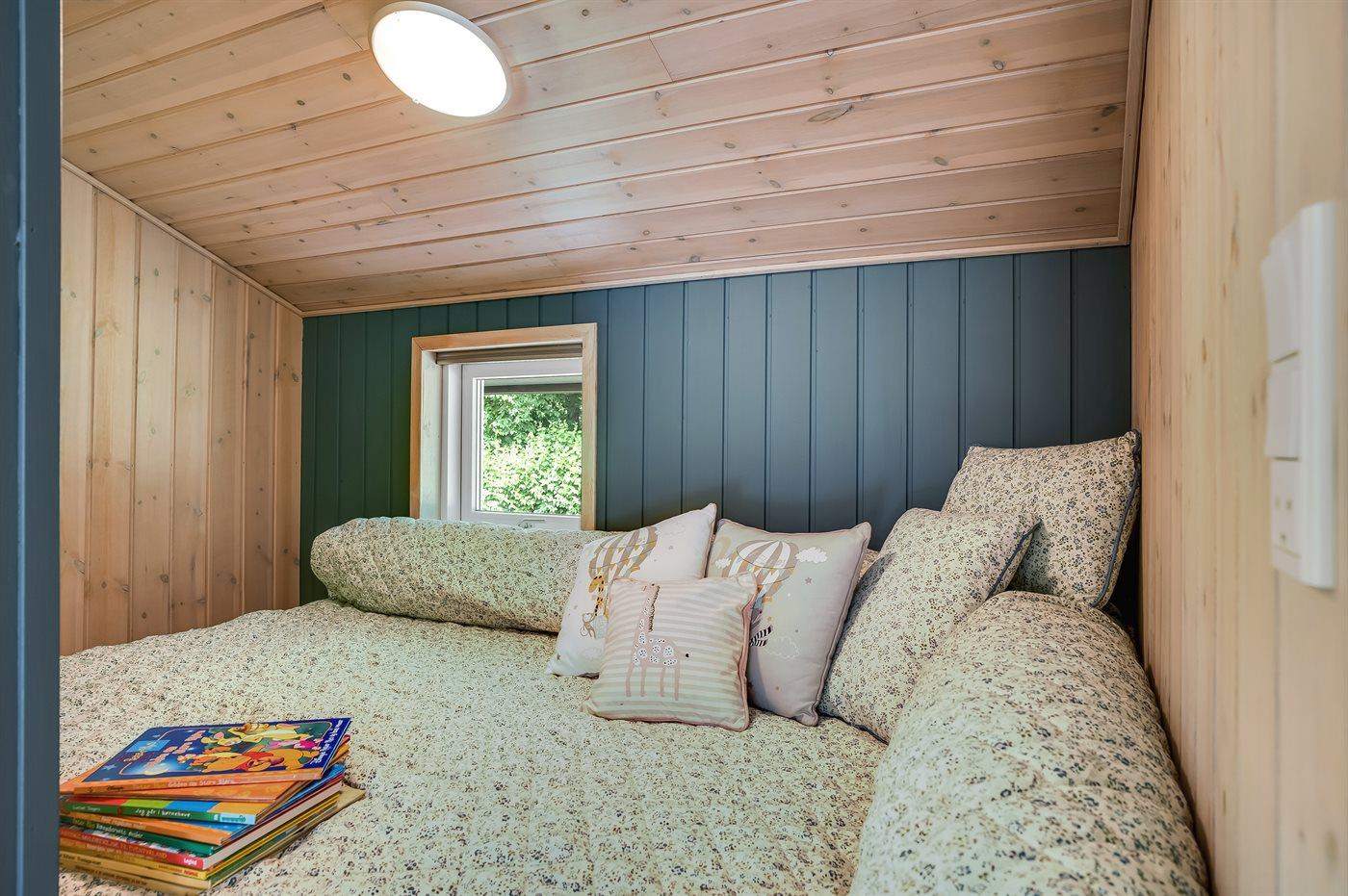 Der er i alt 2 soveværelser. Sovepladserne fordeler sig på: 4 sovepladser i dobbeltsenge. 2 sovepladser på madrasser. 2 sovepladser i alkove. 2 af disse sovepladser befinder sig på husets hems og 2 af dem befinder sig i stuen. Derudover er der 1 stk. barneseng.