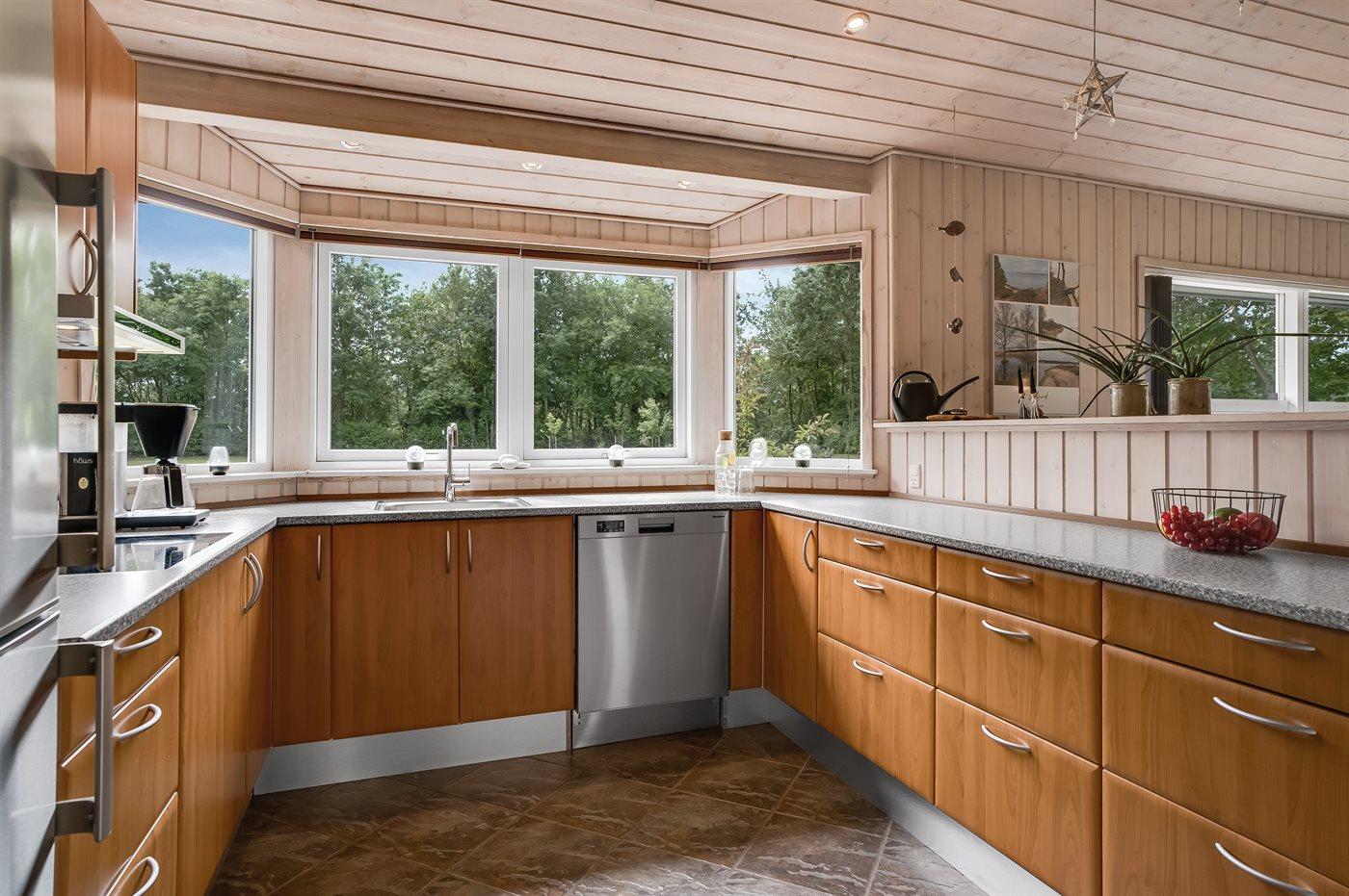 Køkkenet er udstyret med 1 køleskab. Der er 4 keramiske kogeplader, varmluftovn, mikrobølgeovn samt opvaskemaskine.