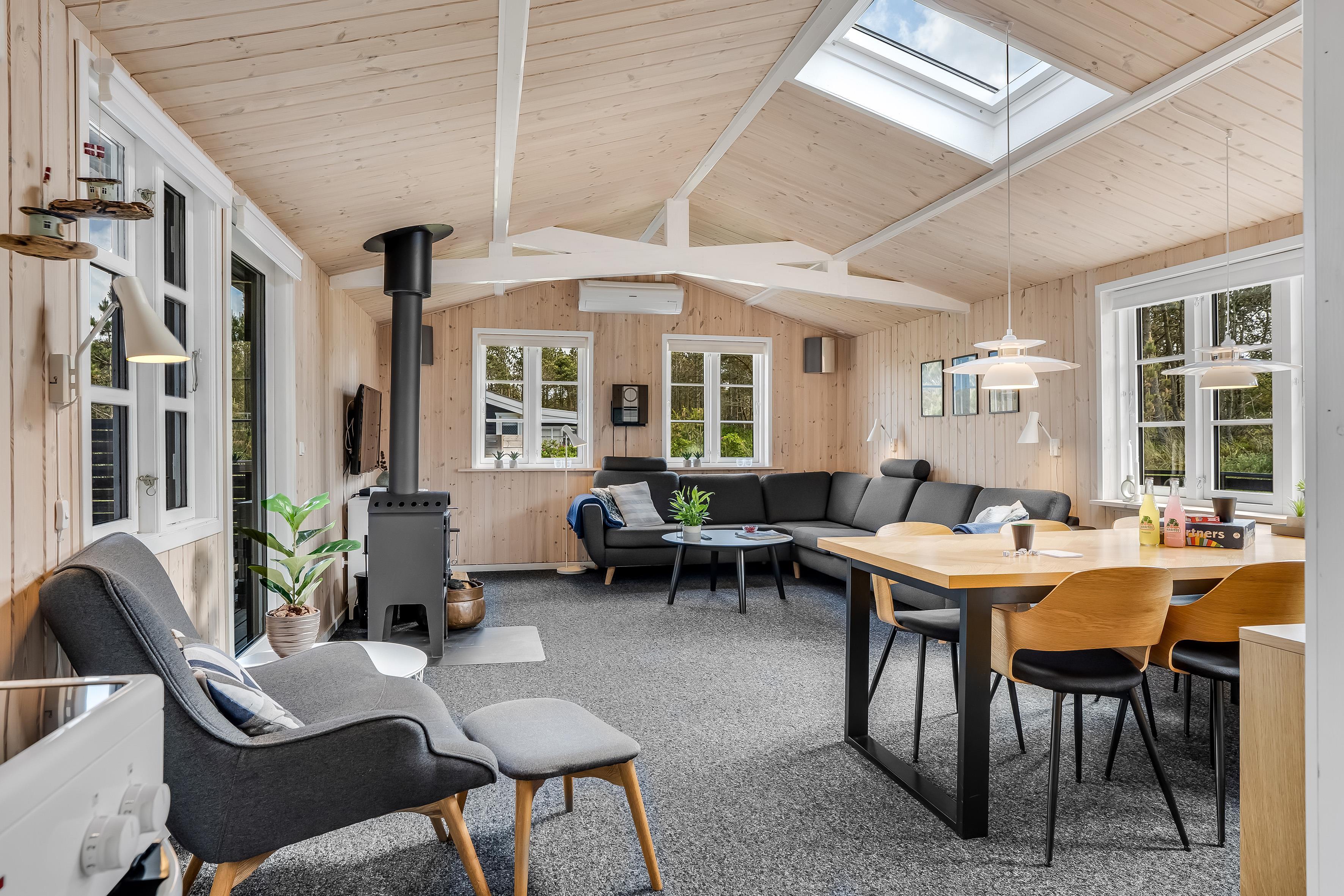 Når du træder ind i huset, bliver du mødt af en lys og indbydende stue, hvor den indbyggede brændeovn skaber en varm og hyggelig stemning på kolde dage. Det moderne interiør er kombineret med komfortable møbler og en stor tv-skærm, som giver mulighed for underholdning. Huset er udstyret med både dansk og tysk tv samt en spillekonsol, så der er noget for enhver smag.