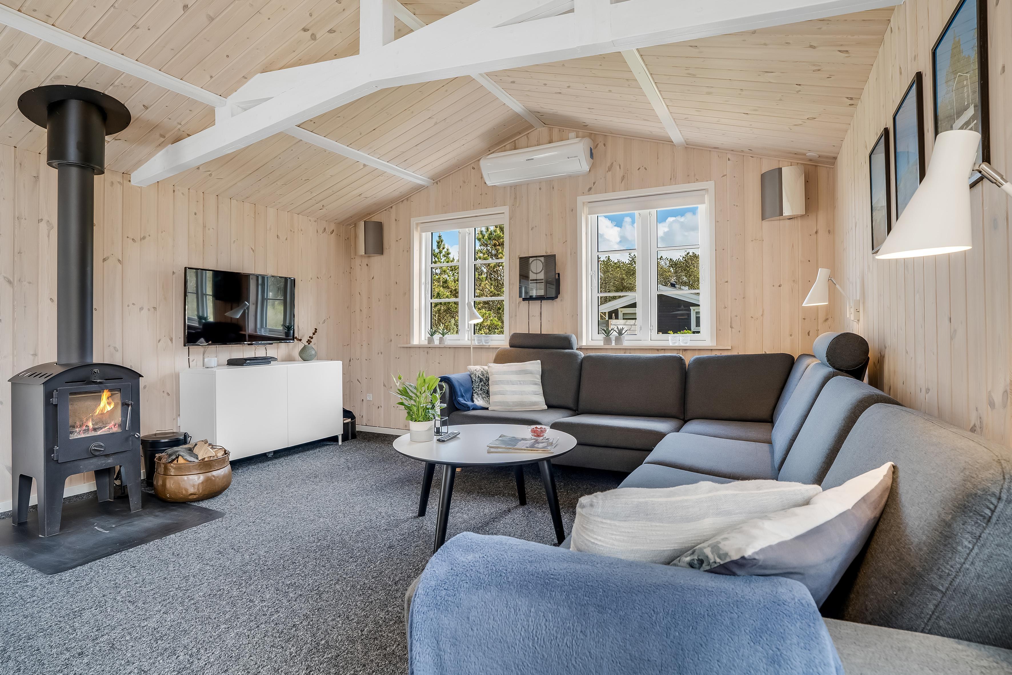 Huset ligger kun 1200 meter fra Vesterhavet, hvilket giver nem adgang til strand og svømning. Du kan tage dit kæledyr med, da husdyr er tilladt op til to. Med trådløst internet og den energibesparende varmepumpe, der også kan fungere som aircondition, kan du også holde forbindelsen og nyde komforten, uanset vejret.