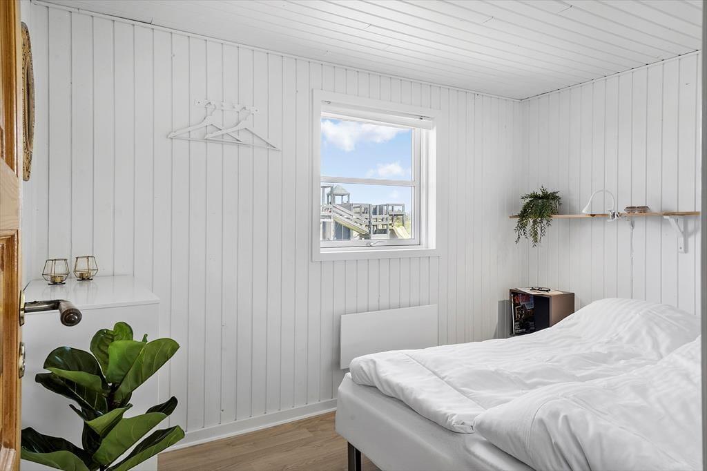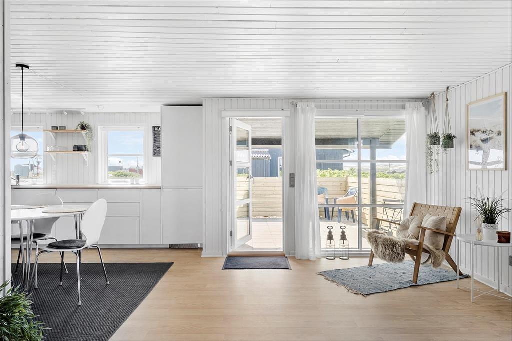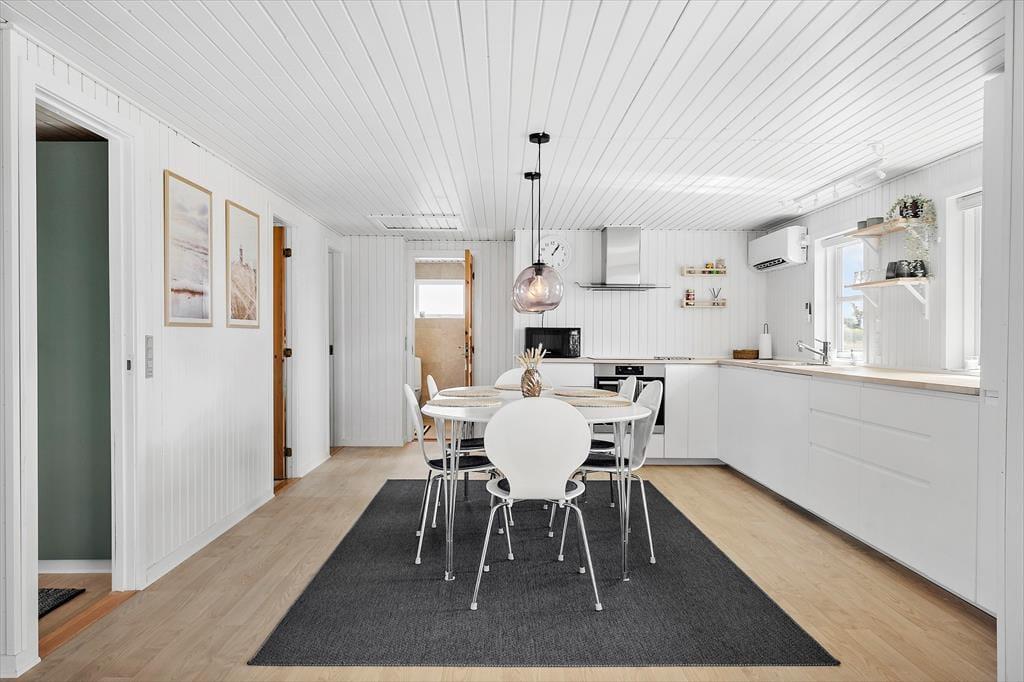 Det første, du lægger mærke til, når du træder ind i sommerhuset på Gloryvej 5, er den lyse og luftige stemning. Indretningen er holdt i venlige farvetoner og klassisk sommerhusstil, så du straks føler dig godt tilpas. Stue og køkken ligger i åben forbindelse og bliver hurtigt det naturlige samlingspunkt, uanset om dagen står på fælles madlavning, afslapning med et brætspil eller filmhygge i sofaen. Huset har plads til seks personer og er derfor ideelt til en familie eller et par vennepar, der rejser sammen. Brændeovnen i stuen giver ekstra varme og stemning, når vinden suser udenfor, og på hemsen finder børnene hurtigt et yndlingshjørne til leg og eventyr. Her er plads til både ro og nærvær – og til at lade hverdagen glide i baggrunden.
