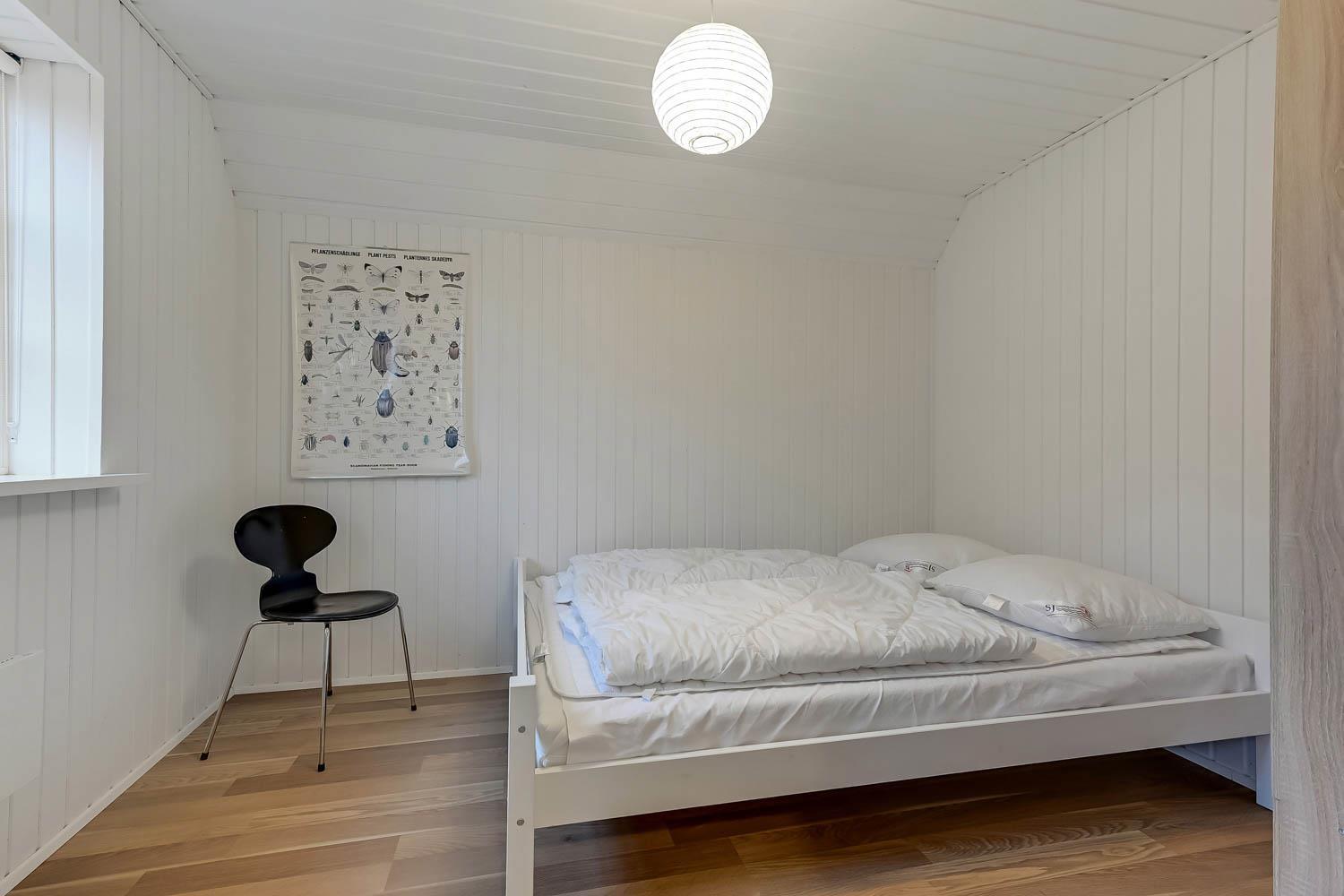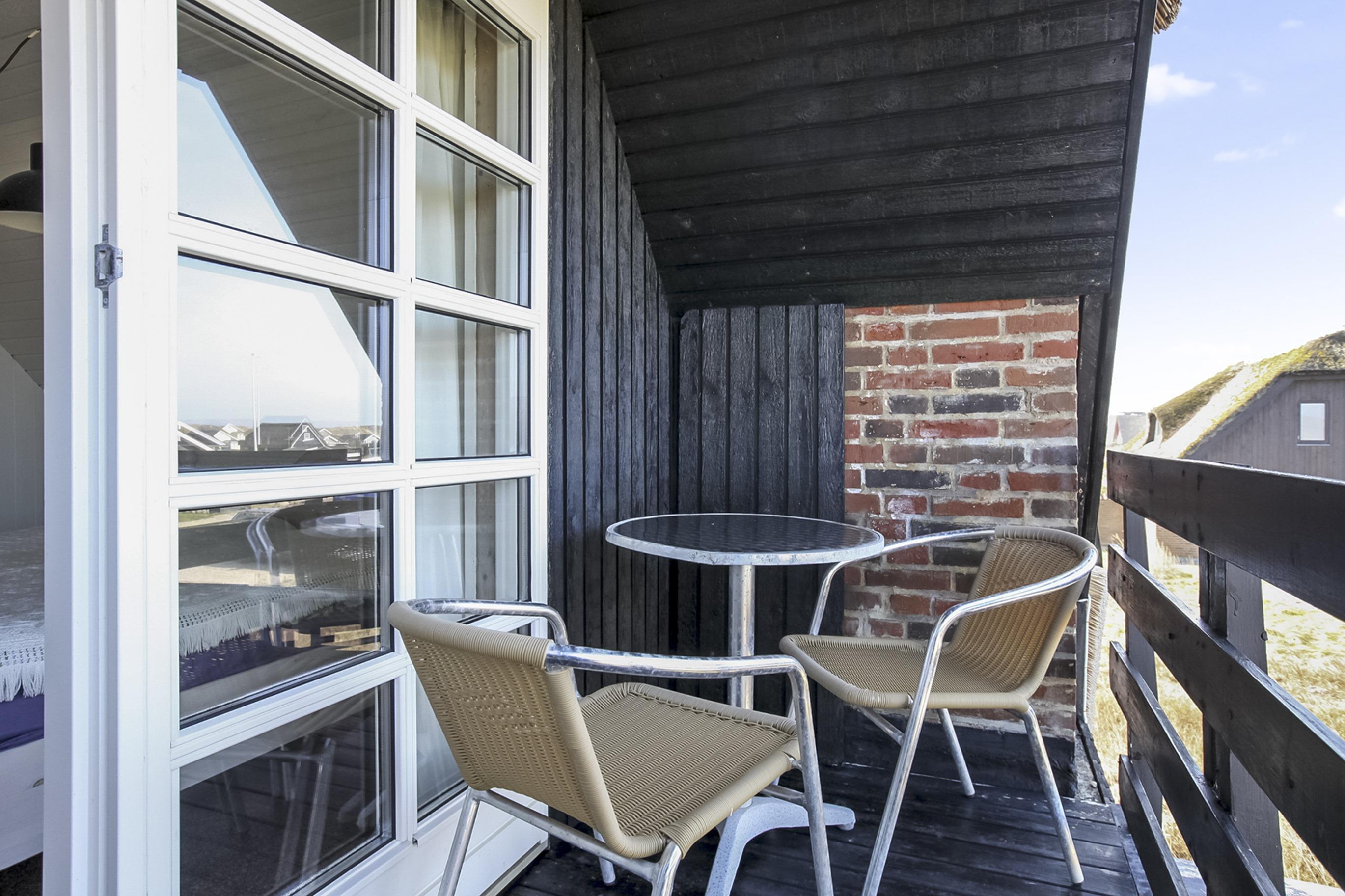Via trappen i opholdsstuen kommer I op på 1. Etage. Her er der 2 soverum (1DS, 1DS). Fra det ene soveværelse er der udgang til en lille balkon med udsigt til klitterne ved Vesterhavet.