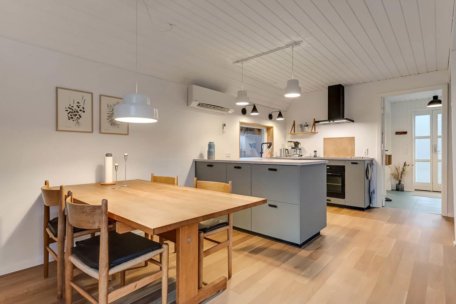 Huset som er 100 m2 fordelt på 2 etager er renoveret i 2020. Veludstyret køkken / alrum med alt i service / køkkengrej og alt i hårde hvidevarer. Køkkenhjørnet har bl.a. komfur med glaskeramiske kogeplader, emhætte, opvaskemaskine og køleskab med fryseboks. Nyd maden ved spisebordet, kig ud af vinduet og se de store høje klitter ved Vesterhavet eller slap af i de pæne møbler eller afspil musik fra bluetooth højtaleren. Nyd flammerne ved den hyggelige brændeovn som sammen med den opsatte varmepumpe i stueetagen sørger for et minimalt forbrug til opvarmning. 3 dejlige soverum (1DS, 1DS, 1DS). Badeværelse med toilet, håndvask, bruser, vaskemaskine og klinkegulv. Der er praktiske hårde gulve i alle opholds- og soverum. Ikke ryger hus. Husdyr må ikke medbringes.
