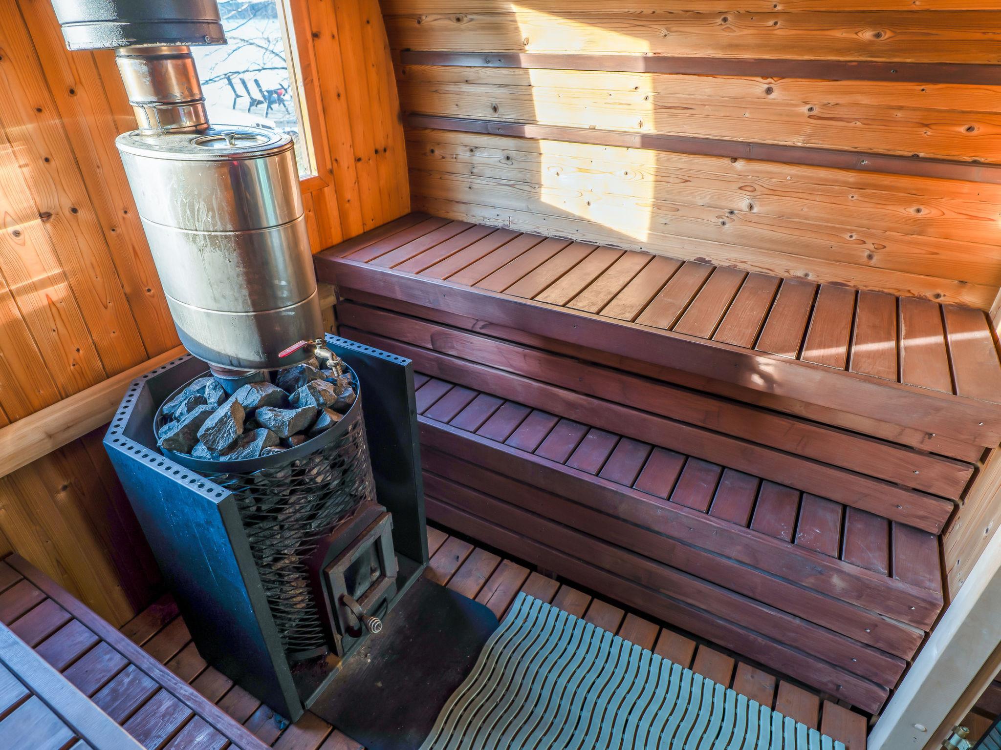 There is a woodburning barrel sauna on the shore. Water must be carried from the lake and in winter from the cottage. There is also a smoking facility in the barbecue shelter.
