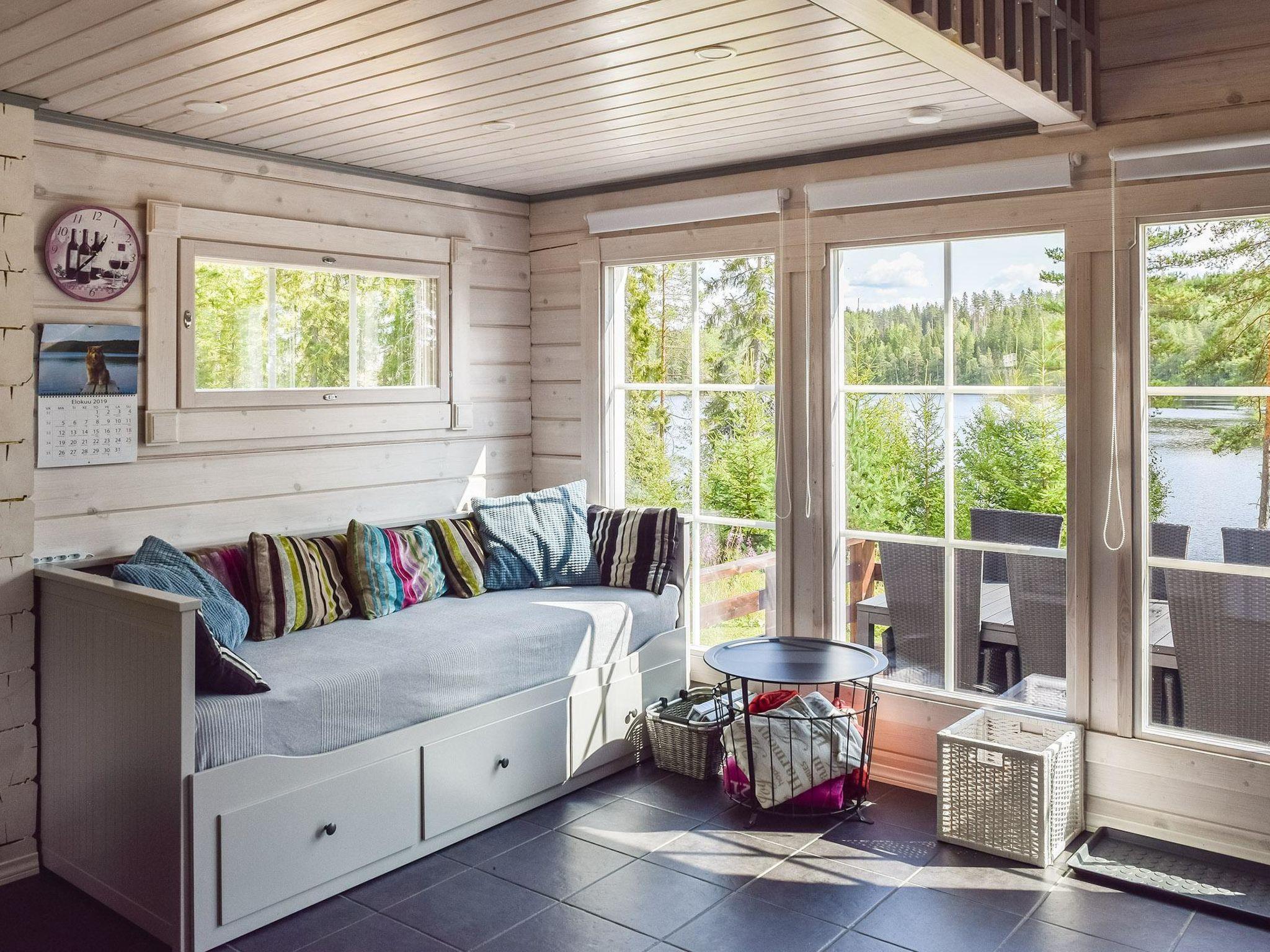 Log cottage 2016, kitchen-living room with sofa bed (160 x 200 cm wide), washroom with shower, sauna (wood stove), terraces on two levels 30 m².