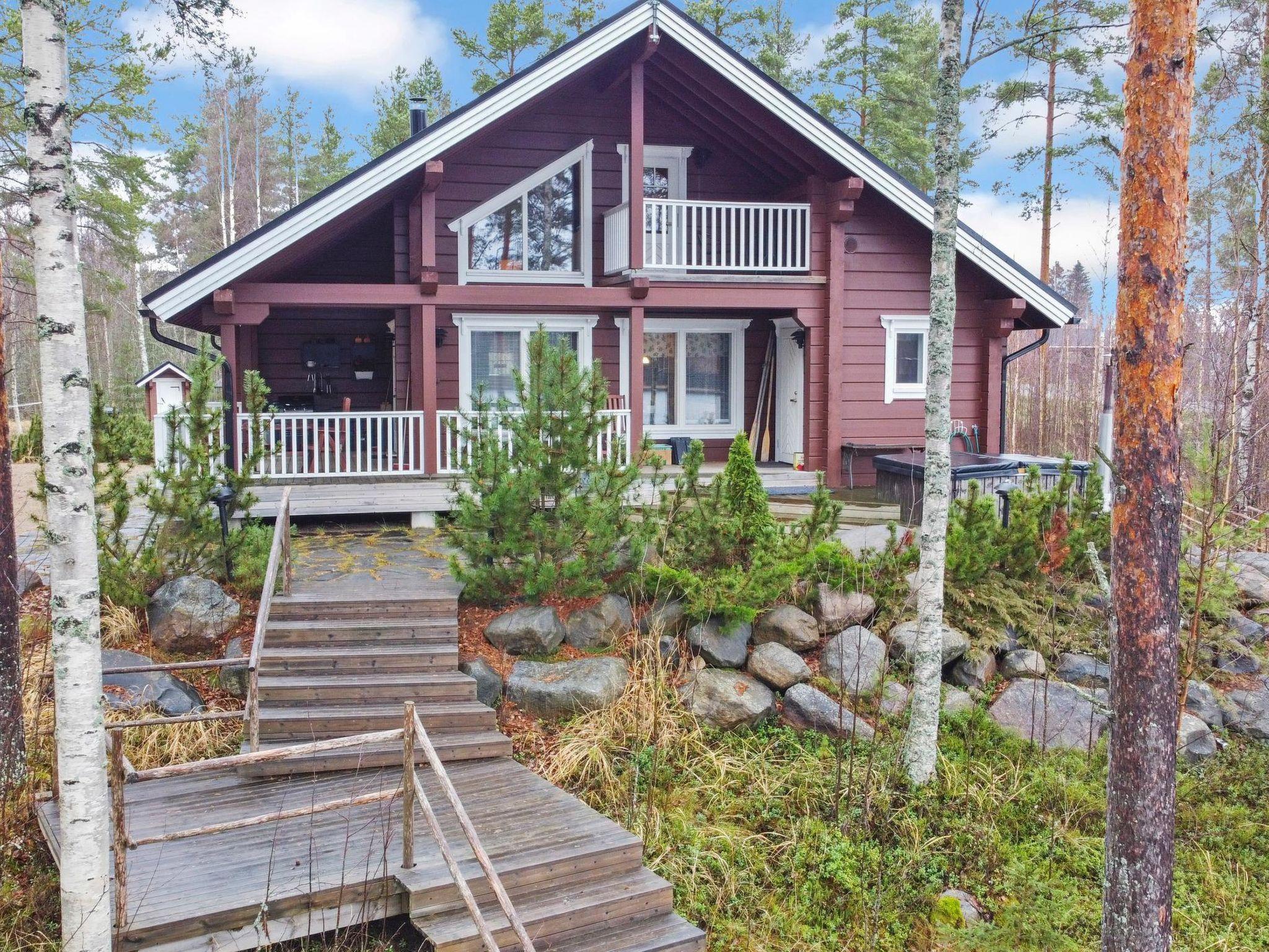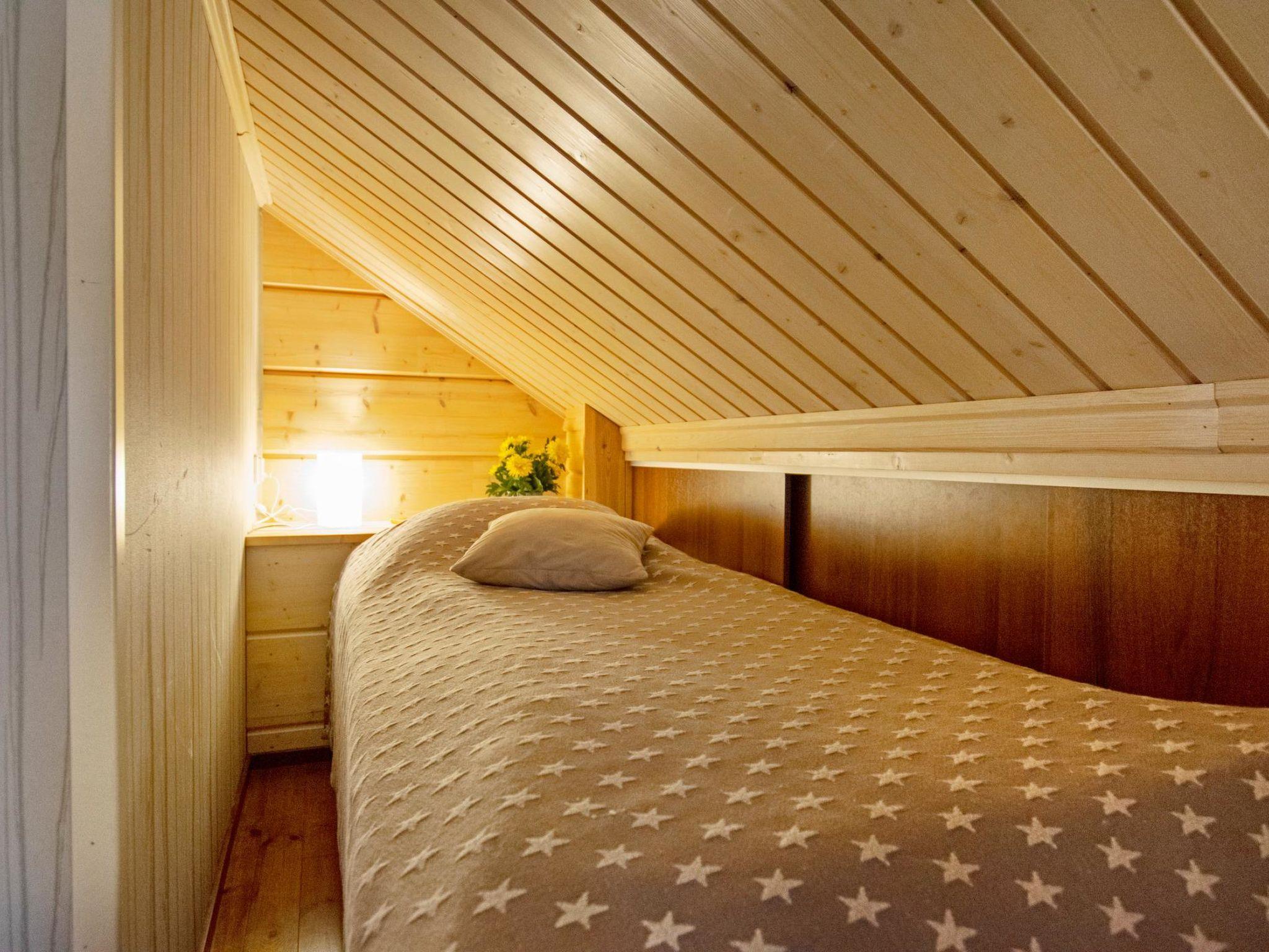 Log chalet 2010, living room/kitchen, bedroom double bed, bedroom 2 beds, utility room, washroom, sauna (electric stove), roofed terrace. Upstairs: bedroom with 2 beds, wc, lounge with 2 beds, balcony.