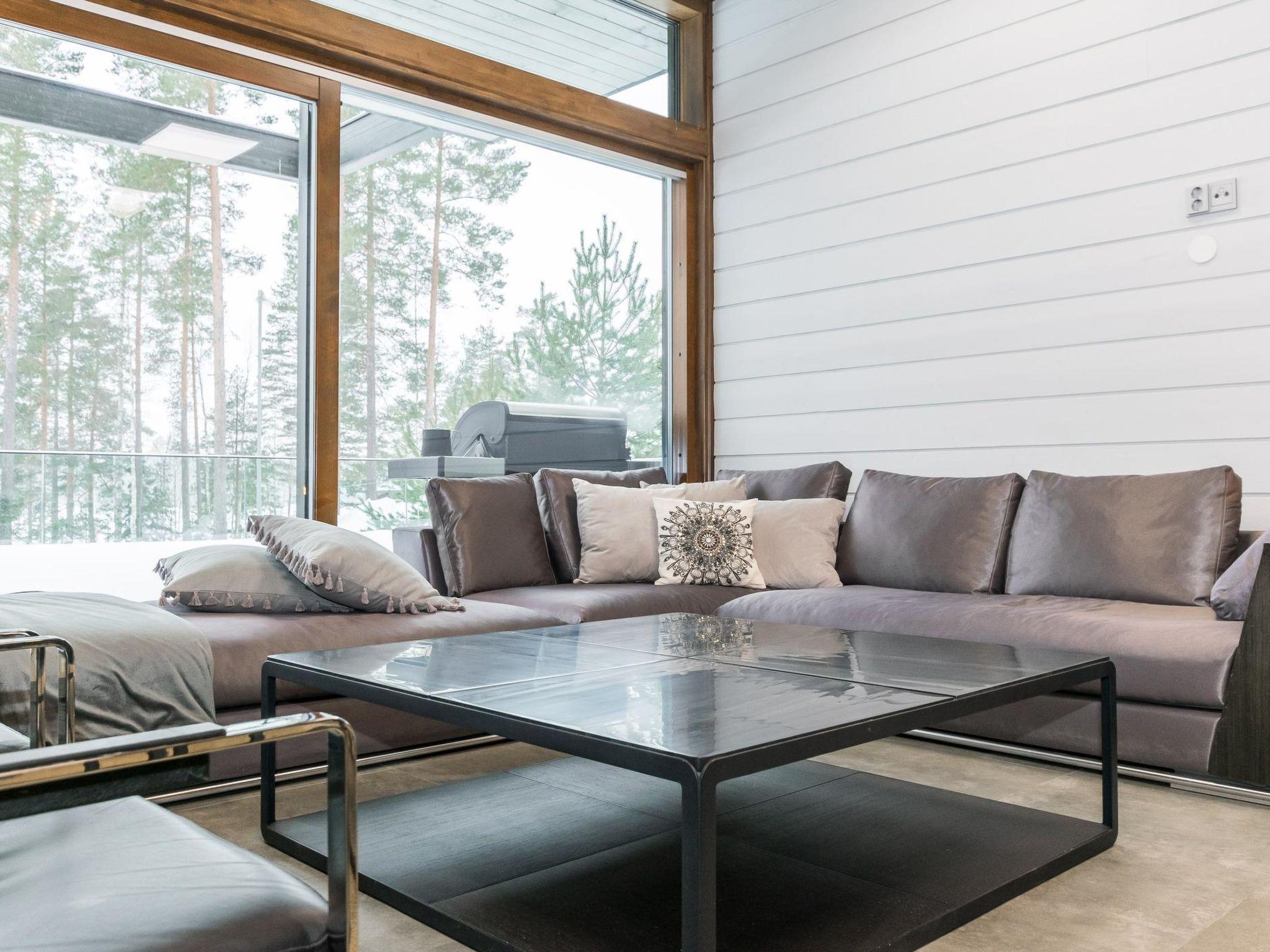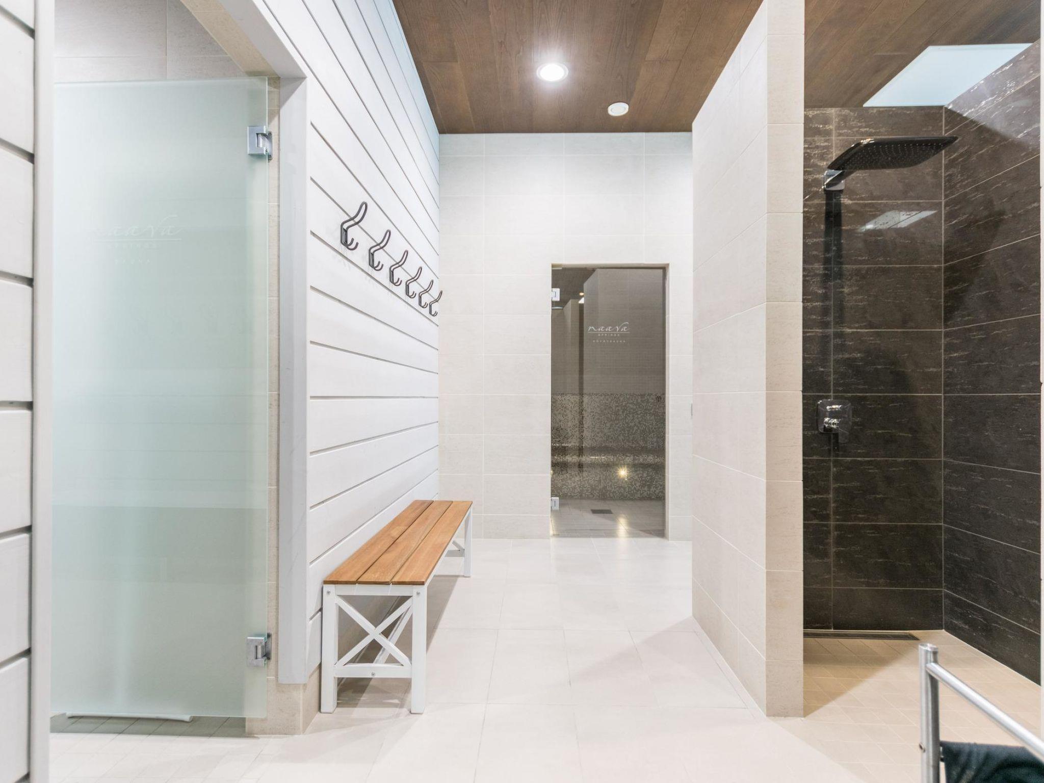 Stone-built spa villa (built in 2013), Lake Hankavesi 60 m, no own pier. Spacious living room and combined kitchen-dining area. Two bedrooms, one with a double bed and two spreadable sofas (each opened up to 80x200 cm extra beds). The other bedroom has two single beds. In the entrance hall, there's a sofa bed that opens up to a 160x190 cm bed for two. The villa has two WCs; one near the living areas and one connected to the spa compartment.