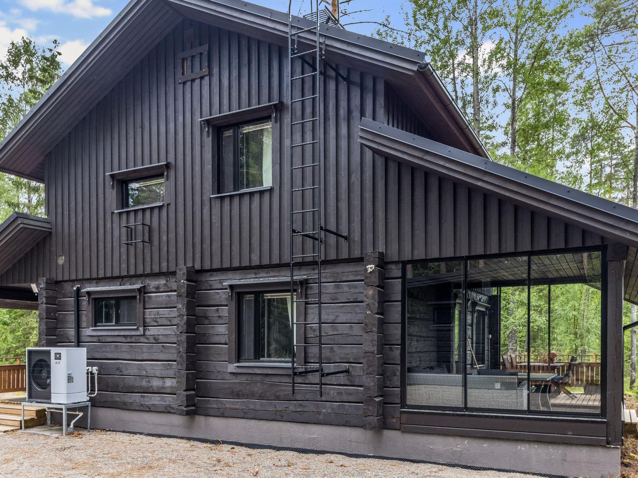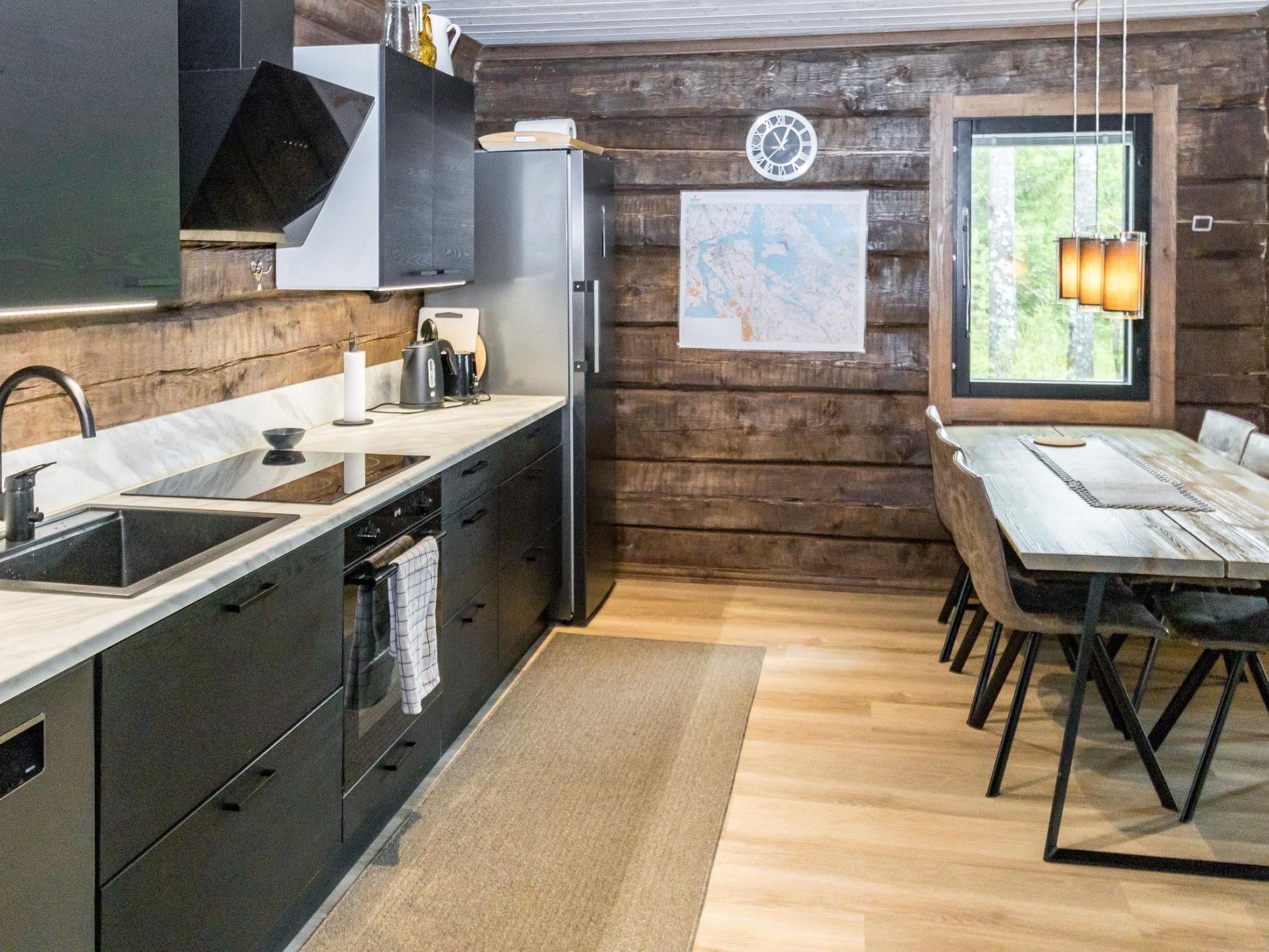 Welcome to unwind in this elegantly decorated, hand-carved log cabin, offering an excellent setting for a holiday amidst nature. This 80 m² cabin, completed in 2023, is located in Eno by Lake Välivesi, where you can enjoy peace and stunning waterfront scenery. The nearest neighbor is 300 meters away on the opposite shore, ensuring you can spend your holiday in privacy. Joensuu is just 34 km away, and Koli is 58 km away along the scenic lakeside route. Ready for use hydro massage bath outdoors is included in the rent and is located next to a separate sauna building.