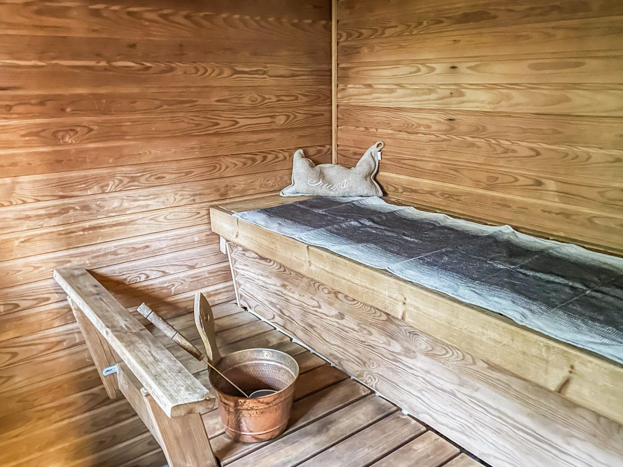 Lakeside sauna with a wood-burning sauna stove, dressing room has two alternative places to sleep in a double bed.