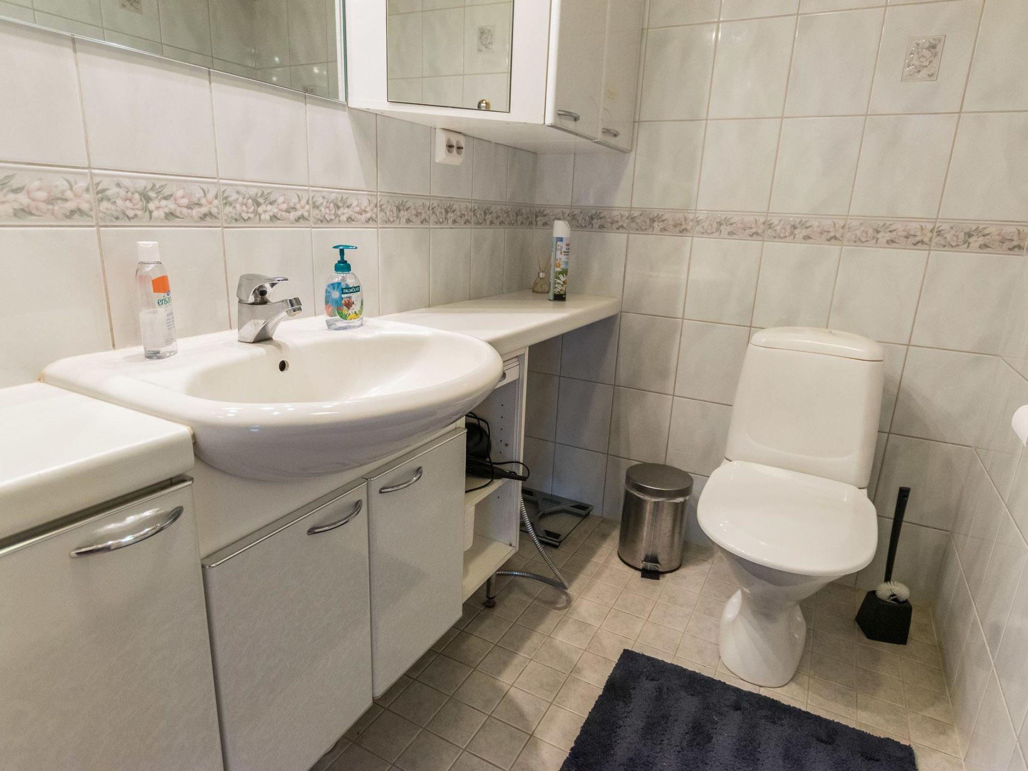 There are spacious living areas in a log cabin; living room/kitchen, bedroom with 200 cm wide double bed, another bedroom with 200 cm wide double bed (Tempur), separate WC with shower cubicle, fireplace, air source heat pump.