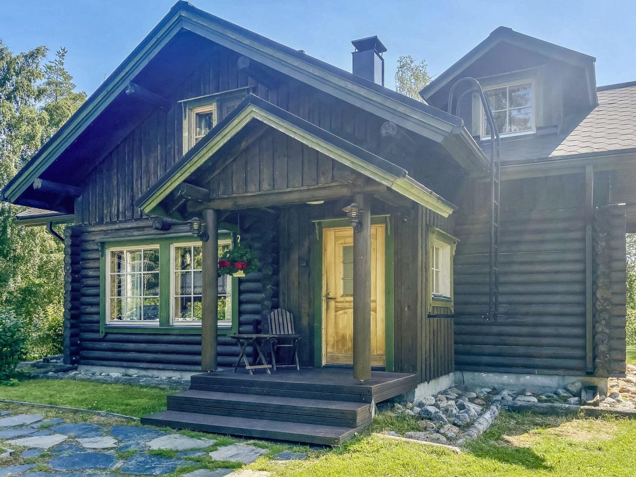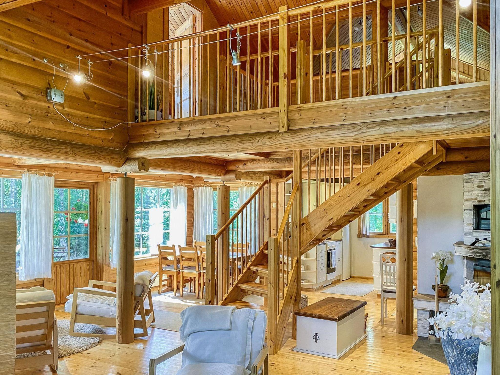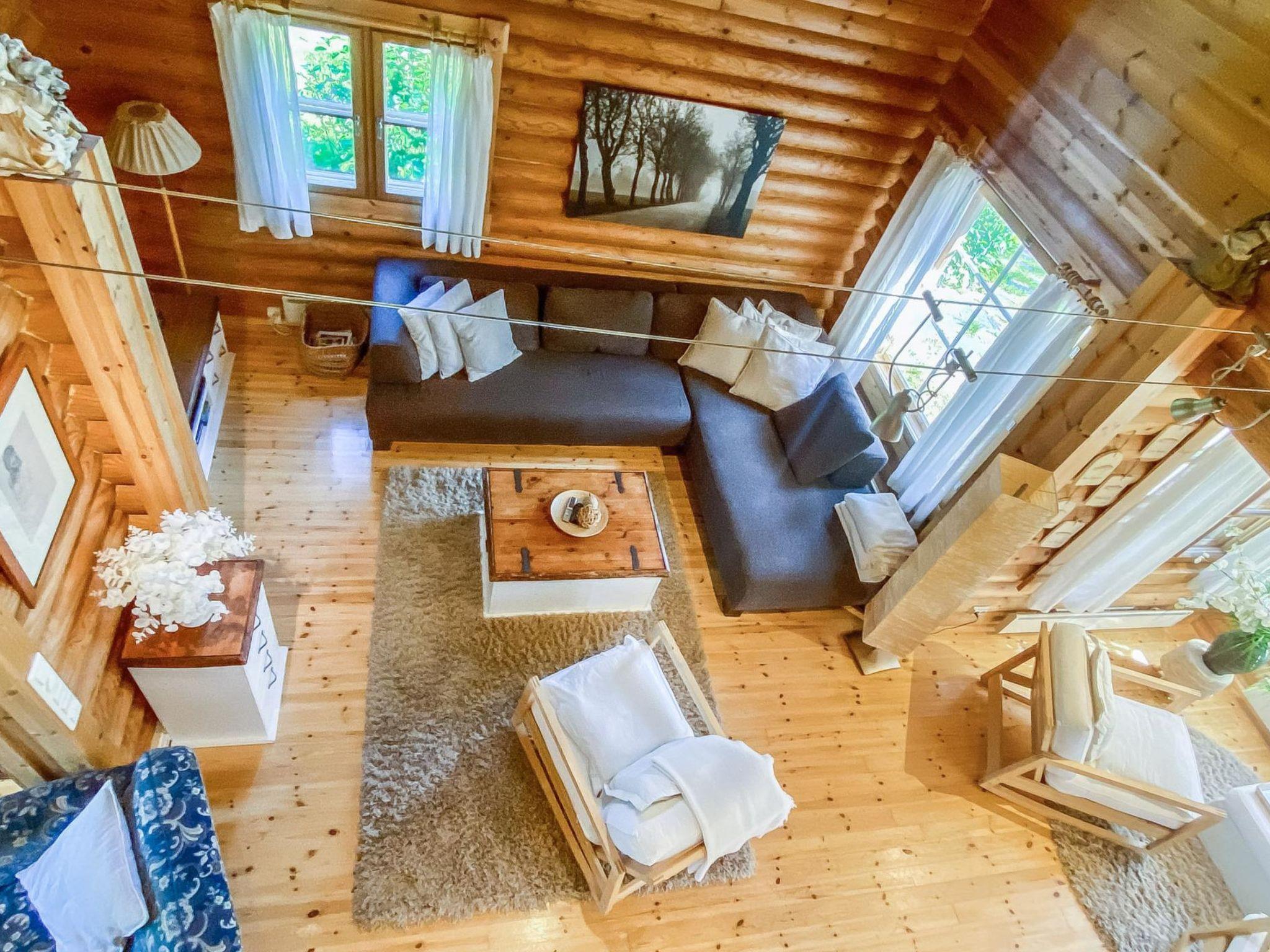 Log cottage 1989, renovated 2008, living room-kitchen/lounge, bathroom, 2 porches. In upstairs (room height max 170 cm, sloping ceilings) bedroom with 3 beds, bedroom with 1 single bed and convertible sofa, in the lounge double bed. Air-conditioning. 2*TV