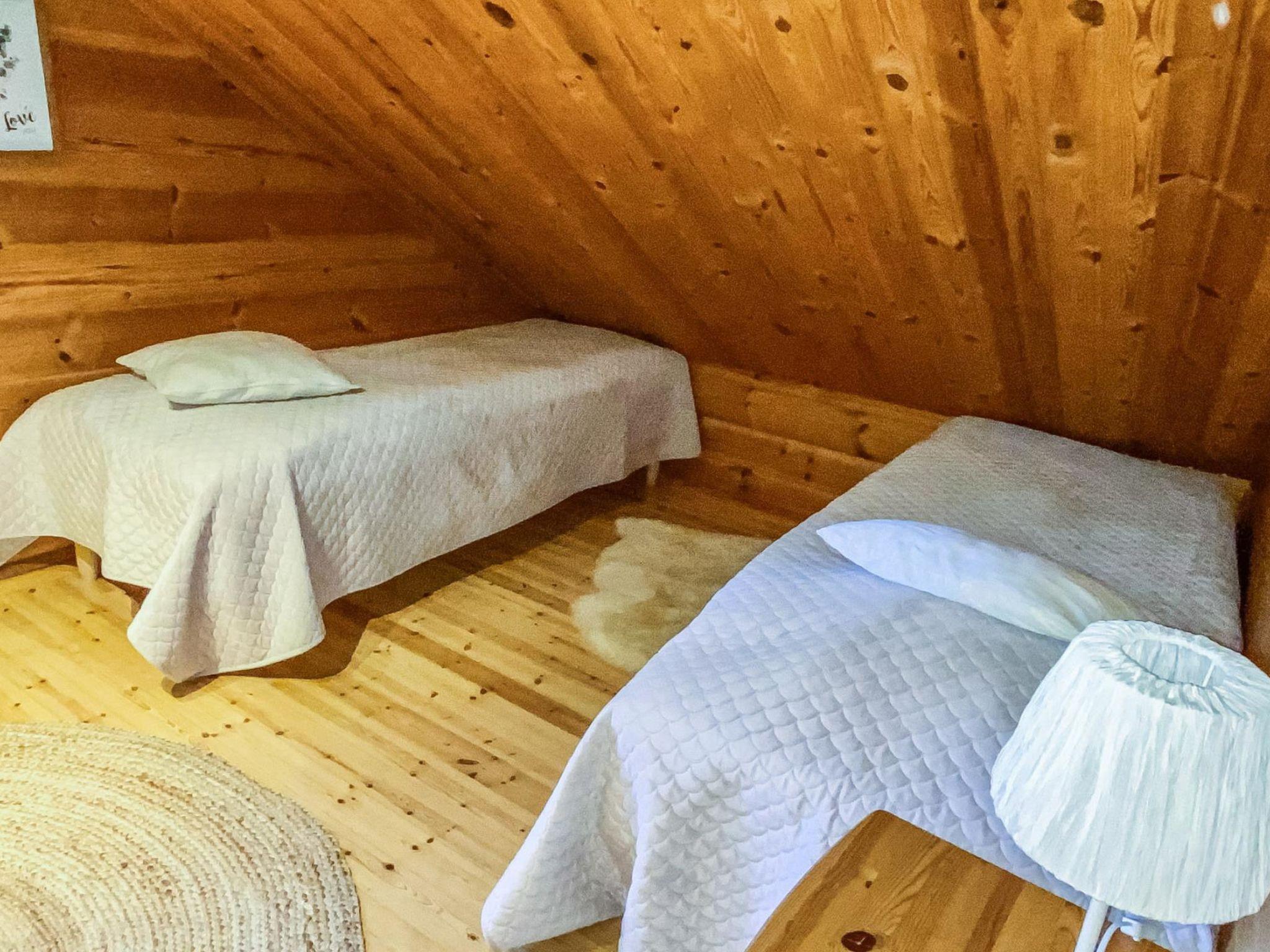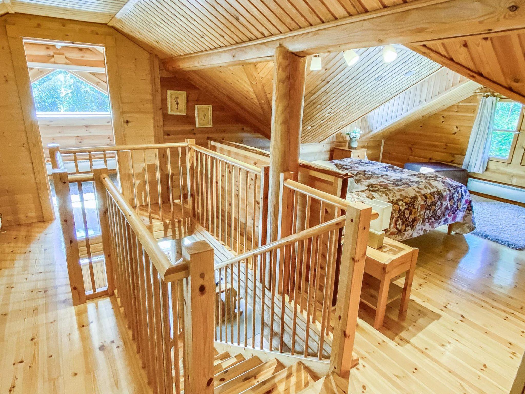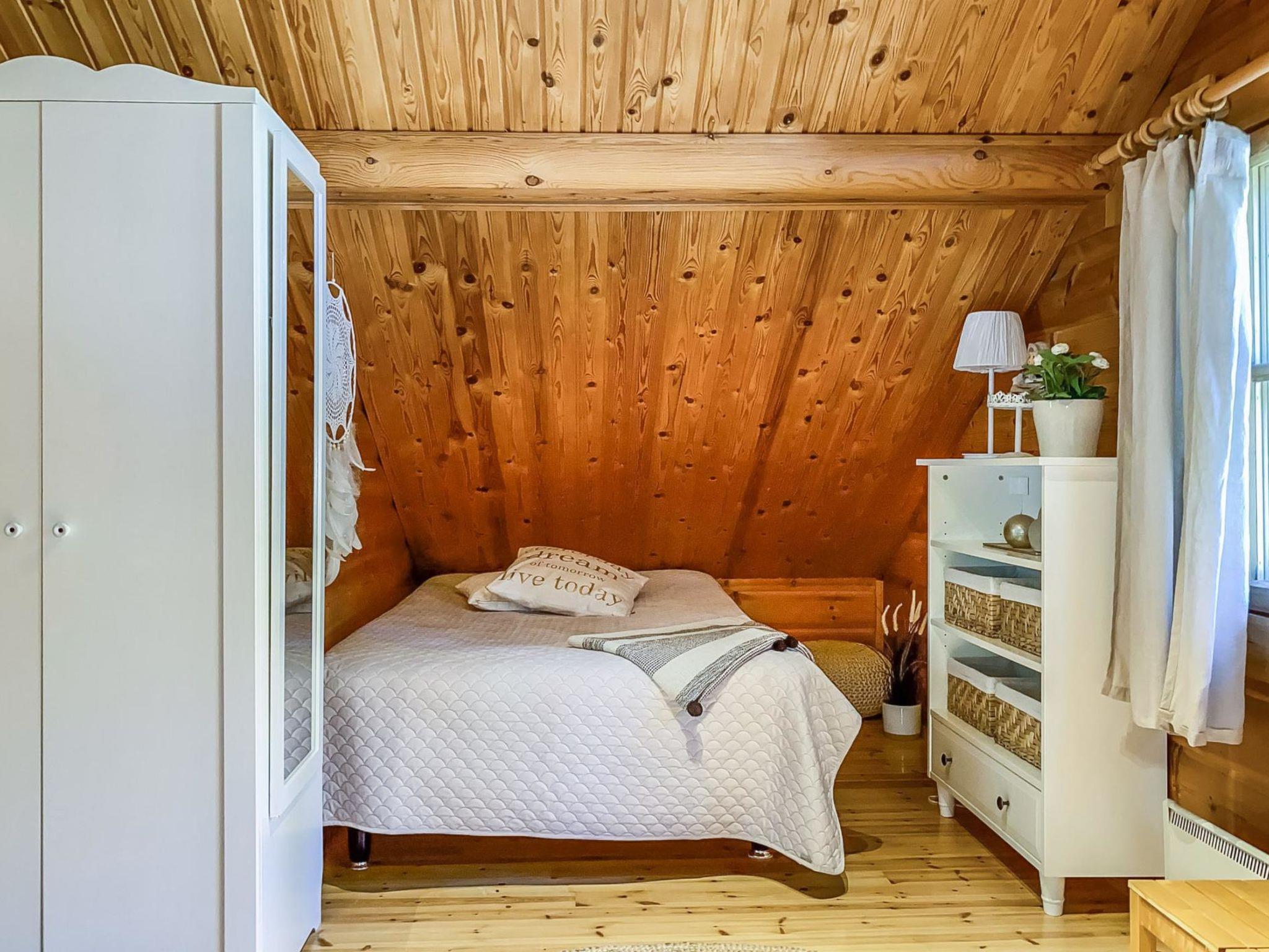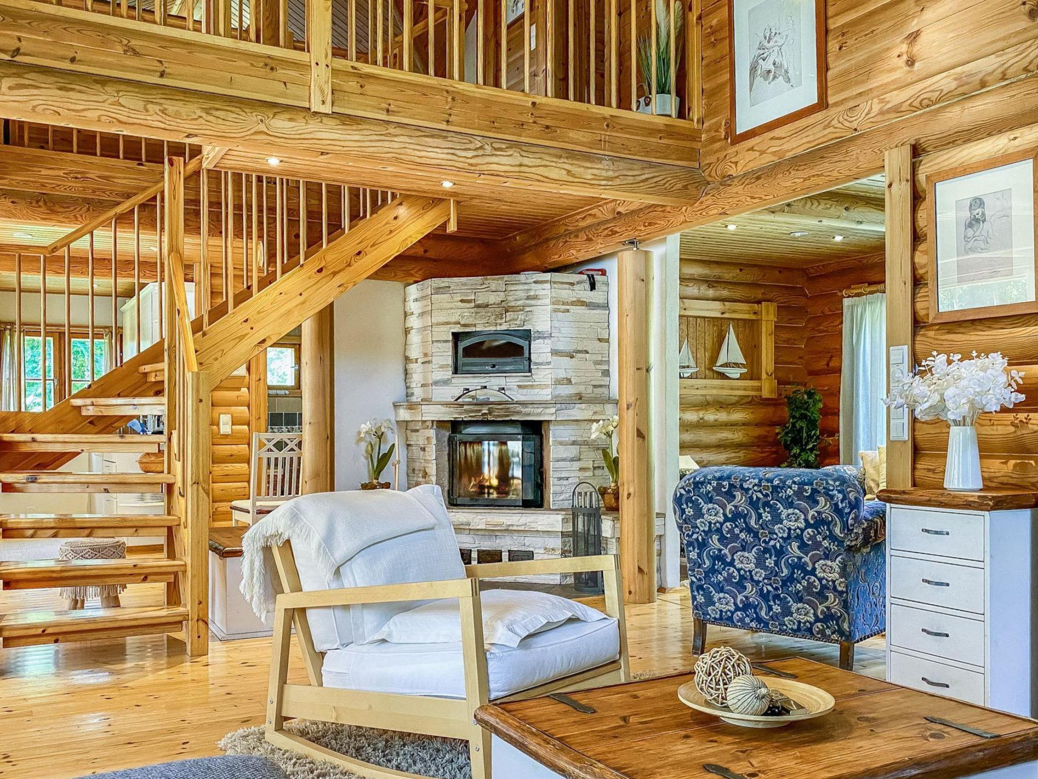 Log cottage 1989, renovated 2008, living room-kitchen/lounge, bathroom, 2 porches. In upstairs (room height max 170 cm, sloping ceilings) bedroom with 3 beds, bedroom with 1 single bed and convertible sofa, in the lounge double bed. Air-conditioning. 2*TV