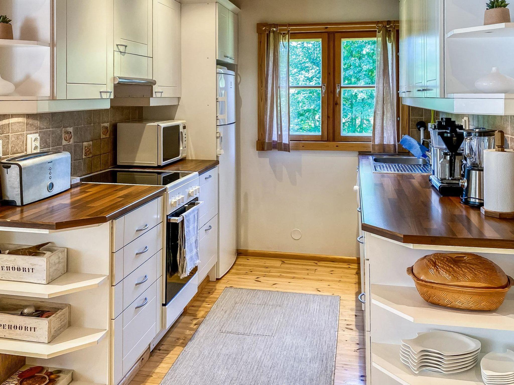 Separate log-built riverside sauna and room with a fireplace (20 m²) 2005, to swimming shore 30 m, deep mud bottom (2 m deep in the end of jetty), jetty. Sauna, washroom with shower cubicle and WC. Room with fireplace has mini-kitchen, heat-storing fireplace and tv. Wood-fired grill as well as gas grill.