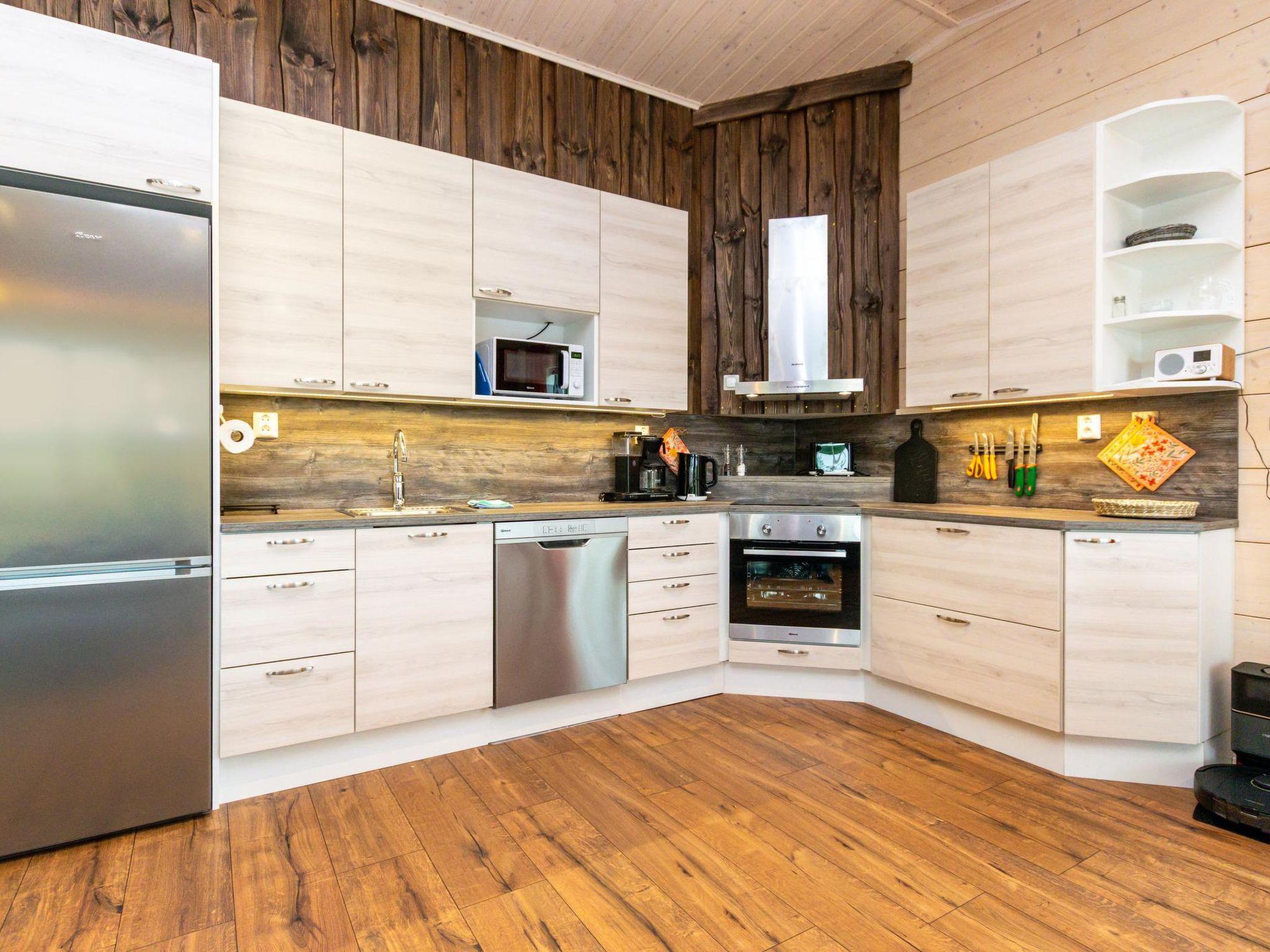 Log villa built in 2025. Spacious living room/kitchen, two bedrooms with two single beds each, and a third bedroom with a 120 cm bed for one person. Wooden sauna, washroom, dressing room, entrance hall, large partially covered terrace, air source heat pump (with cooling).