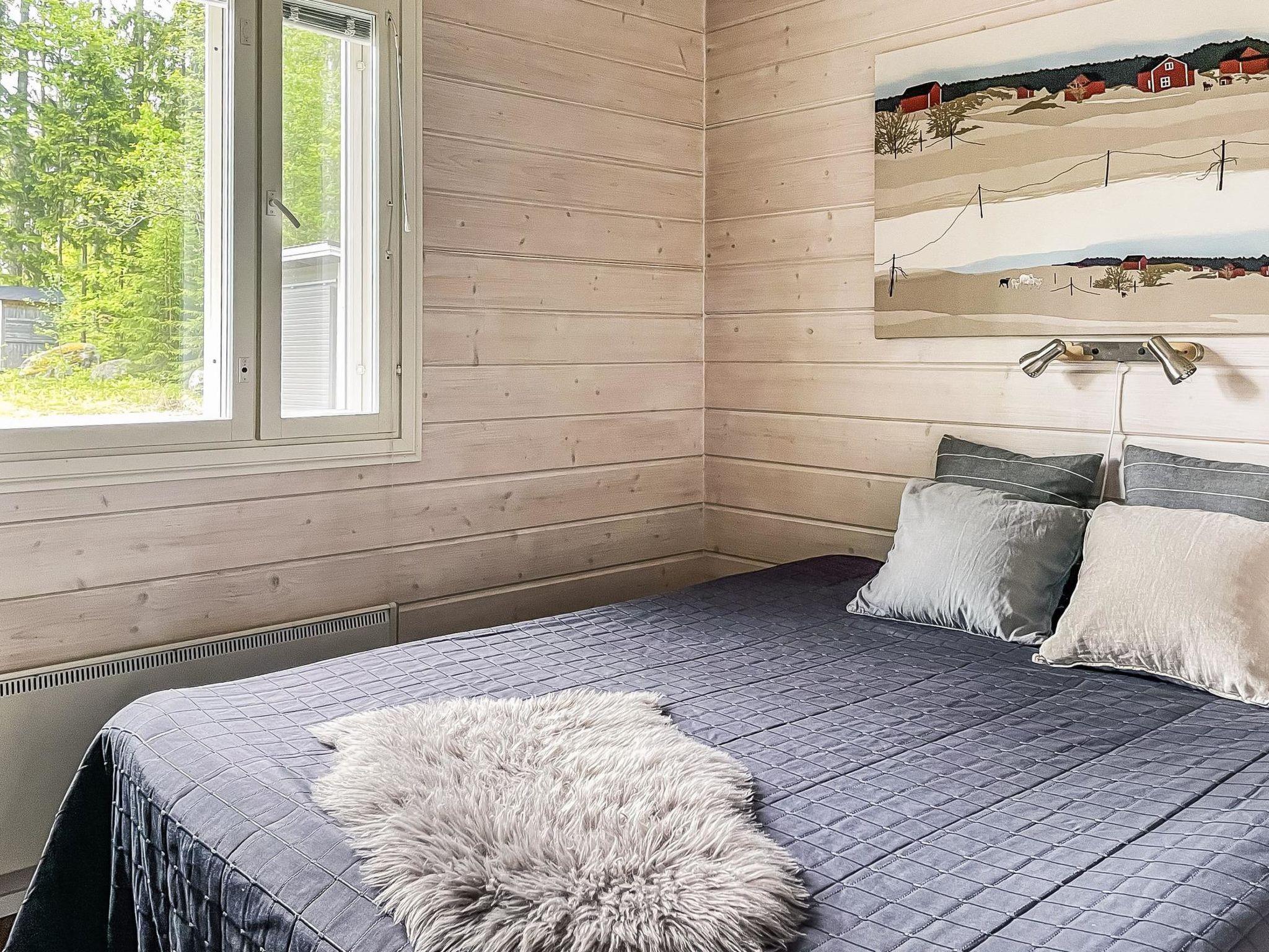 The living room has dining area, well-equipped kitchen, two bedrooms, both with double bed. Wood-burning sauna stove in the sauna, shower in the washroom, sofa bed for two in the fireplace room, WC. Air source heat pump for cooling. Gas grill and table group on the covered terrace. Outdoor kitchen in the cooking hut for cooking by water.